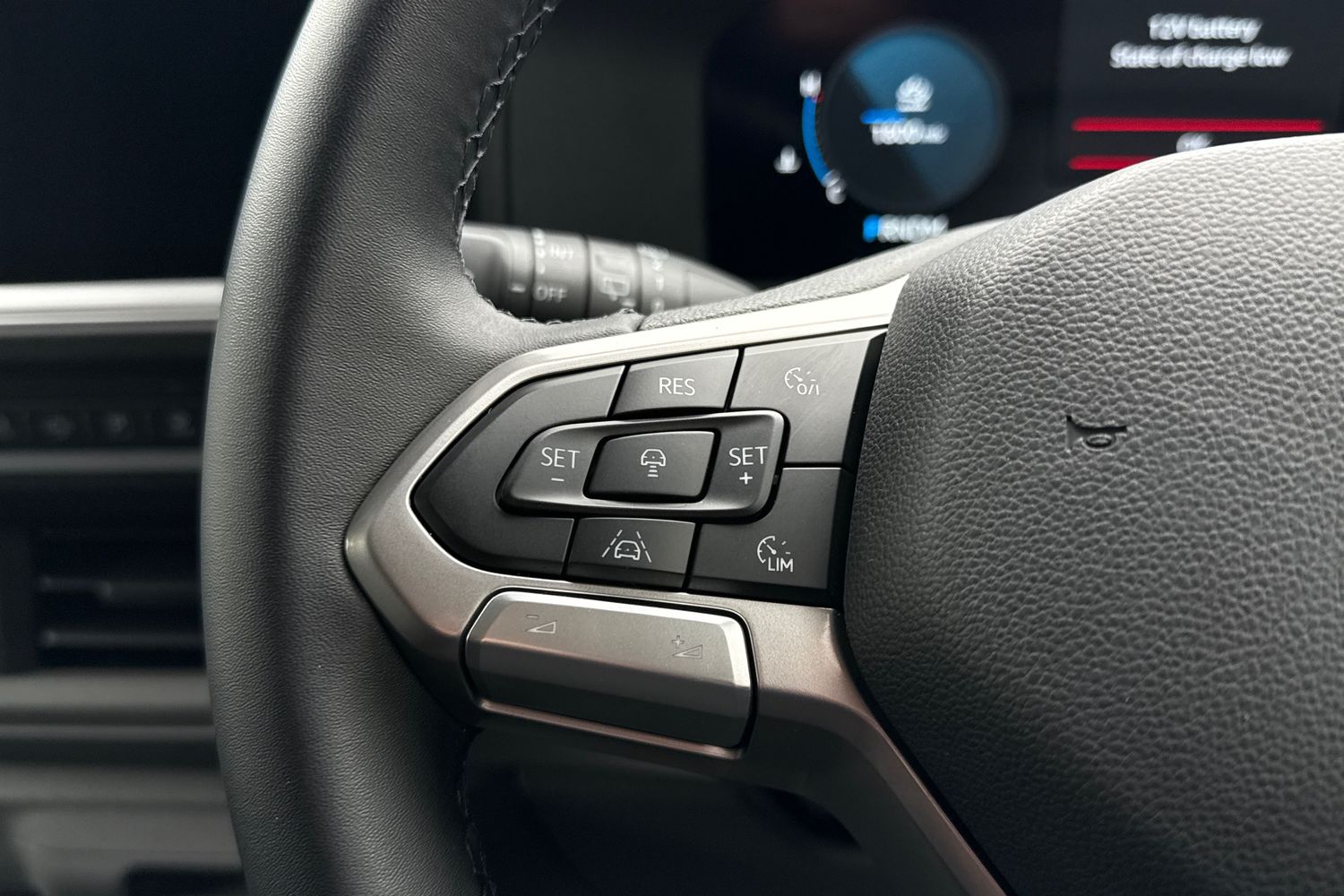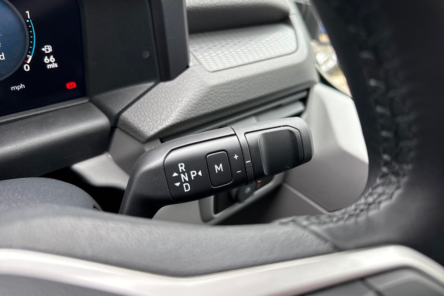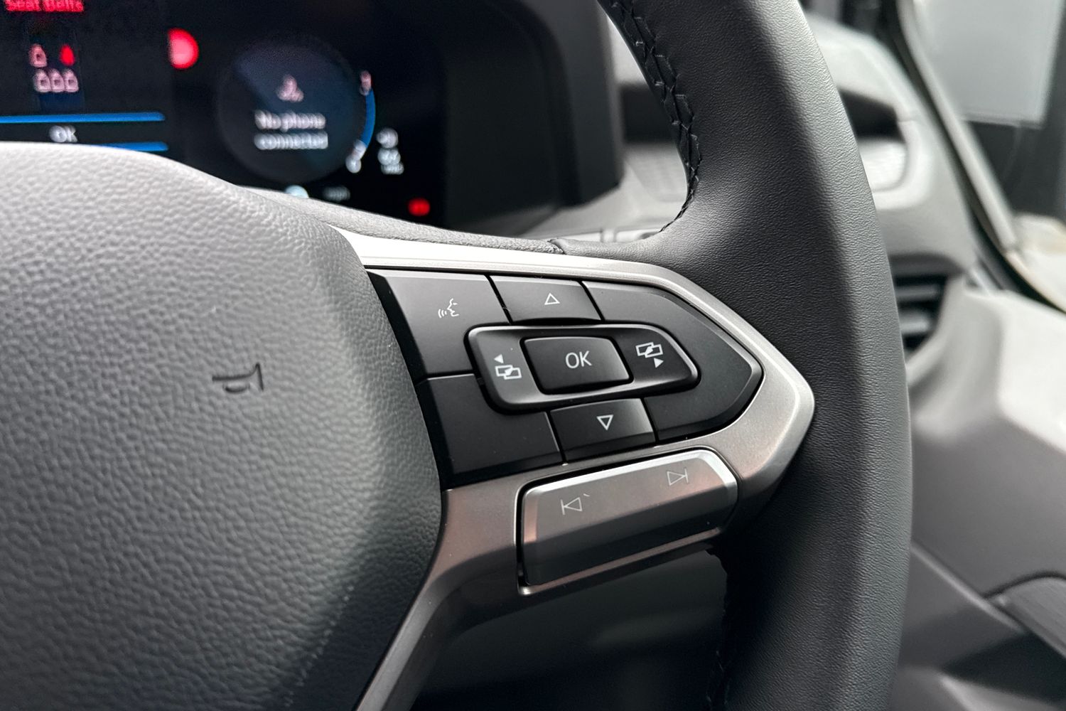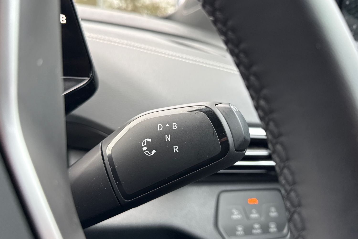 "3 spoke leather multi-function plus steering wheel features S badging and grips in perforated leather with contrast stitching",