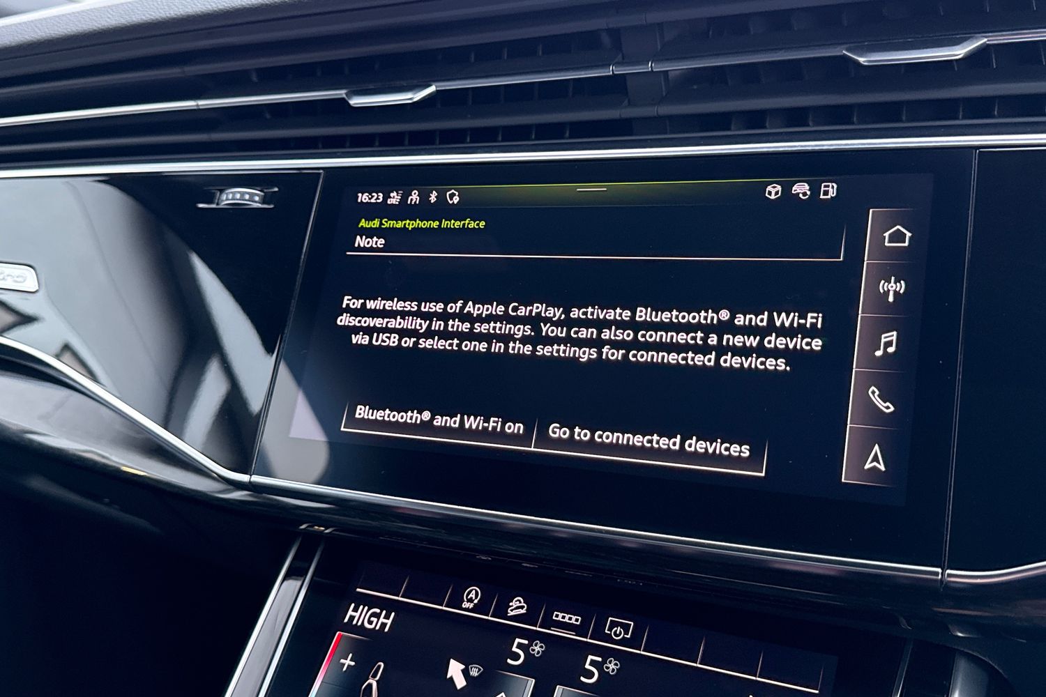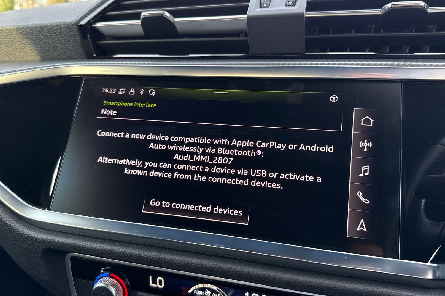 "Audi smartphone interface with connect compatible smartphone via USB directly MMI display + Nav,music, third party apps controlled via MMI controller",