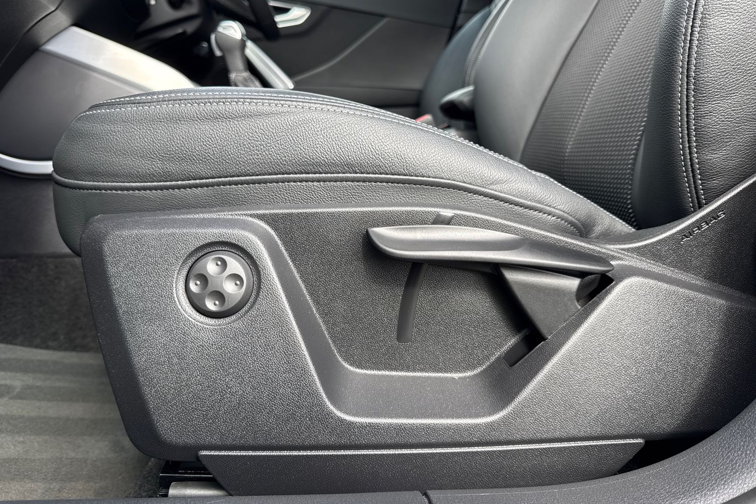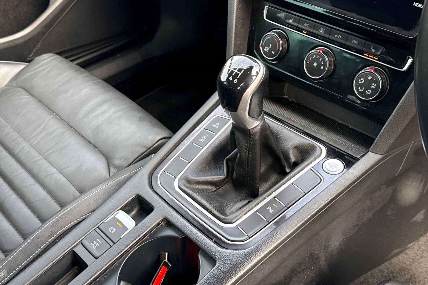 "Leather gear knob with aluminium trim",