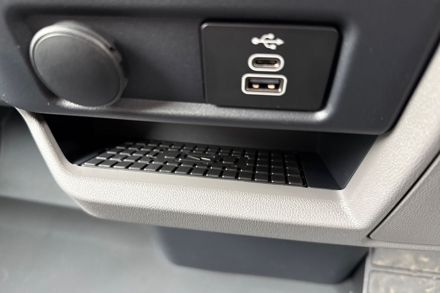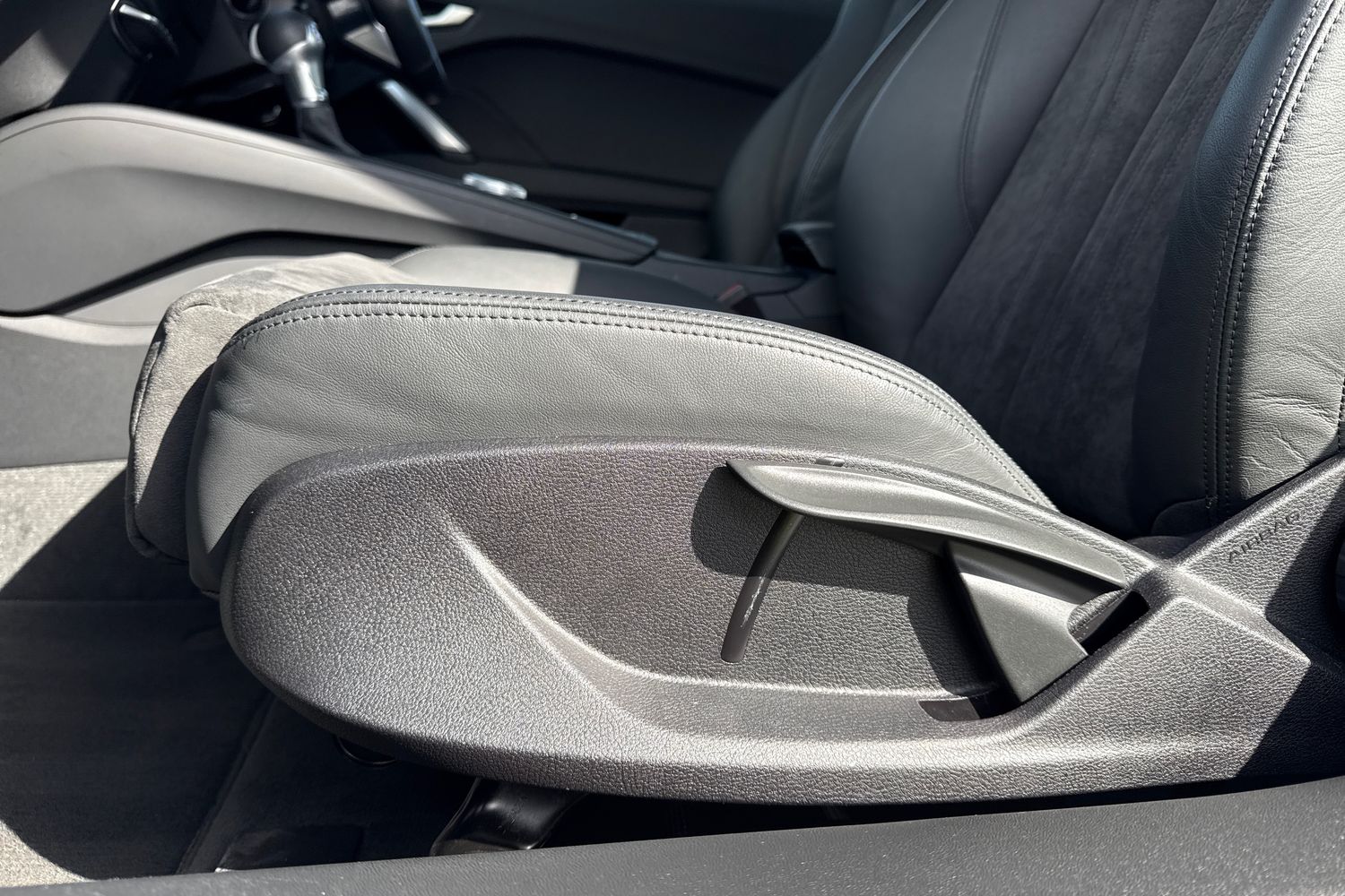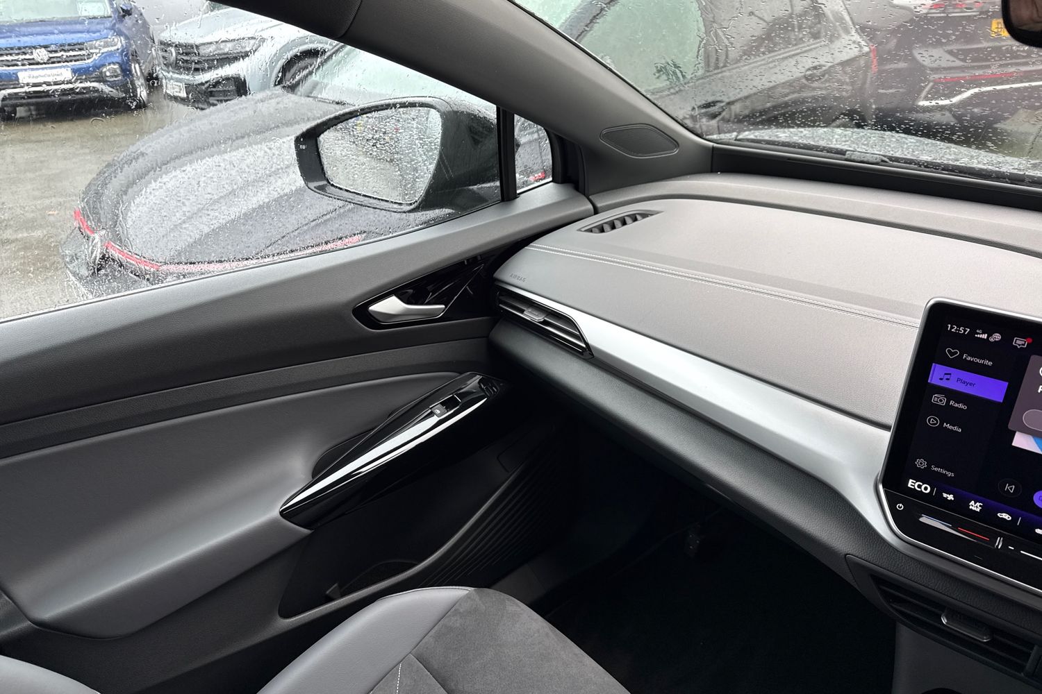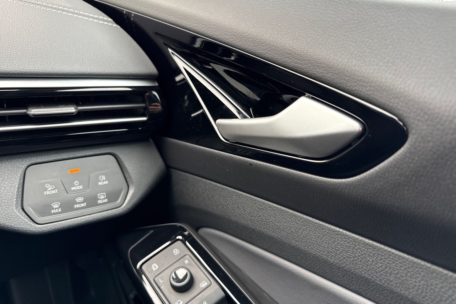 "Structured grey accent areas including air vents, door handle recesses and centre console in quartz paint finish"