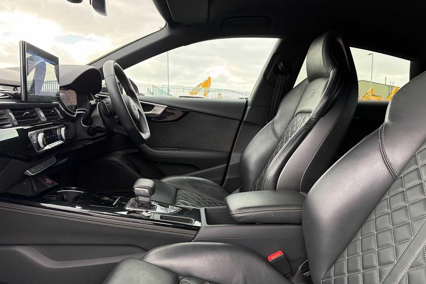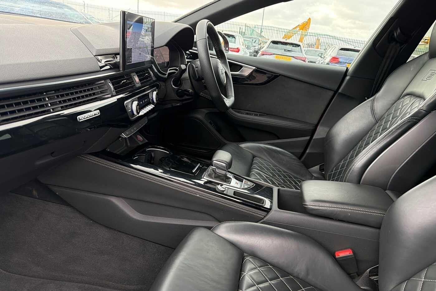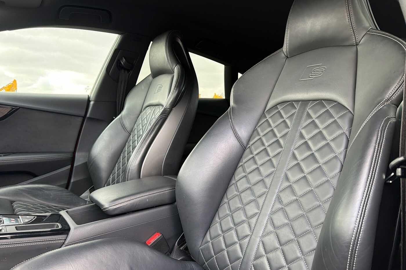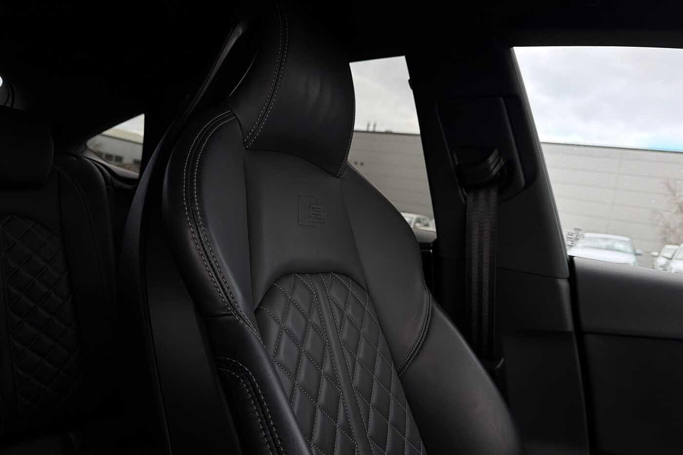 "Fine nappa leather upholstery with S embossed logo + super sports seats",