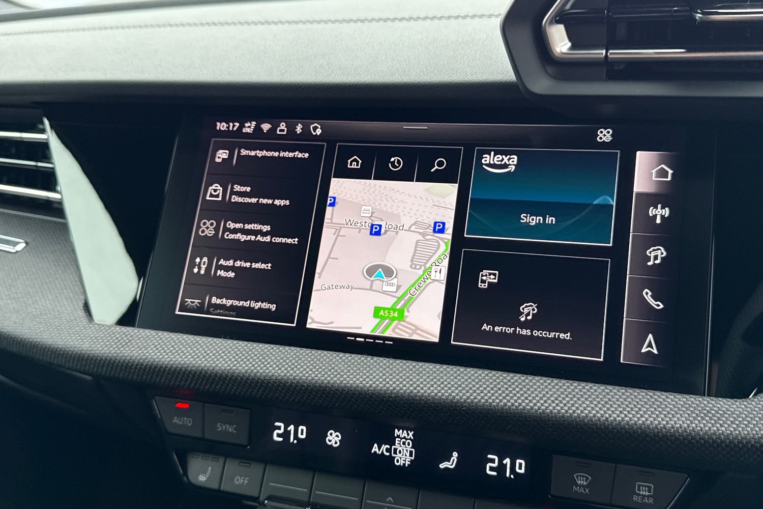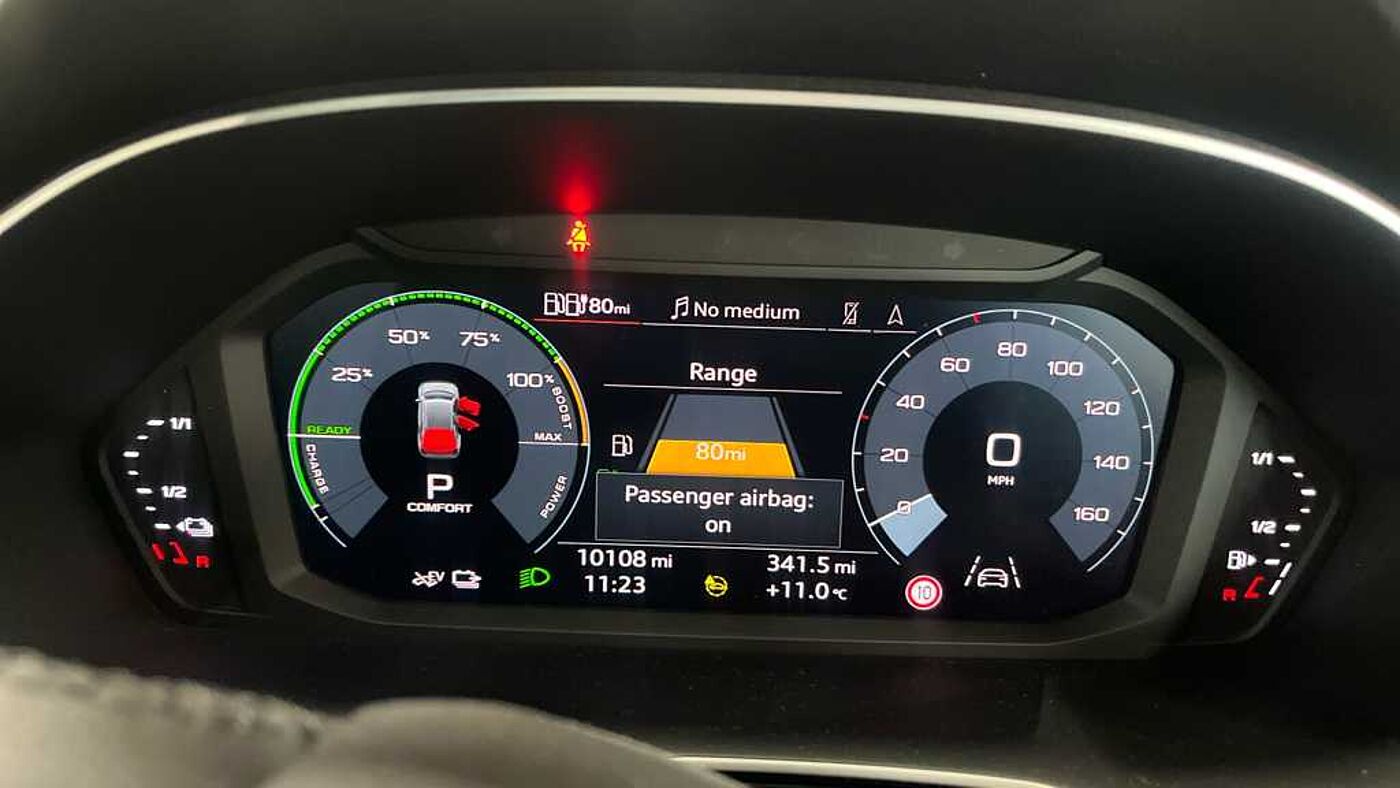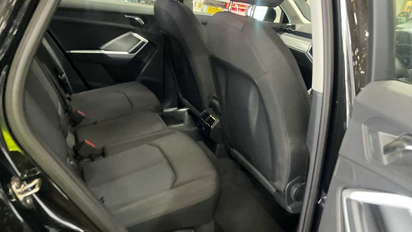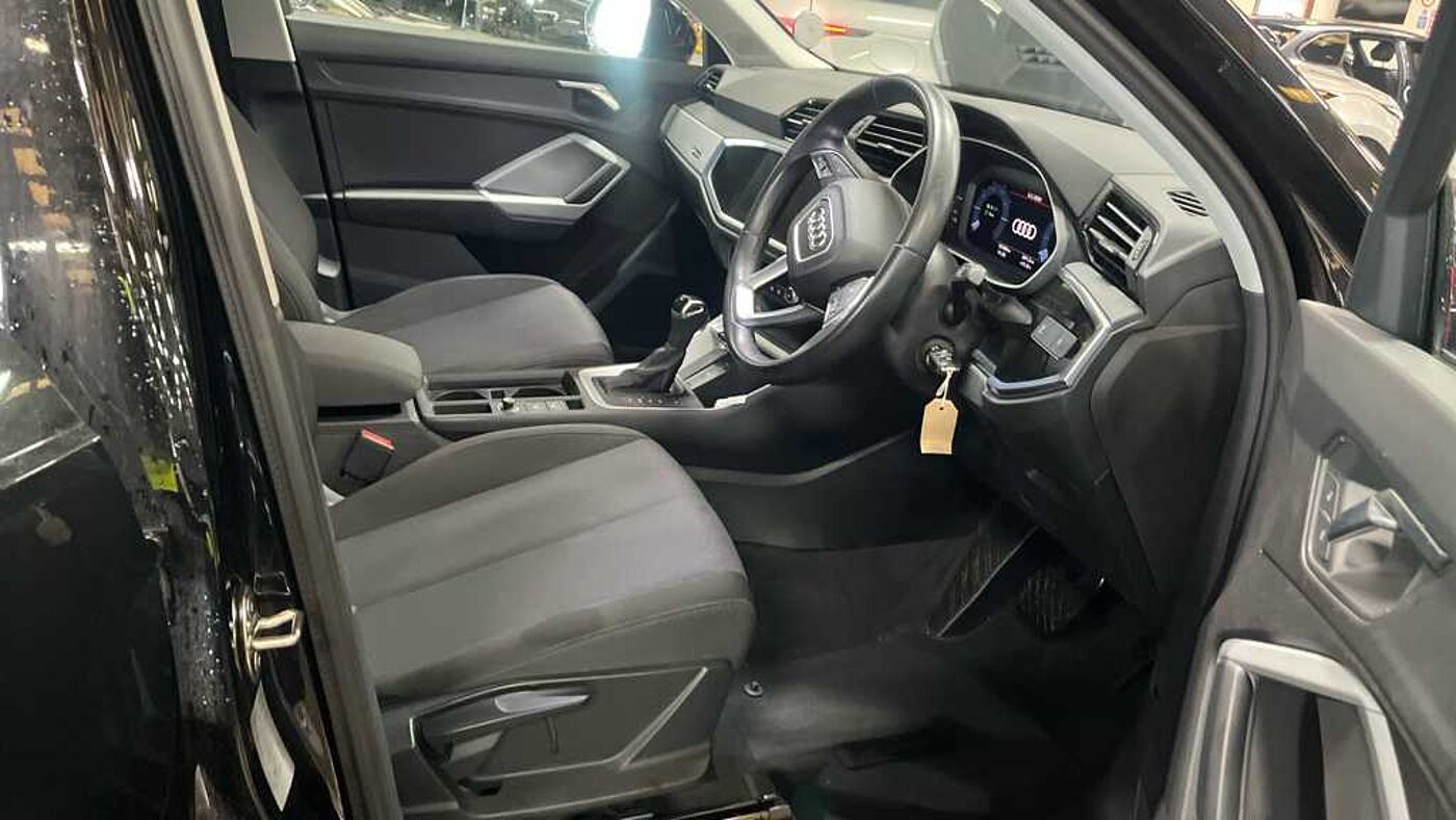 "features": "Amazon alexa Integration, Audi drive select, Audi lane departure warning, Audi Virtual Cockpit - 10.25\" display, Bluetooth interface, Camera based traffic sign recognition, Legal emergency call, MMI Navigation Plus with high resolution 10.1 inch touchscreen colour display, Power operated tailgate, Progressive steering, Service interval indicator, Smartphone interface includes wireless Apple carplay/Android Auto, Start stop system with recuperation, Voice control system with natural language interaction, 3 pin 10 amp domestic charging cable, 3.6 kw On-board charger, Standard suspension, Type 2 mode 3 32 amp charging cable, Type 2 socket for AC charging, 2 USB-C ports with charge and data functions, 6 passive loudspeakers, DAB digital radio module, Acoustic windscreen, Auto dimming frameless rear view mirror, Black roof rails, Body colour door mirrors, Diffuser in grained anthracite, Electrically folding, adjustable and heated door mirrors with integrated LED side indicators and kerb view function for passenger side, Exterior bumper with wheel arch trims and side sill trims in grained black matt, Front and rear electric windows, Grained radiator protective grille, Halogen rear lights, LED headlights with LED daytime running lights, Rain and light sensors, Rear side wing doors, Rear wiper, Third brake light, Variable front intermittent wipers, 12V socket in rear centre console, 3 seat bench in 2nd row, 3 spoke multi-function leather steering wheel, 40:20:40 folding with manual adjustment for 60:40 forwards/backwards position and backrest angle, Dual zone electronic climate control, Front and rear floor mats, Front and rear headrests, Front and rear roof module including reading lights, Front centre armrest, Glove compartment lighting, Height and reach adjustable steering wheel, ISOFIX child seat mounting for front passenger with airbag deactivation and outer rear seat including top tether attachment point for outer rear seats, Luggage compartment light, Lunar silver cloth headlining, Manual front seats with height adjustment, Single front passenger seat, Stainless steel luggage compartment sill finisher, Non smoking pack - Q3, 3x3 point rear seatbelts, 6 airbags - Driver, front passenger, curtain and side windows, Audi pre-sense front with pedestrain and cyclist recognition, Electrically operated child locks on rear doors, Electromechanical parking brake, Electronic stabilisation control including ABS, ASR and EDL, Front seatbelt reminder, Hill descent control, Hill hold assist, Pre sense basic, Seatbelt monitoring, Tyre pressure warning, Warning triangle and first aid kit, Anti theft alarm, Anti theft wheel bolts, Immobiliser, Remote central locking, Detail dashboard around MMI touch colour display in glass look, black with surround in aluminium look, Micrometallic silver inlay, 17\" 5 twin spoke design alloy wheels, Tool kit, Tyre repair kit, ",