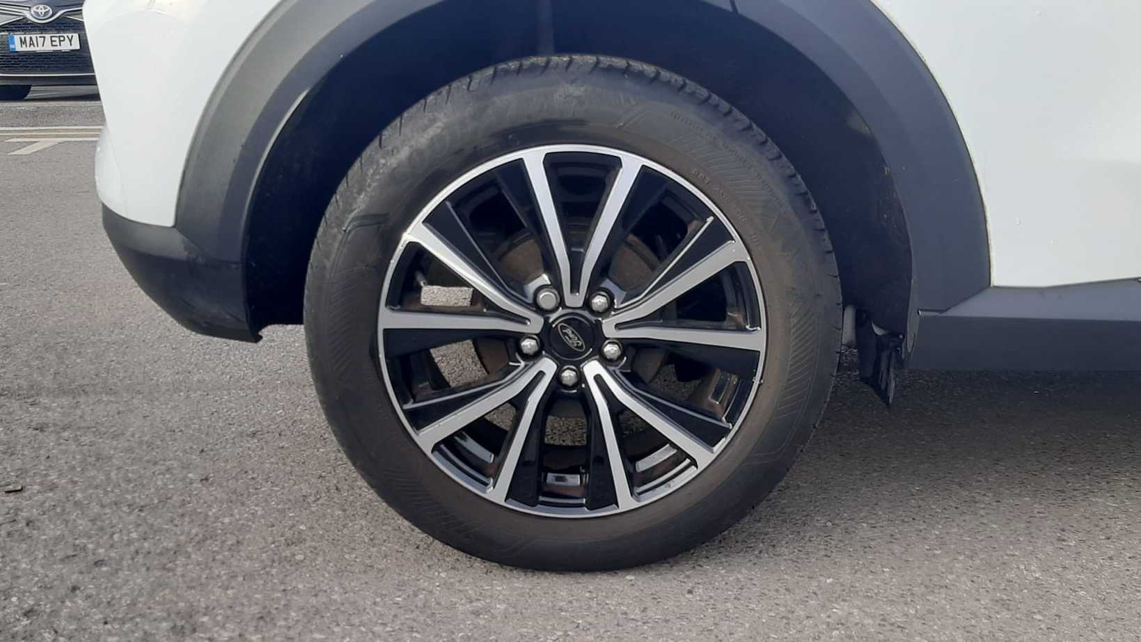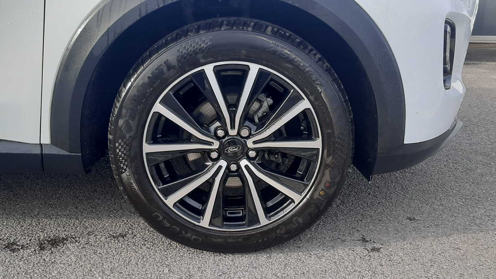 "features": "Driver impairment monitor, Emergency call service, Ford easy fuel, Lane keeping aid with lane departure warning, Power assist steering, Power start button, Rear parking sensor, Selectable drive modes(Normal, Eco, Sport, Slippery and Trail), Speed sign recognition, Standard suspension, Automatic headlights with auto high beam, Automatic rain sensing wipers, Body colour rear spoiler, LED rear lamps, Power foldable heated door mirrors with puddle lamps, Projector headlamps with LED day time running lights and front fog lamps, Quickclear heated windscreen, Rear side wing doors, Rear wiper, Third brake light, 3 seat bench in 2nd row, Centre console with armrest and stowage, Electronic automatic temperature control (EATC), Ford megabox extended bootspace, Front and rear head restraints, Front floor mats, Manual 2 way passenger seat adjustment, Manual 4 way driver seat adjust with lumbar adjustment, Sensico leather steering wheel/gear knob/handbrake, Single front passenger seat, Titanium cloth upholstery, Ford SYNC 3 navigation pack - Puma, 3 rear seatbelts, Child safety lock, Electronic stability control (ESC) and hill start assist, Pedestrian/cyclist detection & post-collision braking, Pre collision assist system, Tyre pressure monitoring system (TPMS), Thatcham alarm, 17\" 10 spoke absolute black machined finish alloy wheel, ",