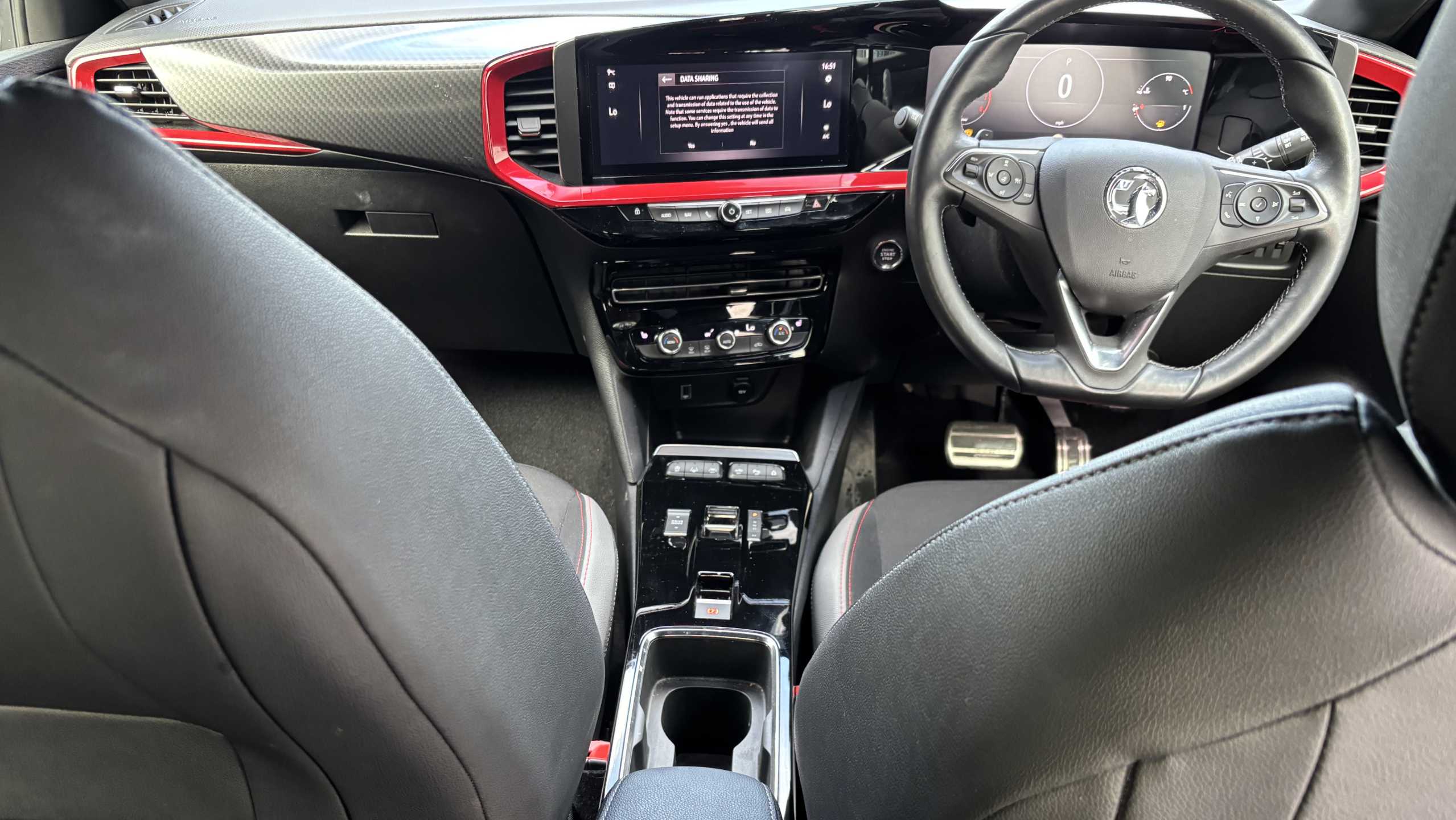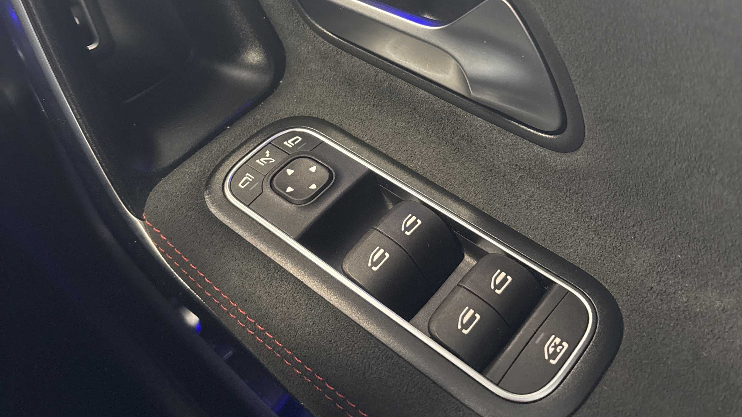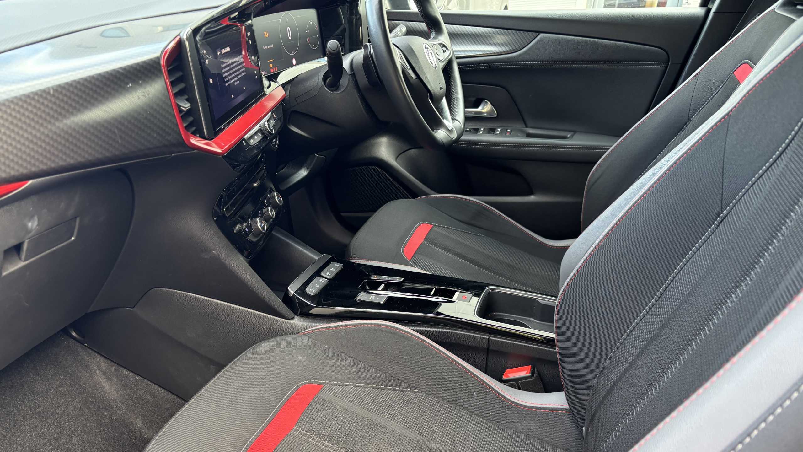 "Lime green contrast stitching to front centre console, door panels and dashboard facia",