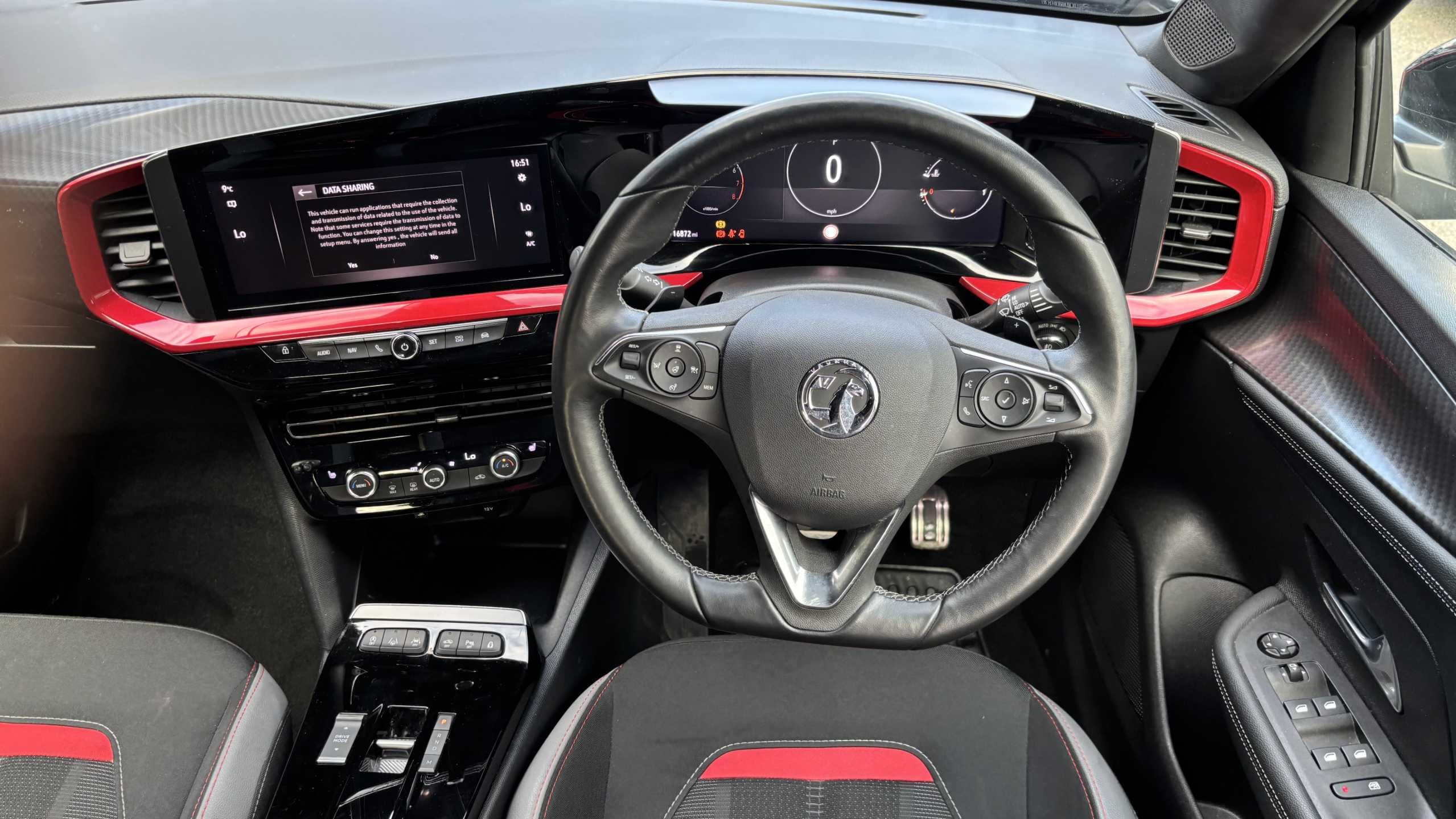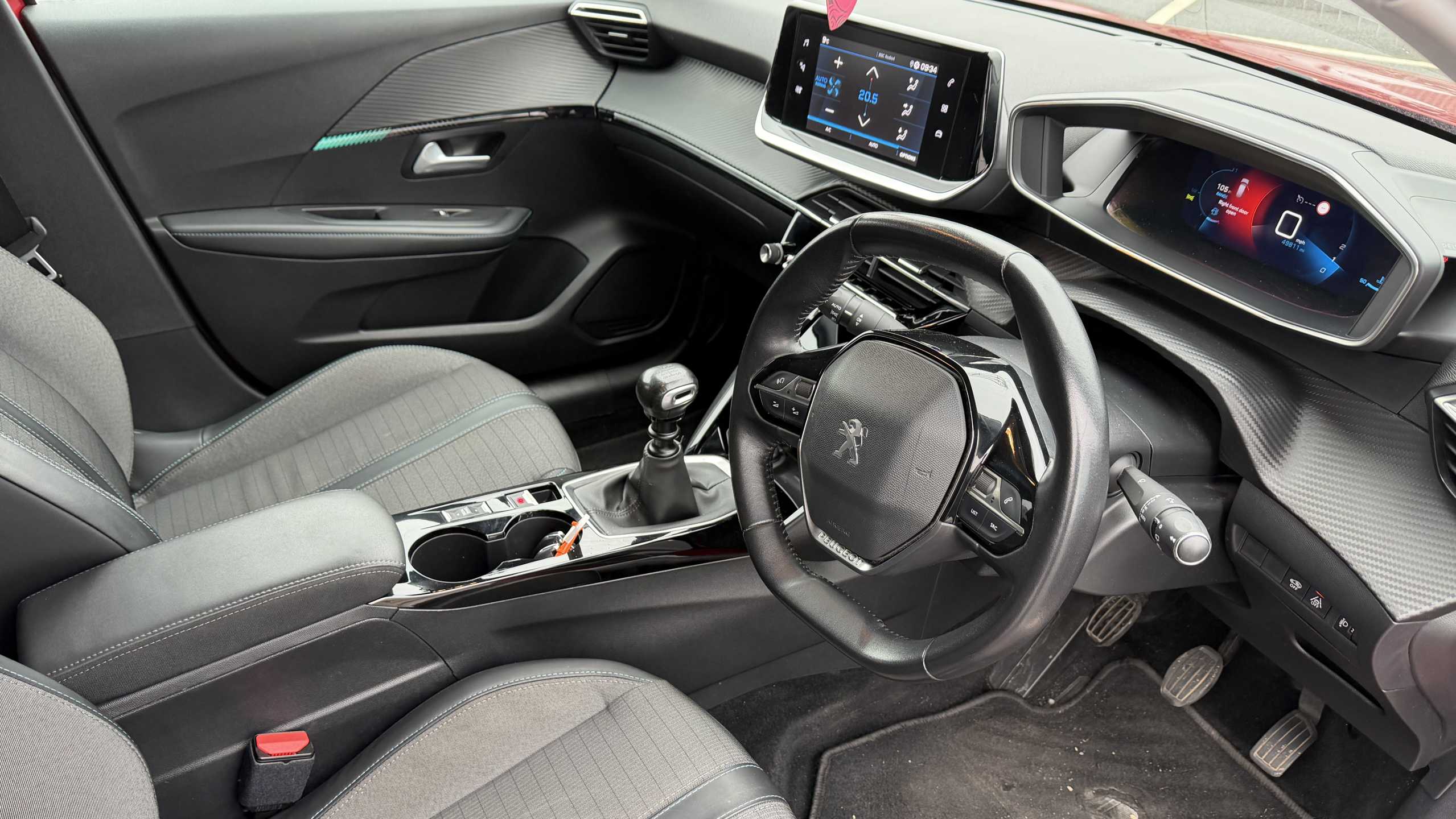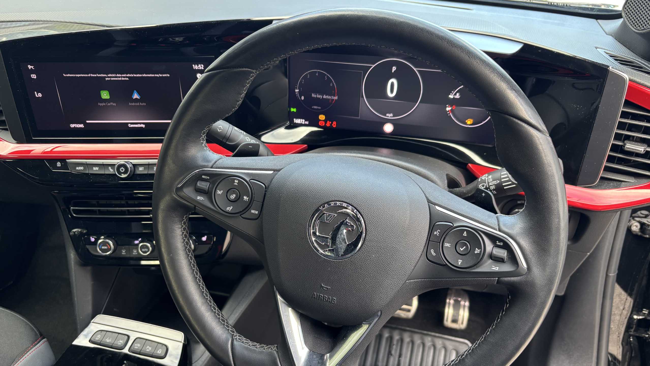 "Lime green contrast stitching to front centre console, door panels and dashboard facia",