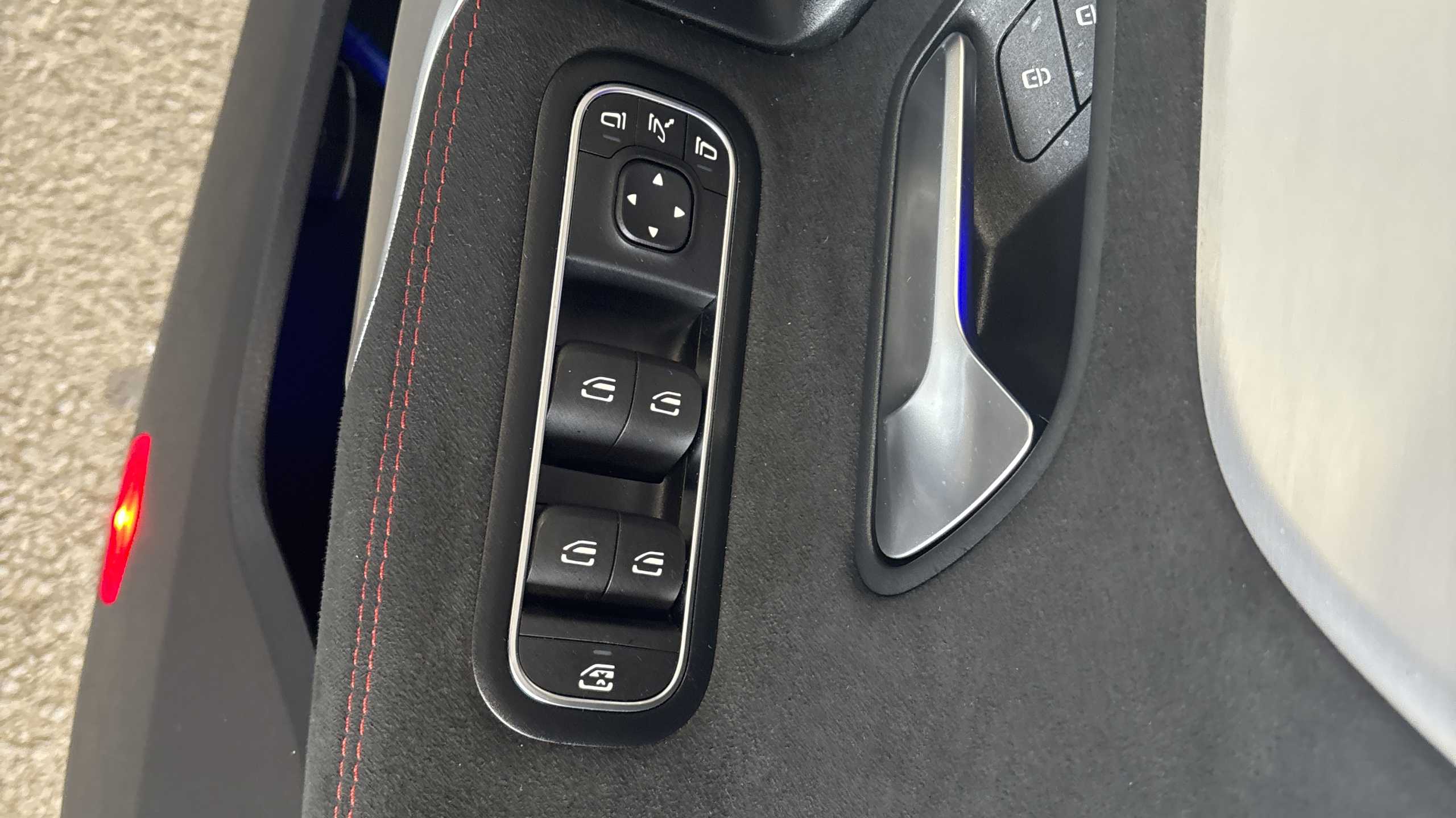 "LED side indicator lights integrated into door mirrors",