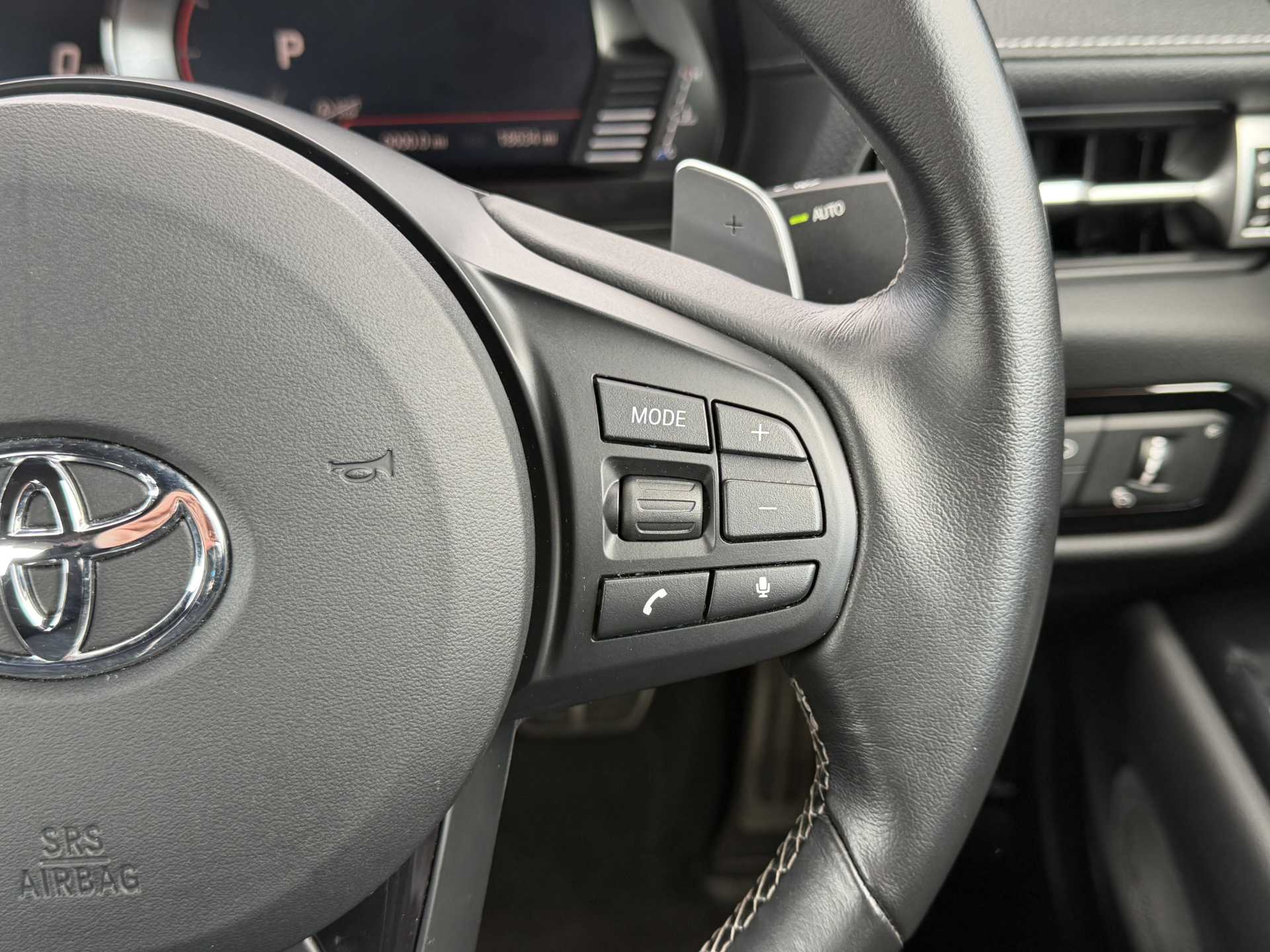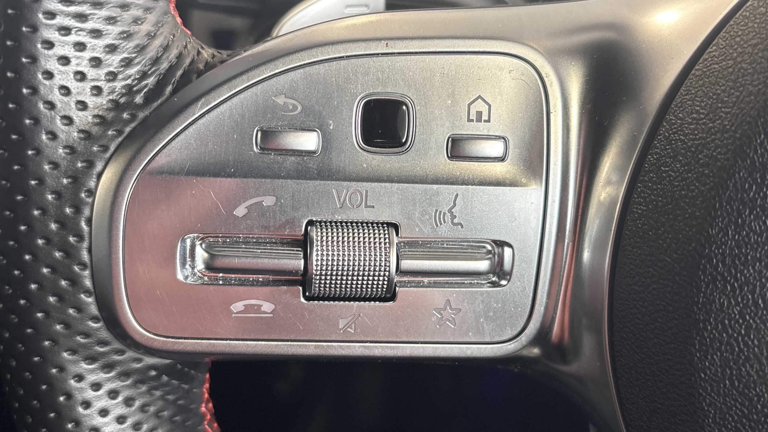 "Mistral full-grain perforated leather steering wheel with Lime Green stitch detail and satin chrome 'GT' emblem",