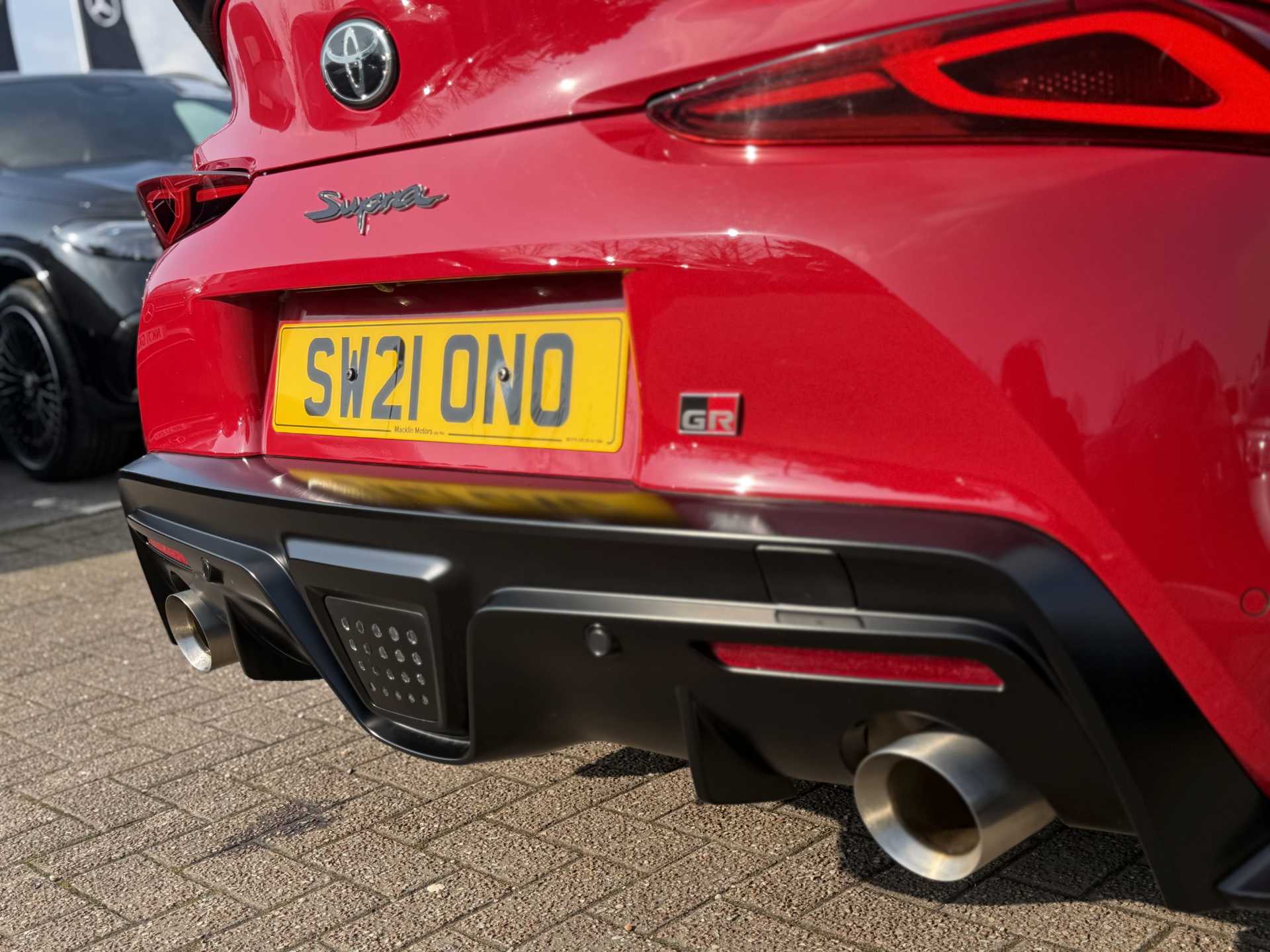 "Twin chromed exhaust pipes",