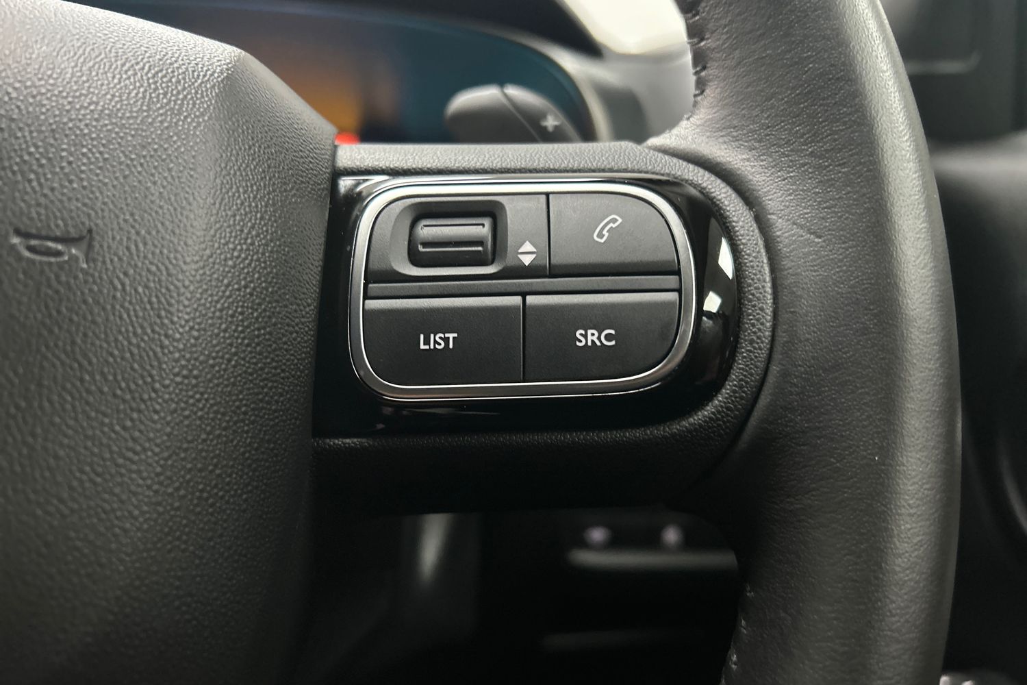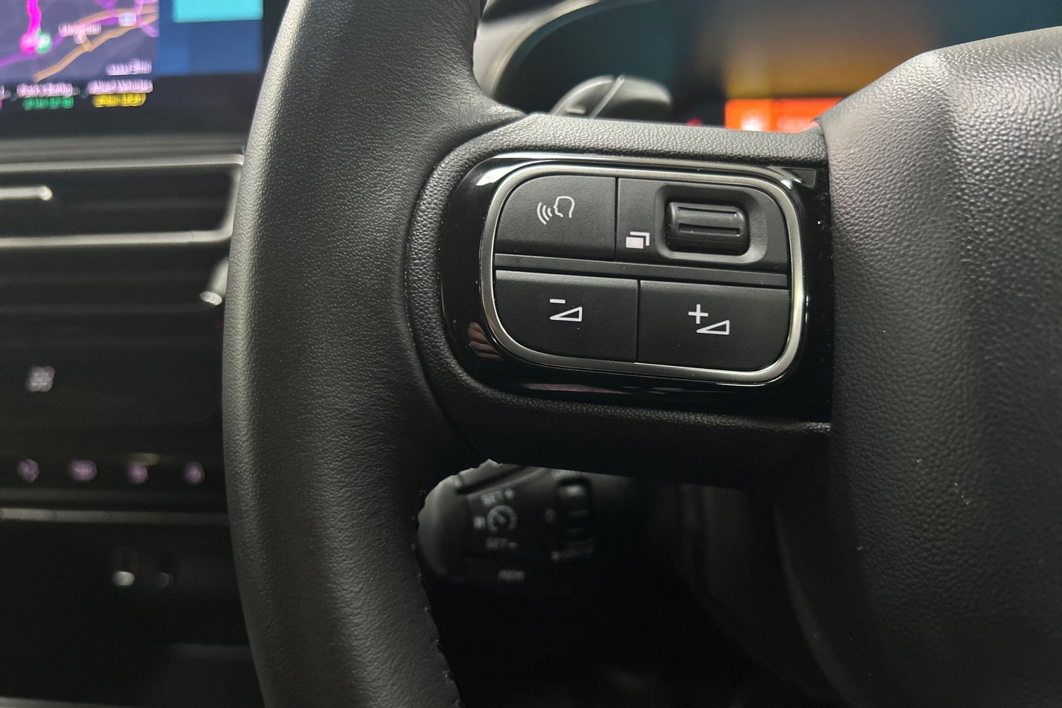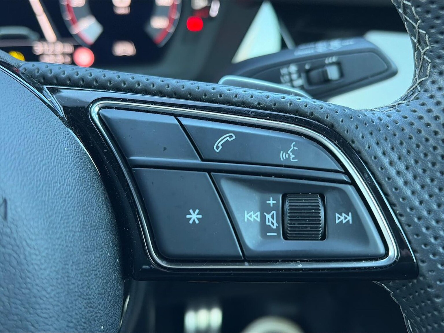 "Twin spoke multifunction heated leather steering wheel with touch control, shift paddles and trim in chrome look",