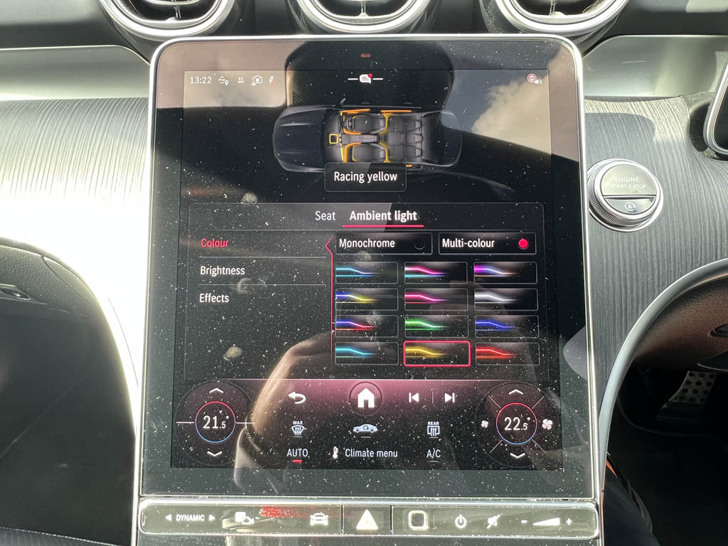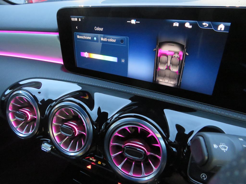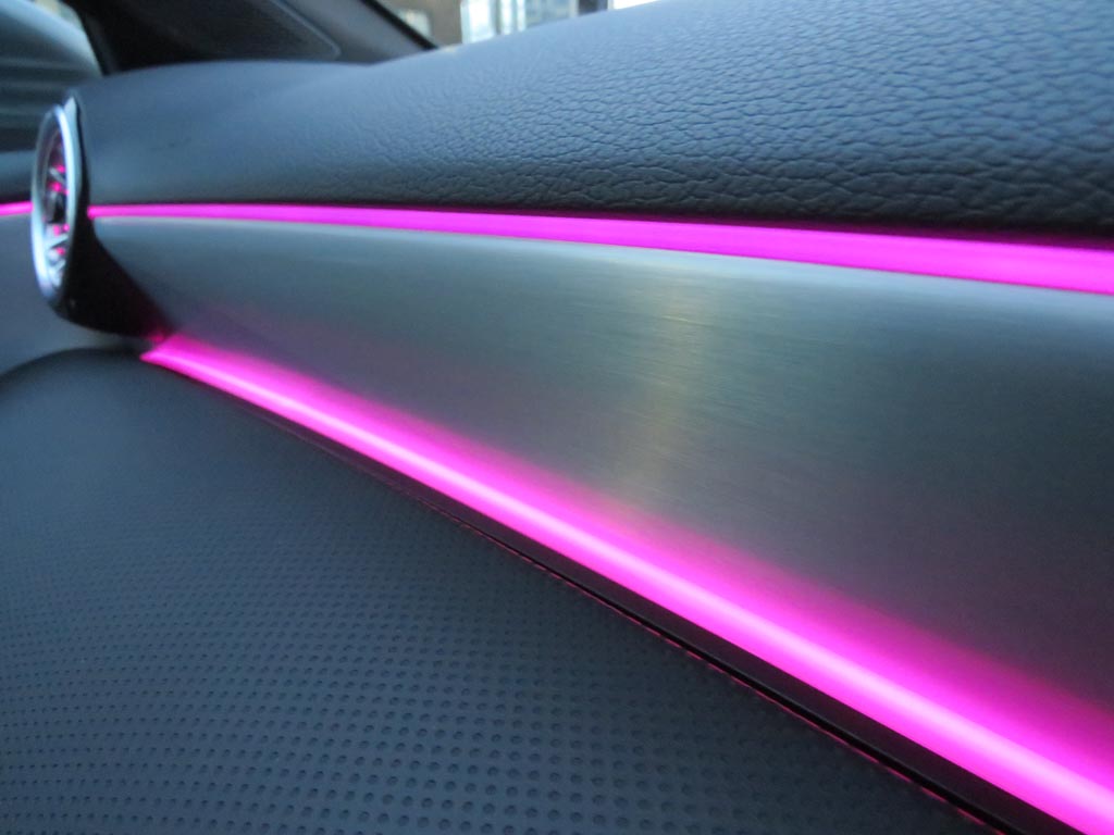 "Ambient lighting with mirror logo projection",