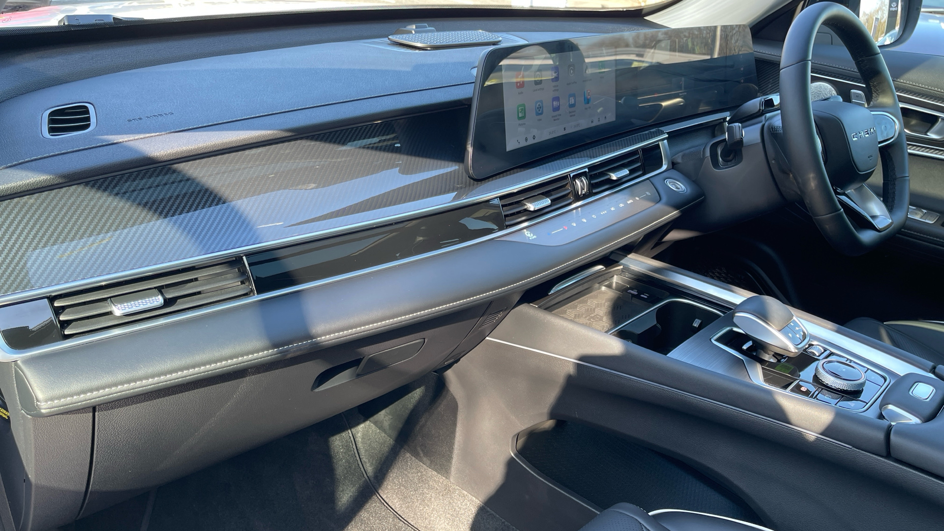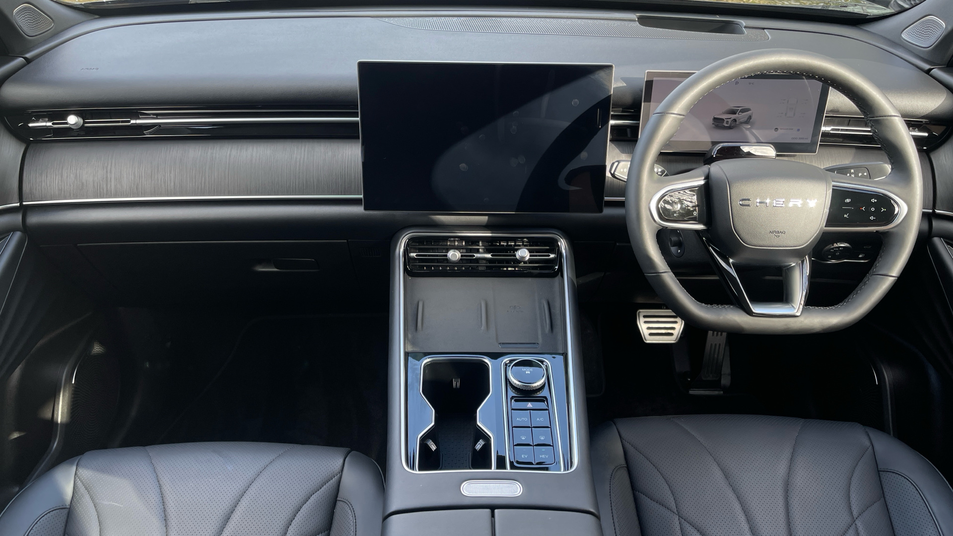 "features": "10.25\" driver display screen, 15.6\" Infotainment touchscreen, 540 degree surround view camera, Blind spot detection, Bluetooth connection, Chery connect app, Driver monitor system (DMS), Driving modes (Normal, ECO, Sport, Snow, Sand, Offroad), e-Call (emergency call), Electric power steering, Emergency lane keep assist, Front and rear parking sensors with side protection, Front collision avoidance assist - city, pedestrian, cyclist, junction turning and crossing, Full automatic park assist system (APA), Hello chery virtual personal assistant, Highway assist, Intelligent cruise control with stop and go, Intelligent speed limit assist, Lane departure prevention, Lane departure warning, Multiple collision defence system, Online navigation, OTA Function, Power tailgate, RCTA - Rear cross traffic alert, Rear collision warning, Rear view camera with dynamic guidelines, Remote AC control, Remote engine start, Remote start, Remote start air conditioning, Shift paddles on steering wheel, Smartphone wireless charging - 1 x 50W, Speed limit reminder, Traffic sign recognition (TSR), Wireless apple car play/android Auto, Fast and slow speed integrated charging port (CCS Type 2), Independent rear suspension, V2L outlet 6.6kW, 1st Row USB type-A and USB type-C, 2nd row USB-Ax1,USB-Cx1, DAB Digital radio, Sony 14 speaker audio system, 1st row LED illuminated door sills, Auto dimming rear view mirror, Auto heated windscreen washer nozzles, Automatic LED headlights, Driver's door mirror memory, Dynamic puddle lamp, Electric adjustable/heated/folding door mirrors with LED Indicators, Electric heated windscreen, Follow me home headlight function, Front and rear LED dynamic indicators, High level brake light, High strength roof rails, Intelligent high beam control, LED daytime running lights, LED rear lights, Panoramic sunroof with tilting and sliding function with electric blind, Power fuel door, Privacy glass (Rear Windows and Tailgate), Rain sensing front wipers, Rear side wing doors, Rear wiper, Signature exterior lighting activation effect, Sound absorbing glass, 2 seat bench in 3rd row, 2nd row AC control, 2nd row AC vents, 2nd row LED reading lights, 2nd row window blinds, 3 seat bench in 2nd row, 3rd row LED reading lights, 3rd row seat angle adjustment, 4 way power lumbar driver seat, 6 way electrically adjustable front seats, 60/40 split folding rear seats with flat folding, Air conditioning automatic defogging, Alloy sports pedals, AQS Air quality system, Customisable ambient lighting, Driver seat easy entry feature, Driver seat memory function, Driver/passenger sunvisor with auto illuminated vanity mirrors, Dual zone air conditionor with auto climate control, Electric 4 way adjustable steering column, Folding 3rd row seats, Front and rear headrests, Glove box with damping, Heated front seats, Heated seats (2nd row), Heated steering wheel, Isofix child seat anchor points, Leather steering wheel, Leather upholstery, Manually adjustable second row seats, Massage function for front seats, Multi function steering wheel, Passenger seat with executive control, Single front passenger seat, Ventilated front seats, Ventilated seats (2nd row), 3 point seatbelts on all seats, ABS/EBD, Autonomous emergency braking, Brake assist and priority system (BAS) (BOS), Door open warning, Driver knee airbag, Dual front airbags, Electronic parking brake with auto hold, Electronic Stability Programme (ESP), Front centre airbag, Front side airbags, HDC - Hill descent control, Hill start assist control (HAC), Mechanical child safety lock, Seat belt reminder, Second row side airbags, Side curtain airbags, Traction control system (TCS), Tyre pressure monitoring system, Engine immobiliser, PEPS (passive entry and passive start), 20\" Alloy wheels, Puncture repair kit, ",