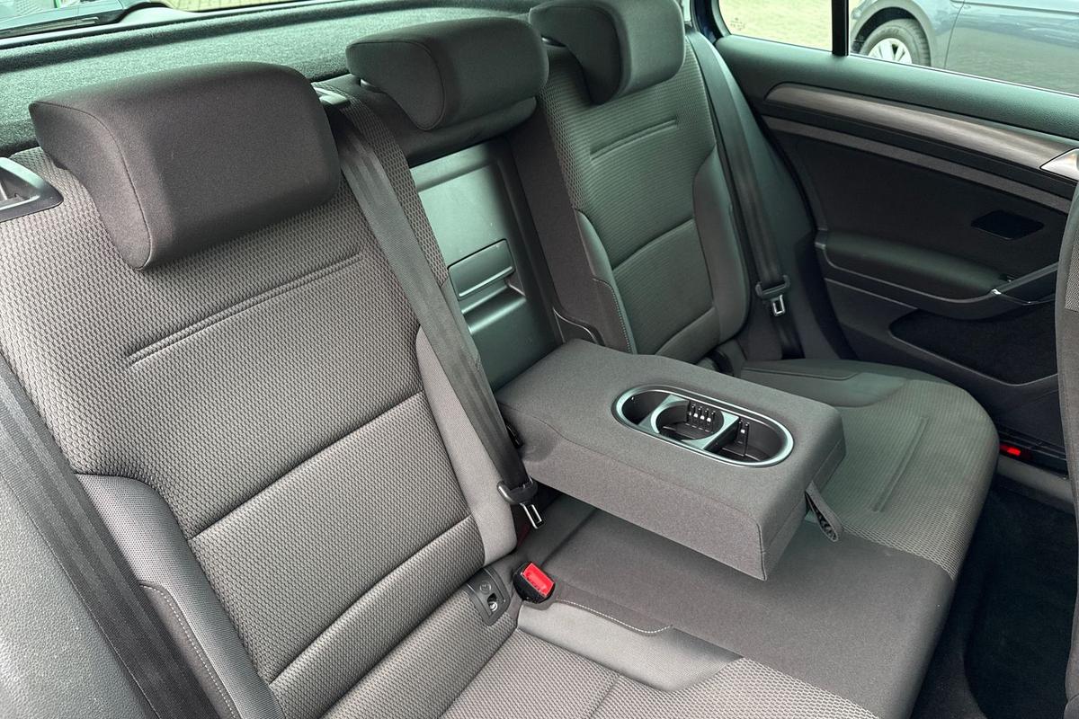 "Asymmetric split folding rear seat backrest with load through hatch and center armrest, 2 beverage holders",