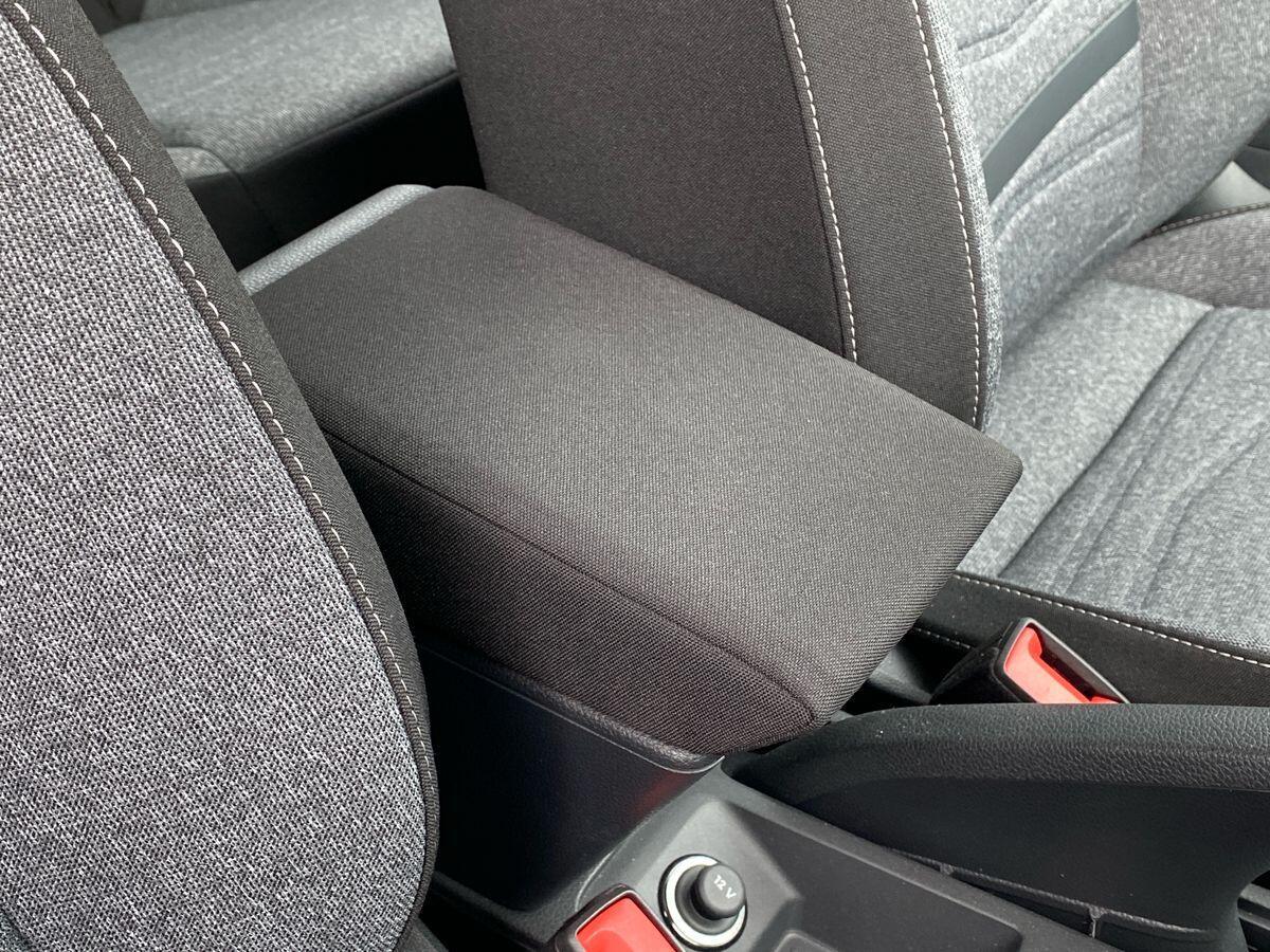 "Center console and armrests in the front seats",