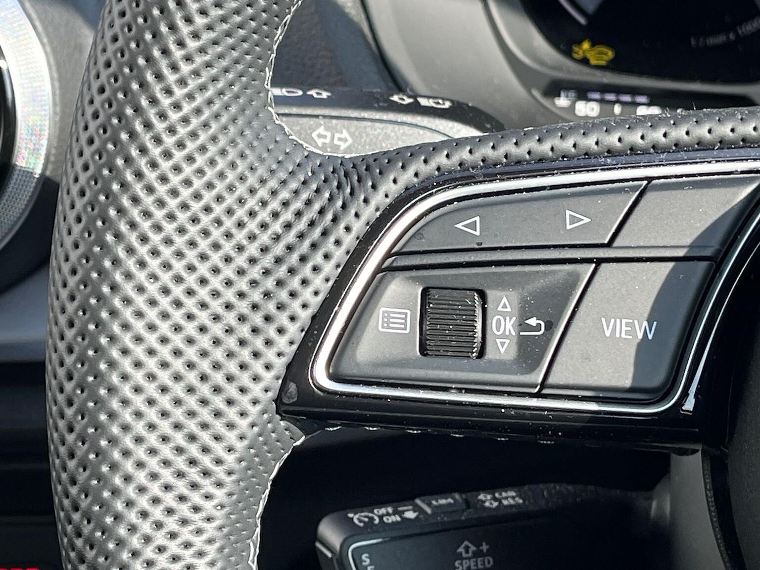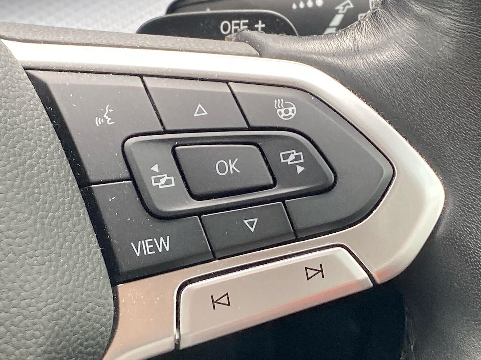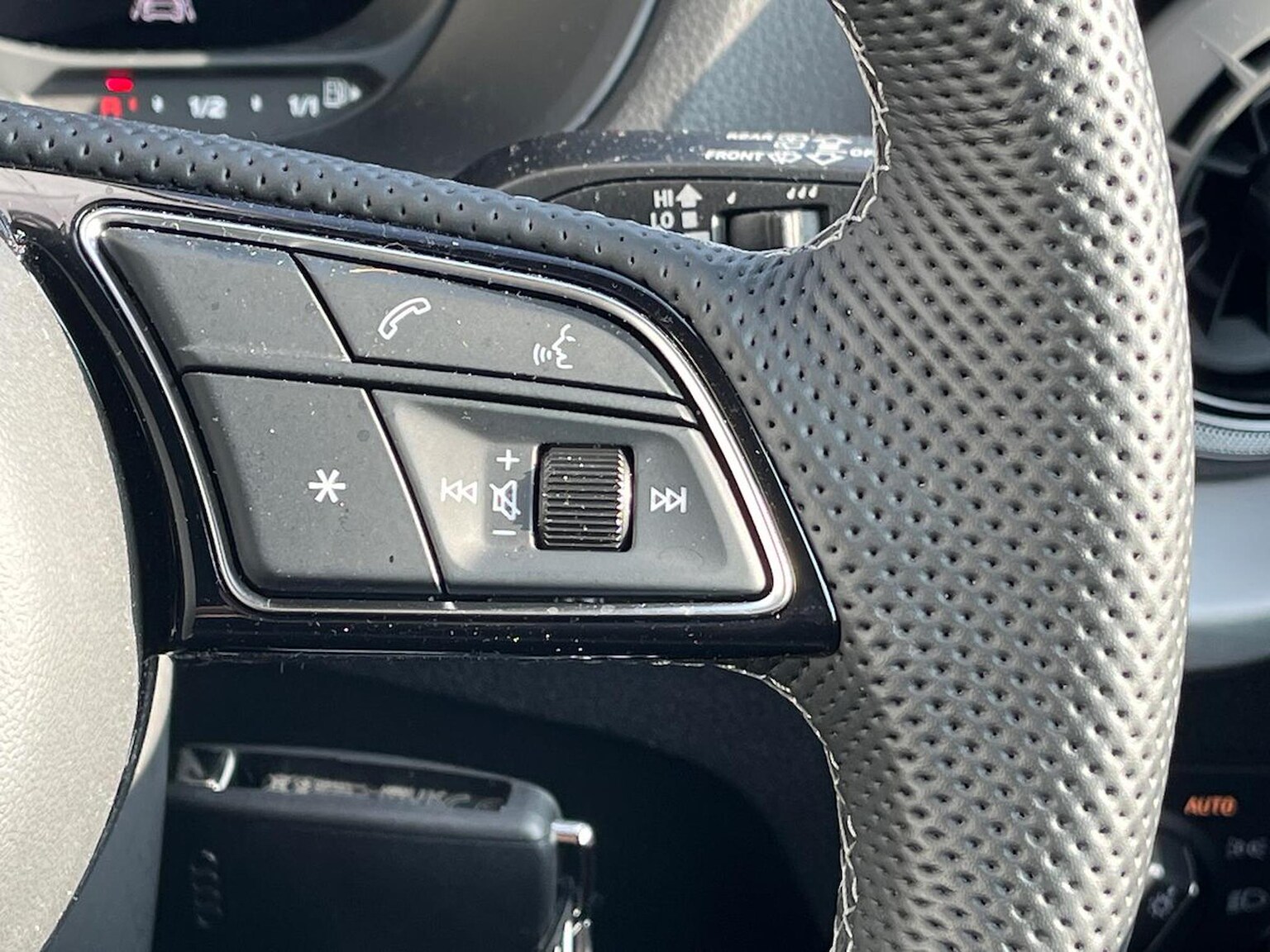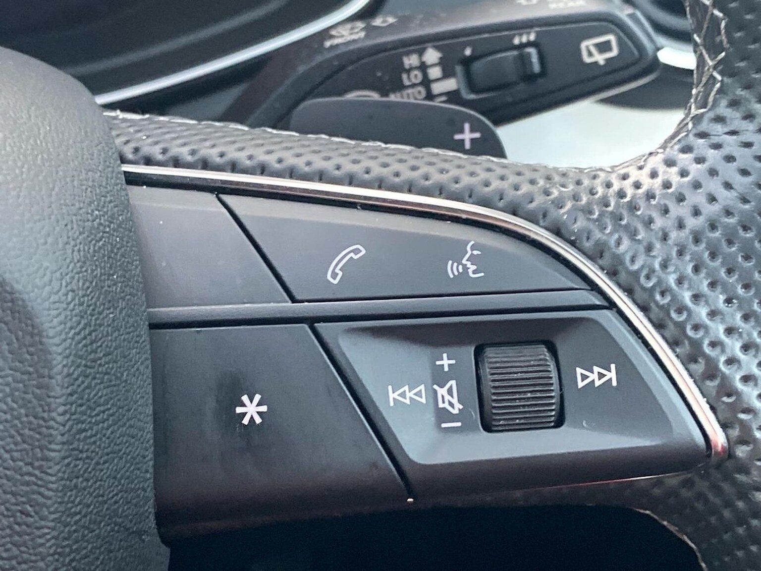 "3 spoke flat bottomed multi-function leather sport steering wheel with gear shift paddles",