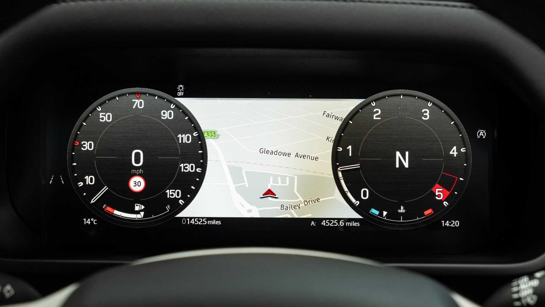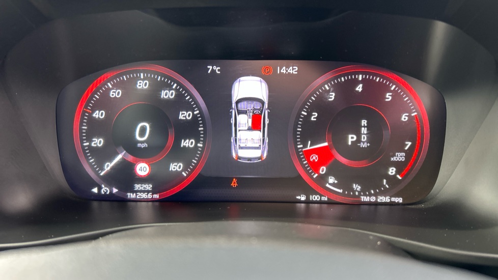 "Speedo and rev counter, electronic odometer, trip, service interval display and exterior temperature gauge",