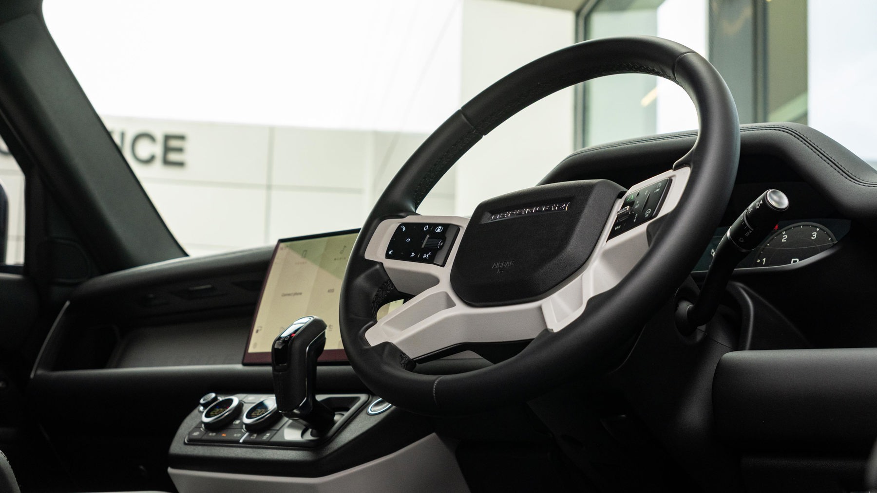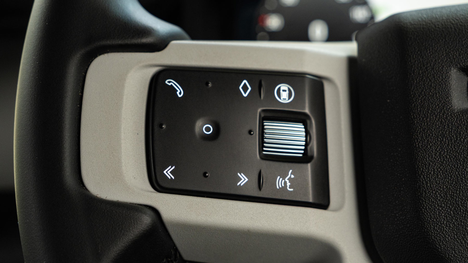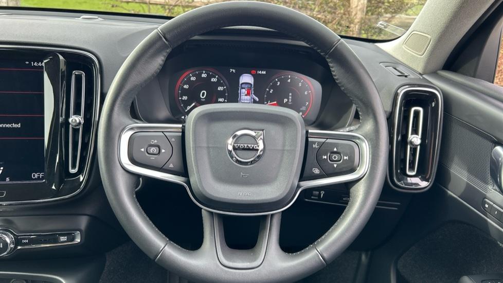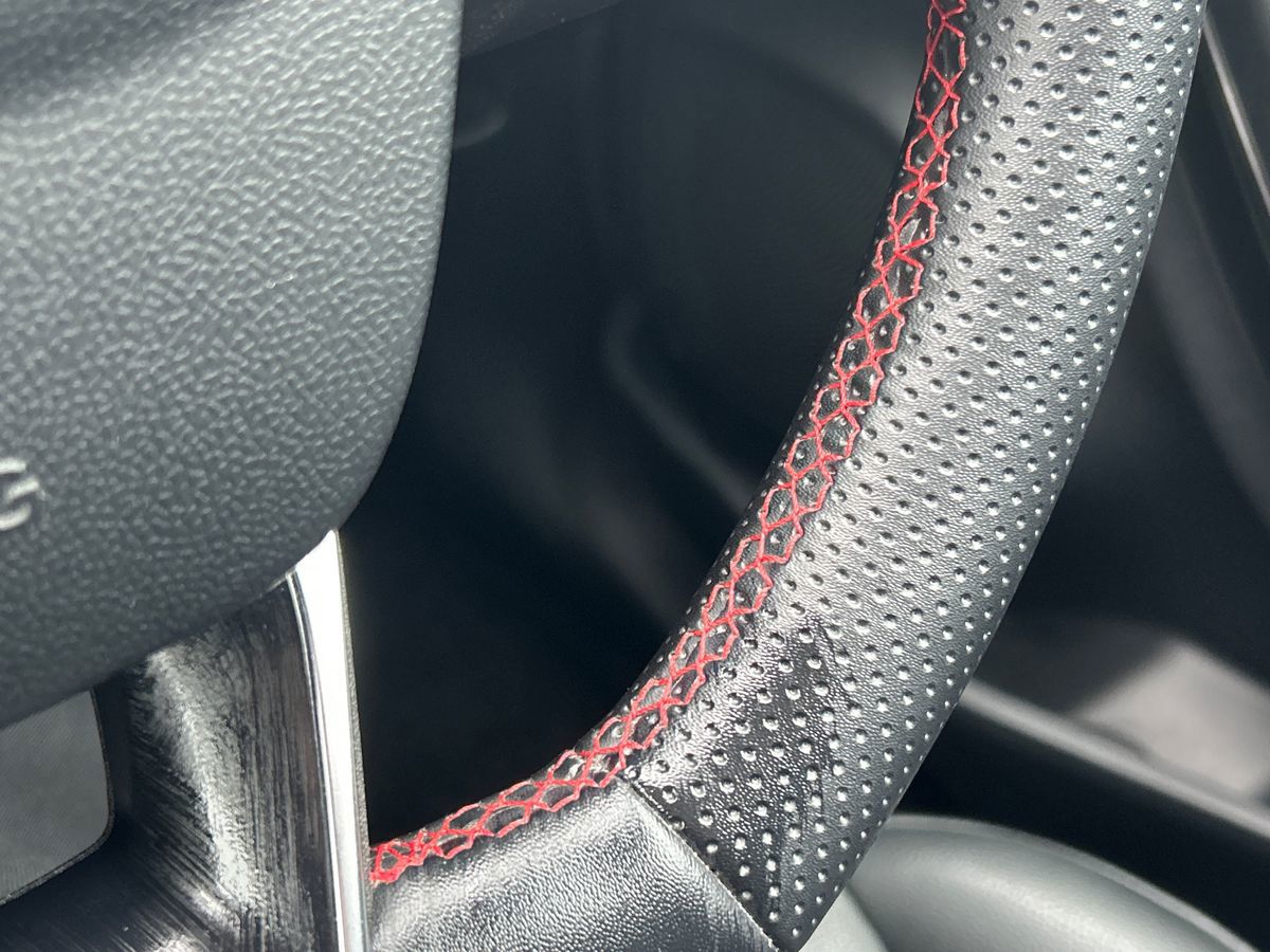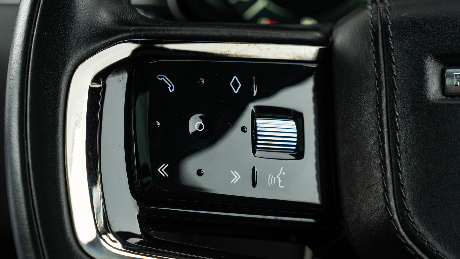 "Three spoke leather wrapped multifunction steering wheel"