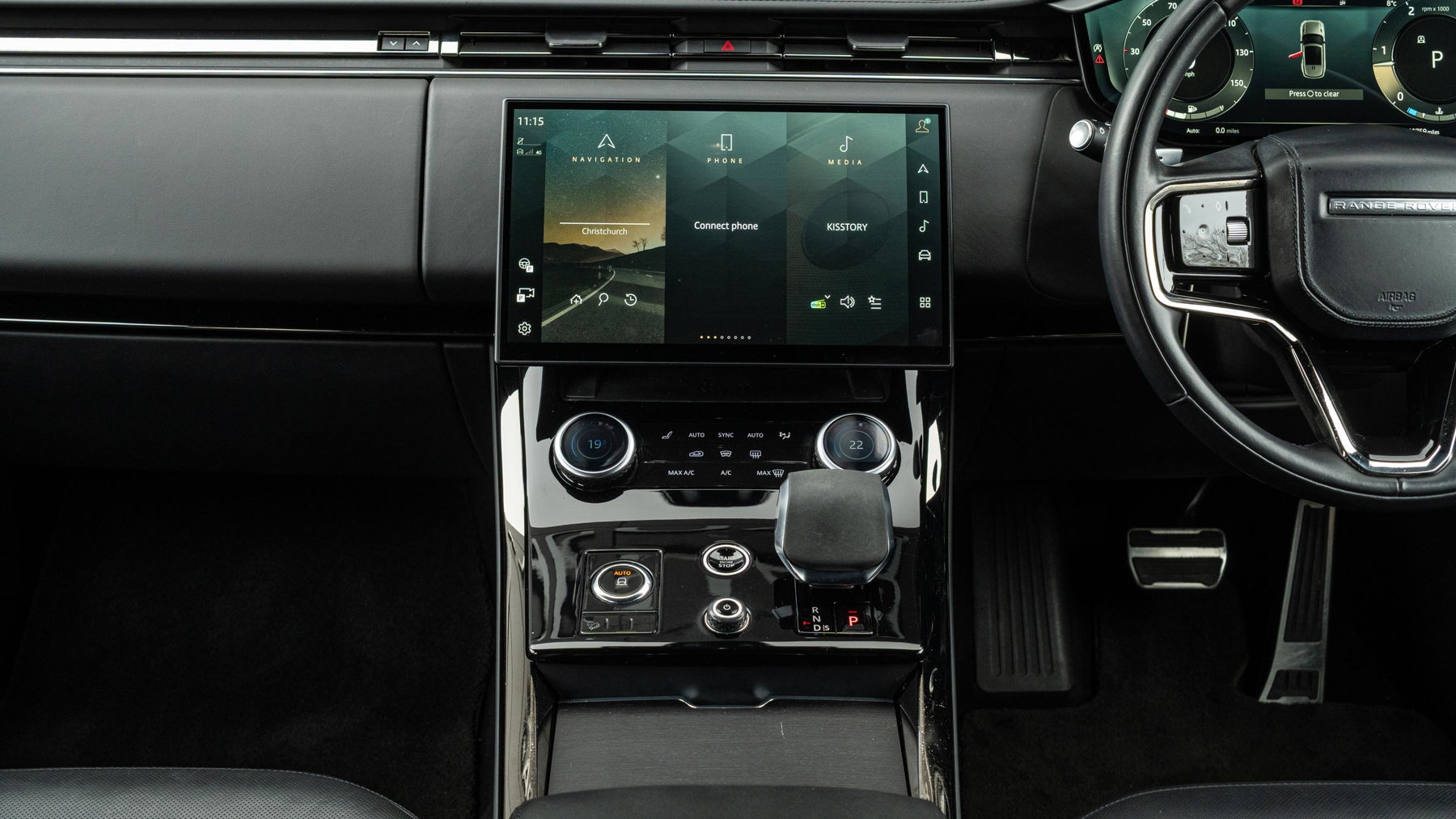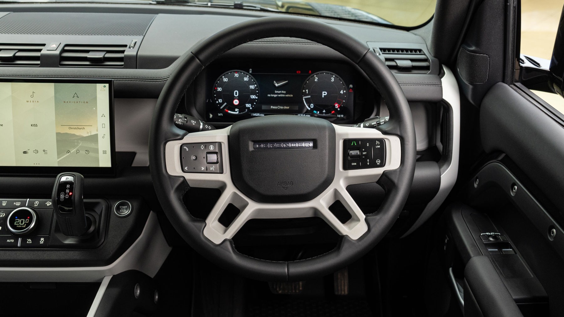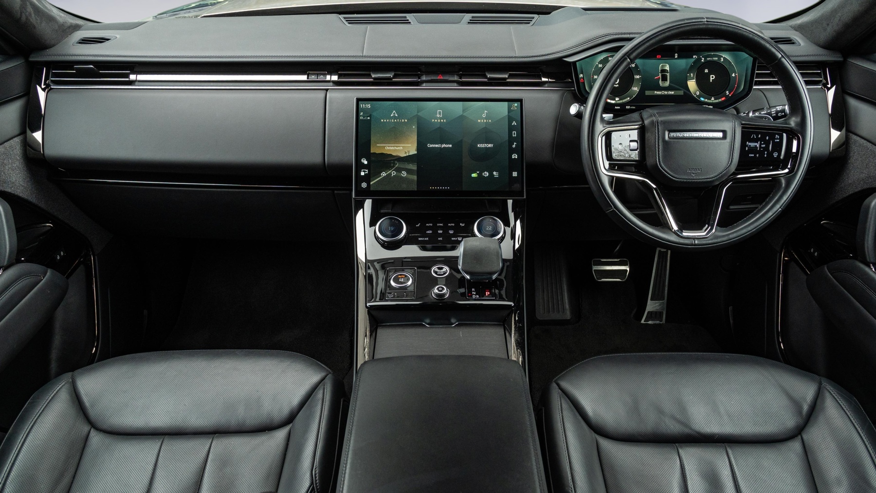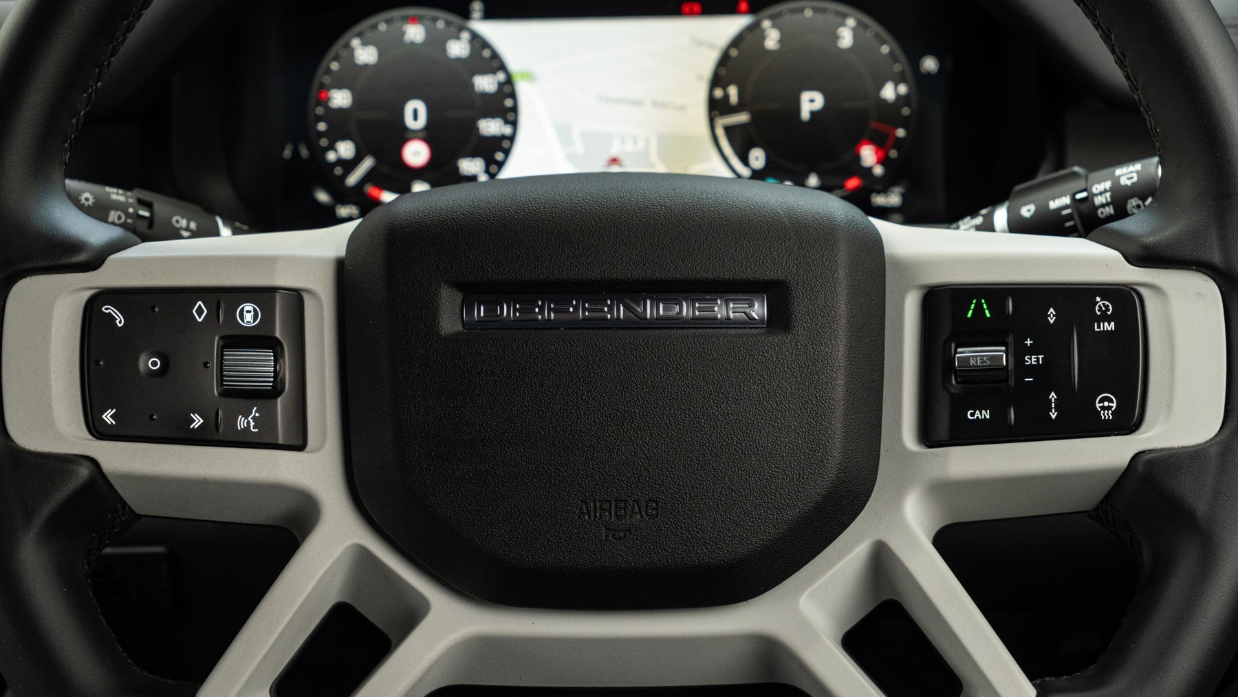 "Three spoke leather wrapped multifunction steering wheel"