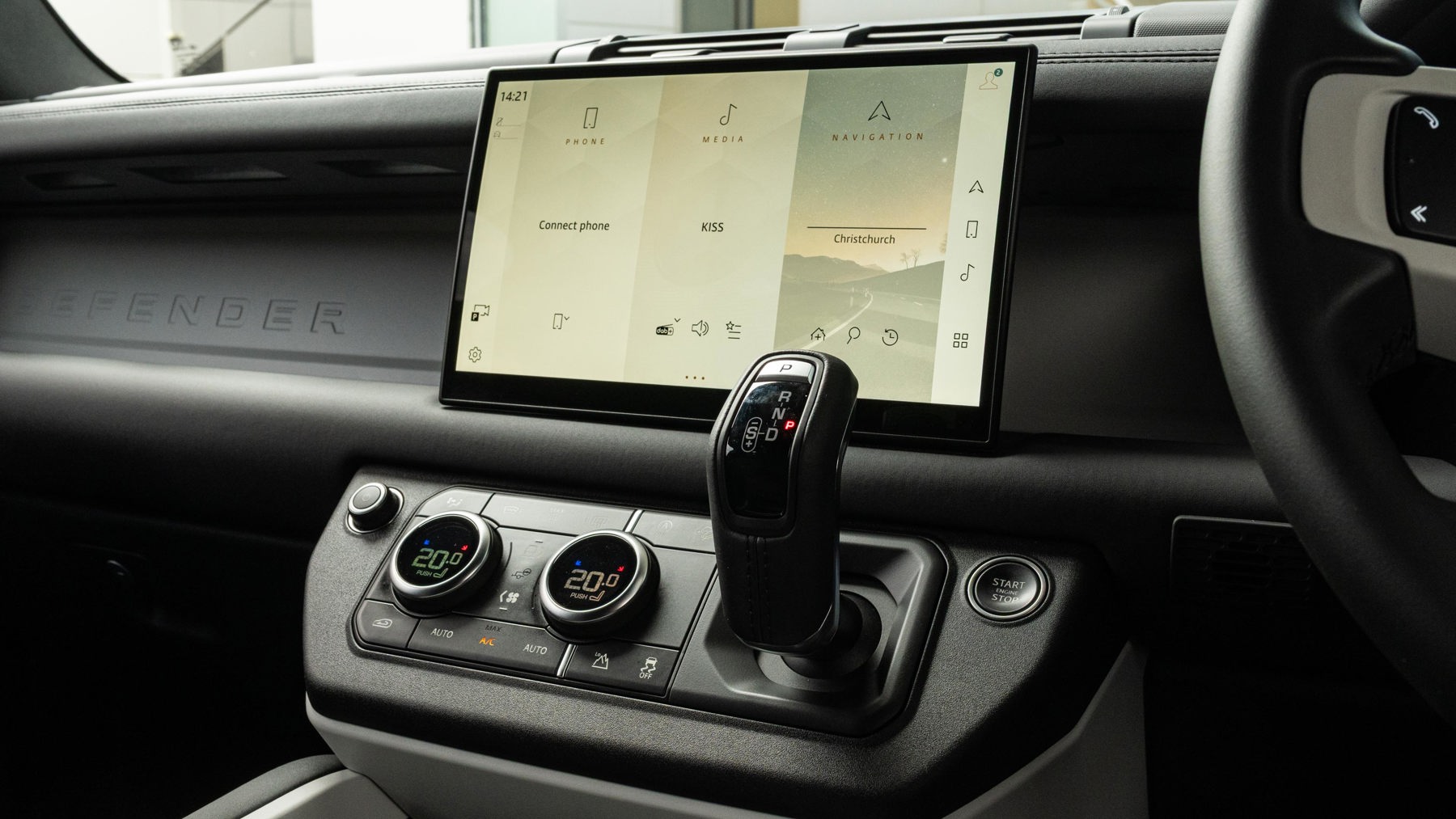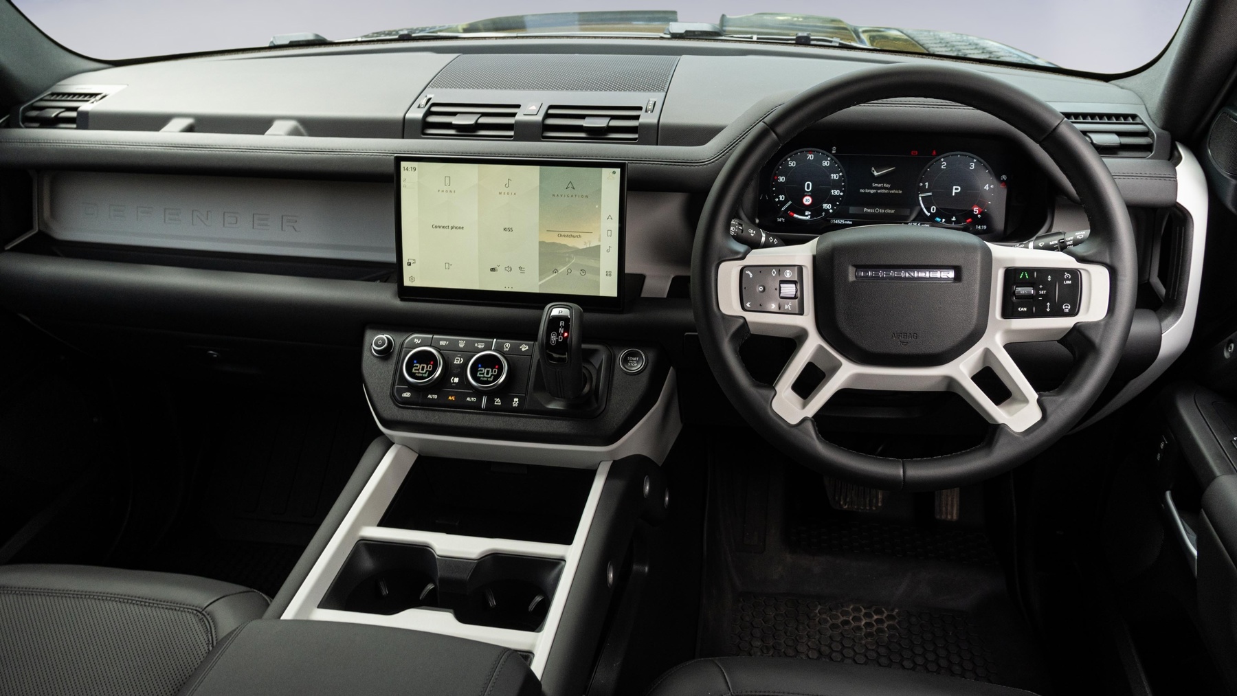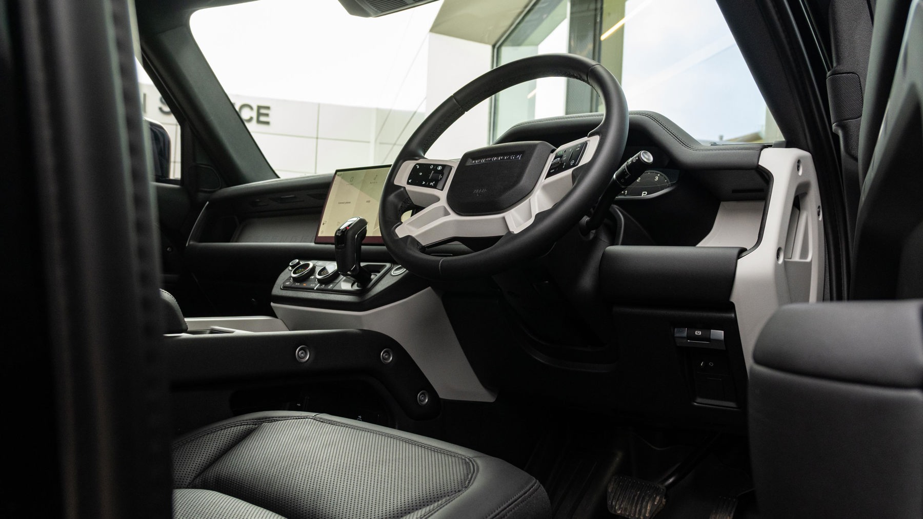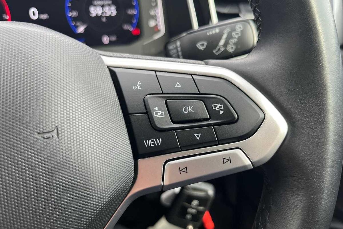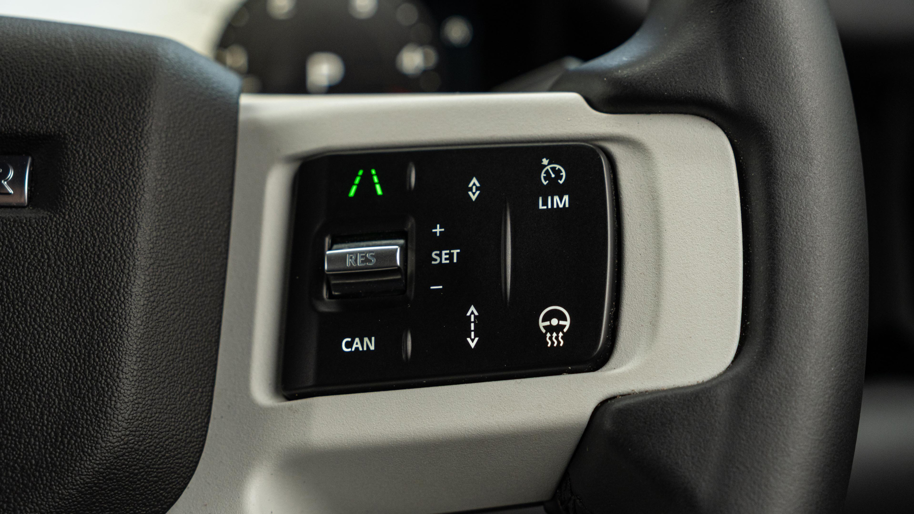 "Three spoke leather wrapped multifunction steering wheel"