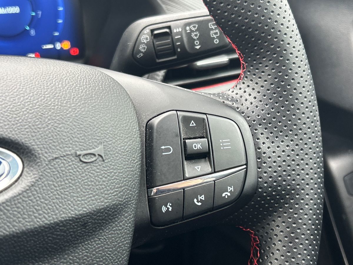 "features": "12.3\" Digital instrument cluster, Bluetooth system, Digital clock, Easy fuel capless refuelling system, Eco mode, Ford SYNC4 Nav with 13.2'' touchscreen, DAB, Emergency Assistance, Apple Carplay & Android Auto, B&O Premium Audio with 10 speakers, FordPass Connect, Lane keeping system - lane keeping alert and lane keeping aid, PAS, Rev counter, Selectable drive mode, Service interval indicator, Trip computer, Wireless charging pad, Sports tuned suspension, 2 USB ports, Auto headlamps (on/off), Body coloured door handles, Electrically operated front and rear windows with one touch opening and closing, Electrically operated heated power fold door mirrors with puddle lamp with side indicators, Front variable intermittent wipers with electric wash, Heated rear window, LED daytime running lamp, LED rear lamps, LED third brake light, Polished twin tailpipe, Privacy glass, Quickclear heated windscreen, Rain sensor, Rear side wing doors, Tailgate wash/wipe, Unique ST-Line grille, full bodystyling kit, and large body coloured rear roof spoiler, 3 rear headrests, 3 seat bench in 2nd row, Dual zone electronic air temperature control, Full sensico premium upholstery, Height adjustable front headrests, Isofix child seat preparation, Load through ski hatch, Manual 2-way passenger seat adjust, Power 4-way driver seat adjust, with power lumbar adjust, Reach + rake adjustable steering column, Single front passenger seat, ST-Line Design pack - Focus, Winter pack - Focus, 3x3 point rear seatbelts, ABS+Electronic Brake force Distribution, Auto hold function, Driver airbag, EDL traction control, Electronic parking brake, Electronic stability control, Front and rear seatbelt reminder, Front inertia reel height adjustable seatbelts with pre-tensioners, Front passenger airbag, Front side airbags, Passenger airbag deactivate switch, Post collision braking, Pre collision assist with autonomous emergency braking and pedestrian/cyclist detection, Remote/power child rear door locks, Side curtain airbags, Three rear inertia reel lap/diagonal seatbelts, Tyre pressure monitoring system, Keyless entry and keyless start, MyKey system, Remote central locking & engine immobiliser, Thatcham alarm with power door dead locks, 18\" 5x3 spoke pearl grey high gloss machined finish alloy wheels with mini spare wheel, ",