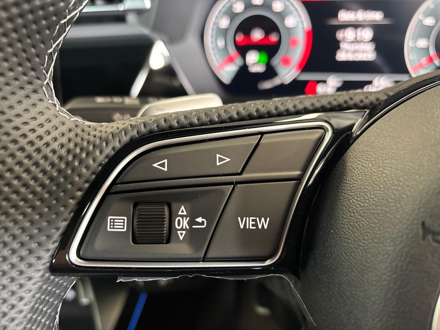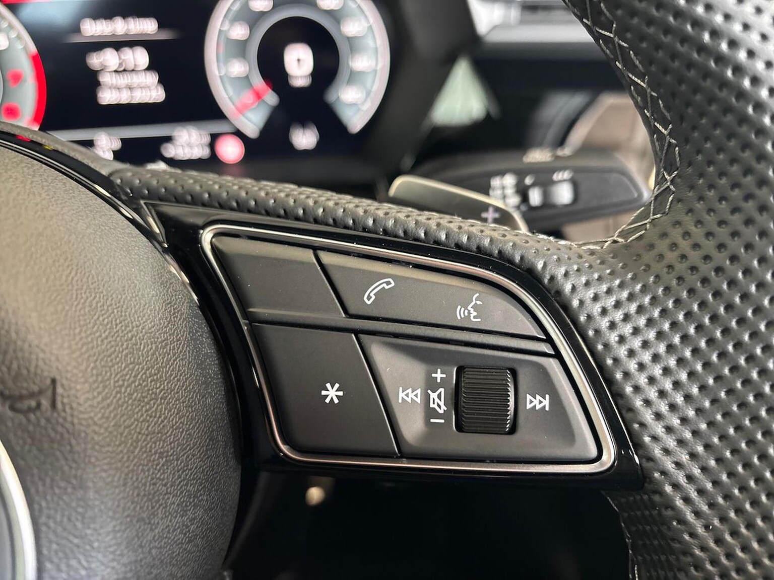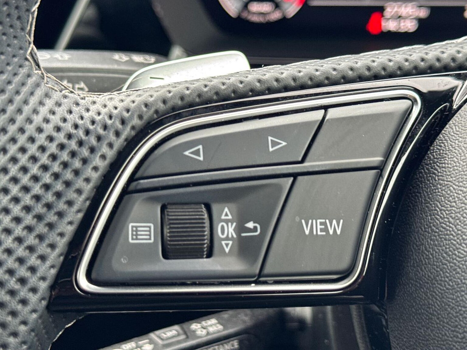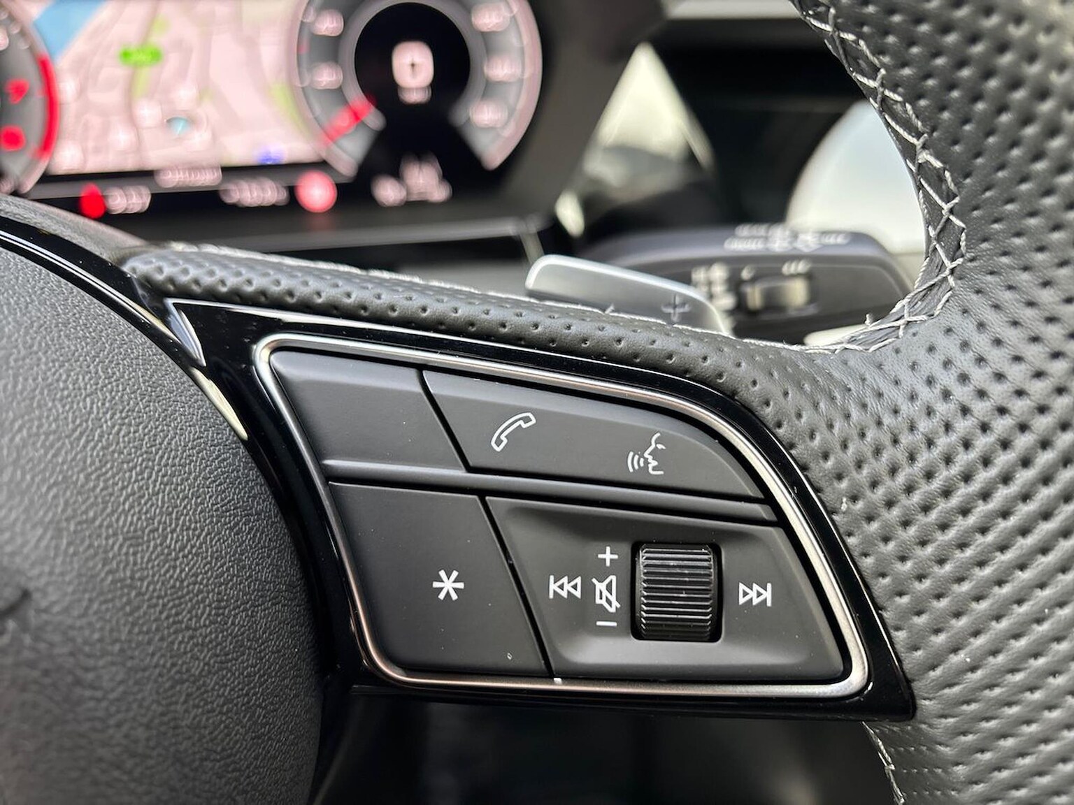 "3 spoke flat bottomed multi-function leather sport steering wheel with gear shift paddles",