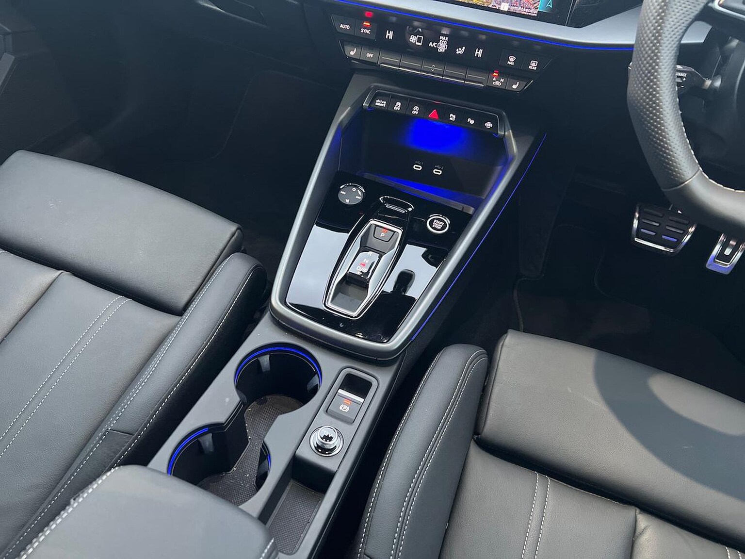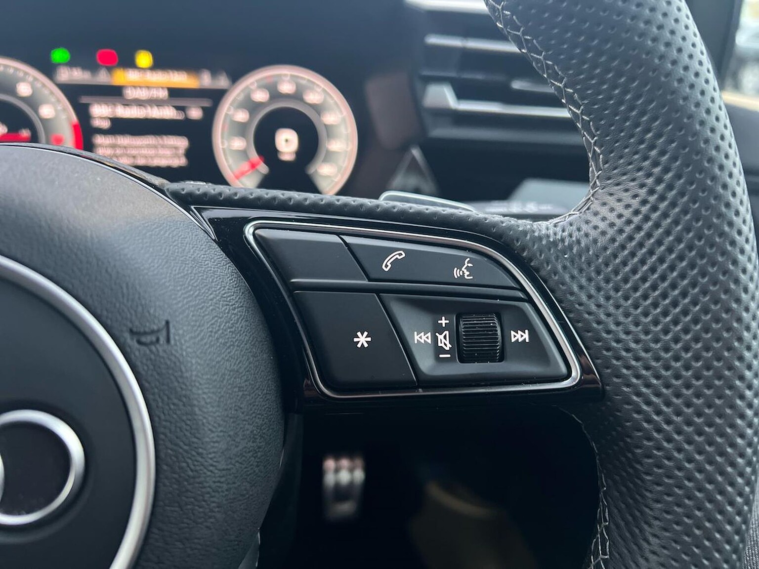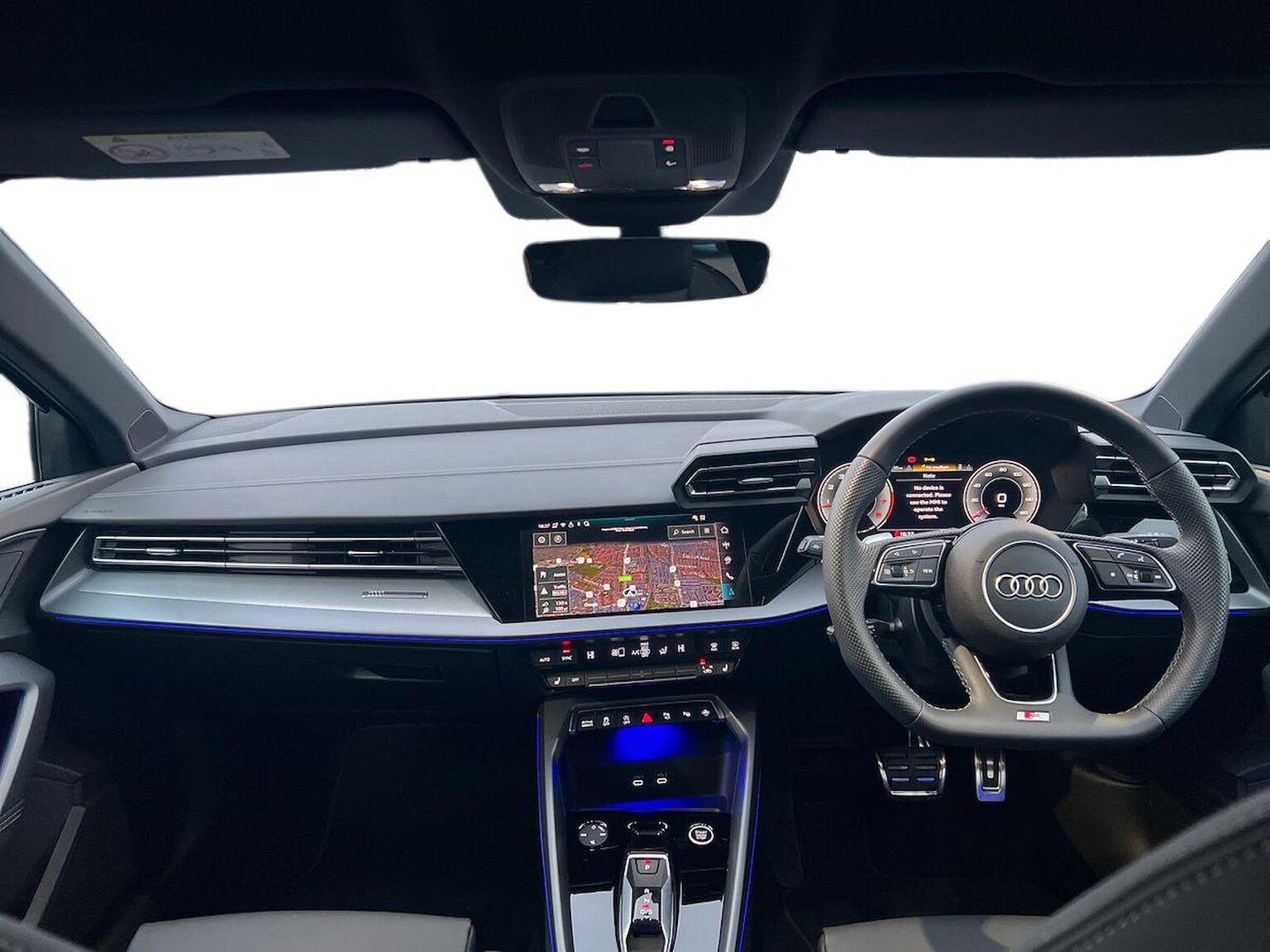 "3 spoke flat bottomed multi-function leather sport steering wheel with gear shift paddles",