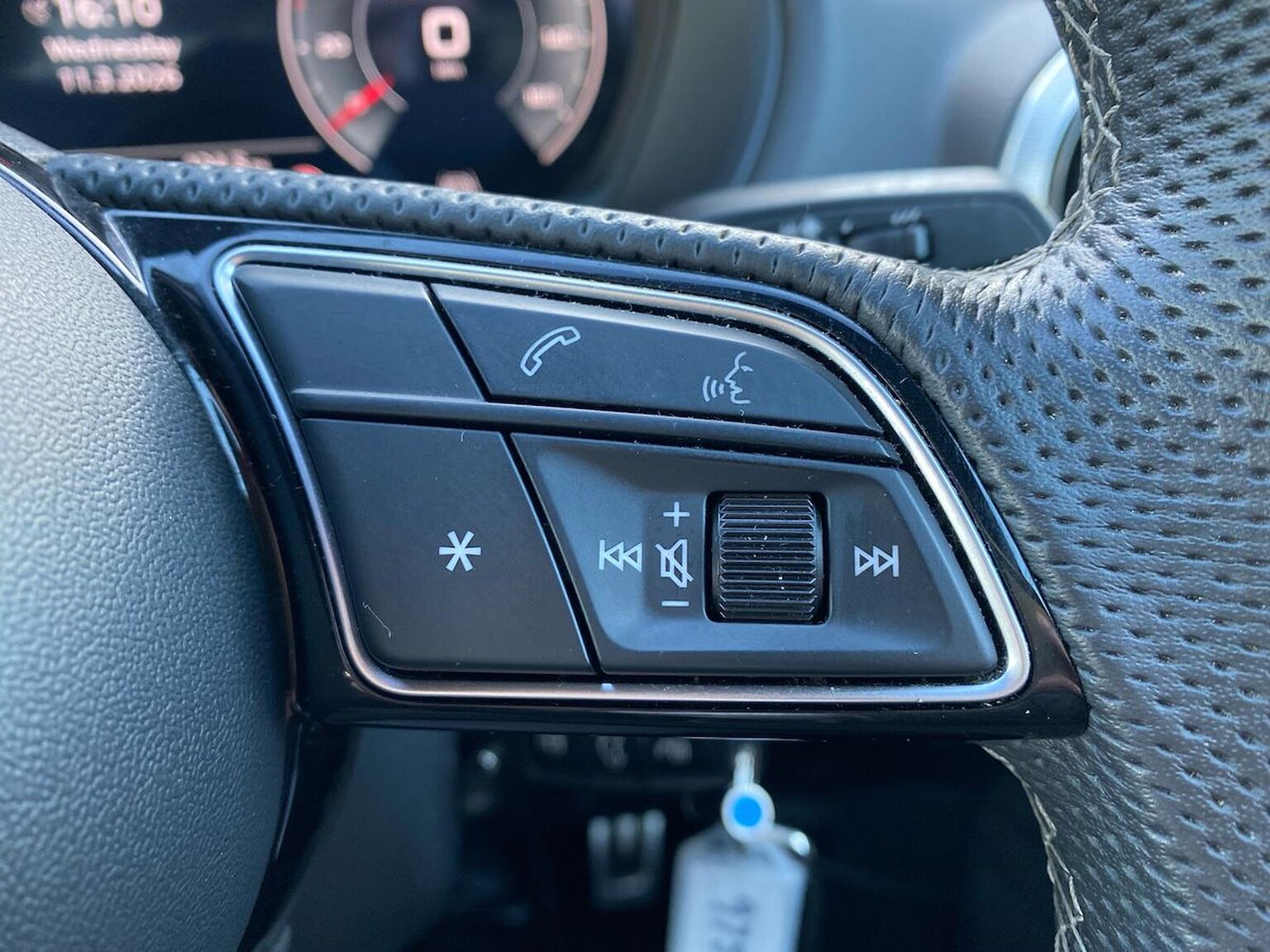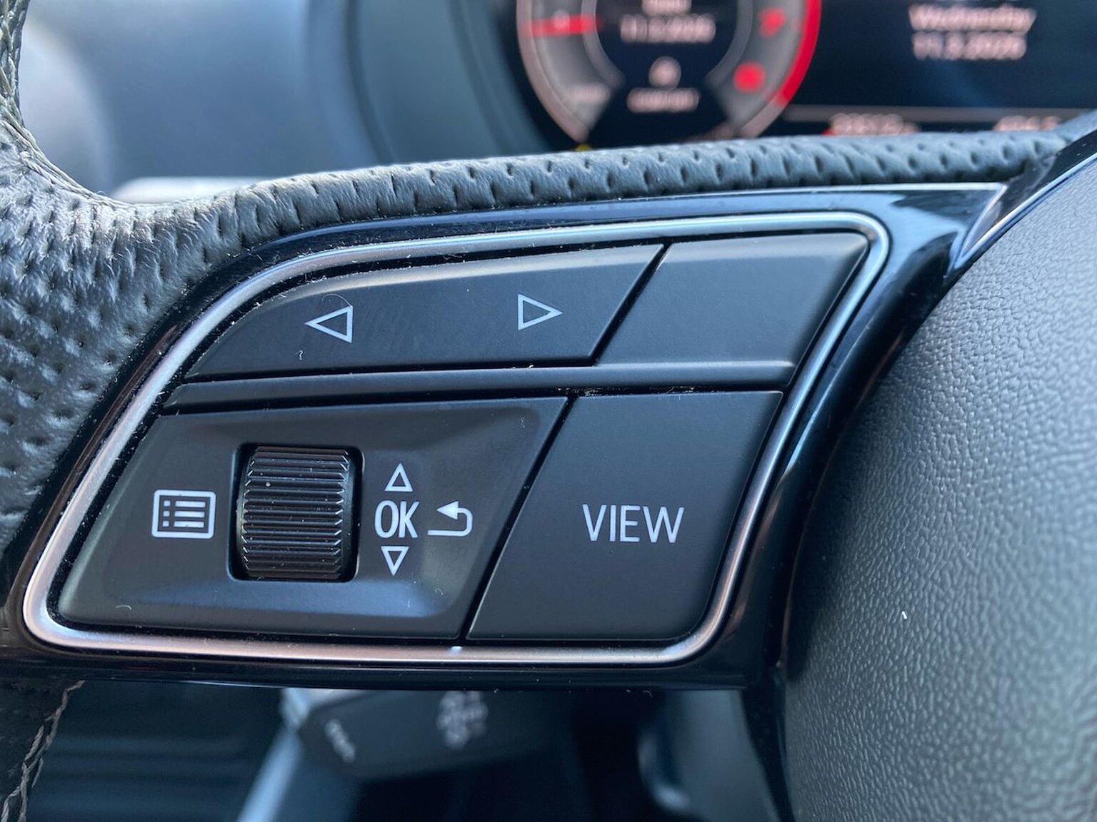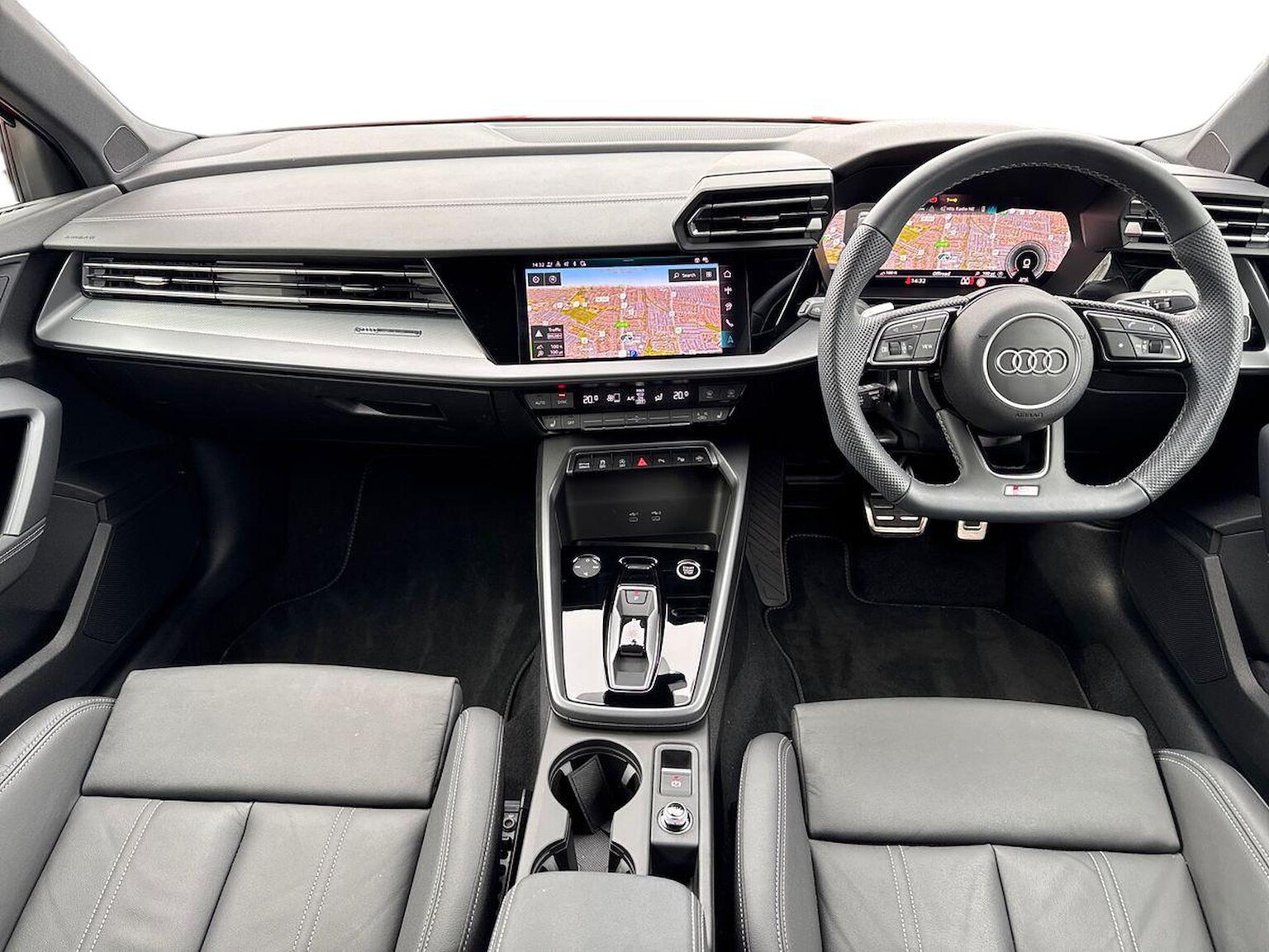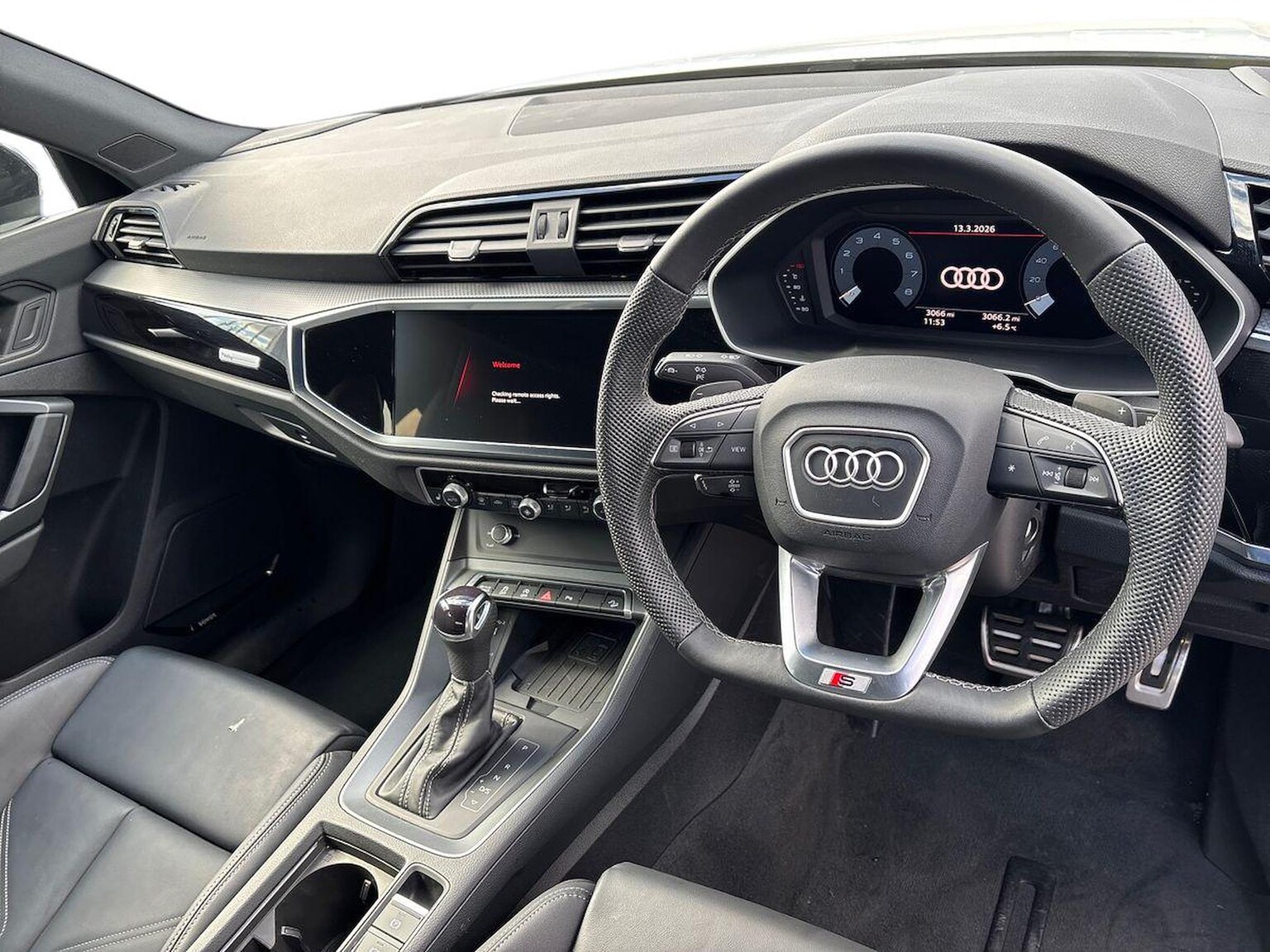 "3 spoke flat bottomed multi-function leather sport steering wheel with gear shift paddles",