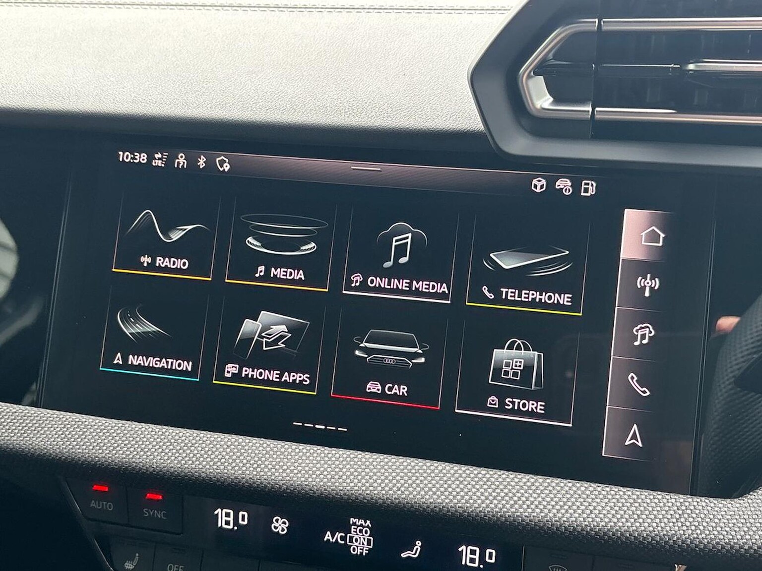"features": "Adjustable speed limiter, Audi drive select, Audi smartphone interface with app store includes wireless Apple carplay, Android auto and Amazon alexa integration, Audi virtual cockpit plus - 12.3\" full HD resolution dynamic digital instrument cluster, Automatic start/stop system with recuperation, Bluetooth interface, Camera based traffic sign recognition, Collision avoidance assistant, Cruise control, Distraction and Fatigue warning, e-Call (emergency call), Electromechanical power speed sensitive steering, Emergency assist, Lane departure warning system, MMI Navigation Plus with high resolution 10.1\" colour touch screen display, Park Assist with parking system Plus, Service indicator, Trip computer, Voice control system with natural language interaction, Diesel particulate filter, Sports suspension, Audi Phonebox light with wireless charging, Audi sound system - 10 loudspeakers including centre loudspeaker and subwoofer, DAB Digital radio, USB ports with charging function in the rear, Acoustic glass windscreen, All weather light, Anthracite grey Audi rings (front and rear), Audi beam uses LEDs to project the Audi logo onto the ground as you exit your A3, Auto dimming frameless rear view mirror, Automatic dynamic range control, Black accents front and rear bumpers, Black accents in the area of the Audi single frame grille, Black accents window trims strips, Dipped beam, main beam, position light and turning light, Electrically adjustable/heated/folding/auto dimming door mirrors with integrated LED indications + kerb view function for passenger side, Exterior model badging, Front and rear side air inlets in grained matt black with dark liquid chrome frame, Front electric windows, Heat insulating glass windscreen, Illuminated door sills with aluminium inserts at the front with S logo, Intersection light, LED 3rd brake light, LED brake lights, LED daytime running x3, LED headlights with LED rear lights and dynamic rear indicators, LED rear number plate lights, LED reverse light, LED tail lights, Light and rain sensors, Manoeuvring light, Motorway light, Privacy glass - dark tinted rear window, rear door and side windows, Rear boot, Rear diffuser and grill in grained matt black with inlay in dark liquid chrome, Rear electric windows, Rear side wing doors, Static cornering light, 12V socket and storage compartment in front centre console, 3 seat bench in 2nd row, 3 spoke flat bottomed leather multifunction sport steering wheel with gear shift paddles, 3-zone deluxe automatic air conditioning, 4 way electrically adjustable lumbar support for driver and front passenger, 40/20/40 split folding rear seat bench, Black cloth headlining, Black front and rear floor mats, Front and rear centre armrest in artificial leather with contrasting stitching on armrests and instrument panel, Front and rear headrests, Heated front seats, Height and reach adjustable steering wheel, Manual boot compartment lid, Manually adjustable front seats, Rear centre armrest with cupholder, S badging on the steering wheel, Seat side bolsters, Single front passenger seat, Stainless steel pedals and front footrest in black, Twin leather upholstery with front sports seats S embossed logo, Aluminium interior elements pack - A3, 3x3 point rear seat belts, Driver and front passenger airbag with passenger airbag deactivation, Electronic Stabilisation Control (ESC) including ABS, ASR and EDL, First aid kit with warning triangle and 2 safety vests, Front side airbags with head airbags and interaction airbag, Hill hold assist, Pre-sense front with pedestrian and cyclist detection, Seatbelt monitoring, Tyre pressure loss indicator, Anti theft alarm, Anti-theft wheel bolts, Electronically operated child locks, Immobiliser, Remote central locking with safelock, Black dashboard, ",