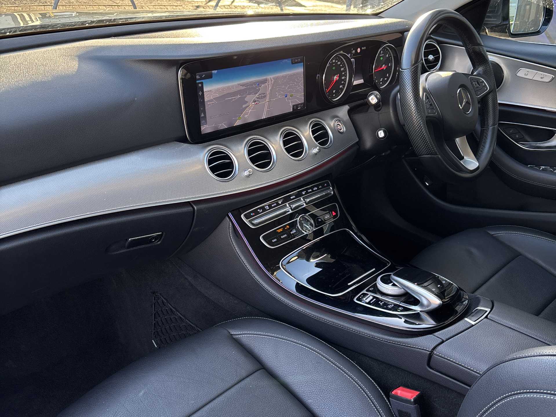 "features": "Active park assist with parktronic system, Analogue clock, Attention assist, Bluetooth interface for hands free telephone, Boot release from drivers seat, Brake wear warning light, DYNAMIC SELECT with a choice of driving modes (ECO, Comfort, Sport, Sport+ and Individual), Multi function trip computer, Outside temperature display, Park assist pilot with front and rear park assist, Remote boot release, Service indicator (ASSYST), Speed sensitive power steering, Diesel particulate filter, DAB Digital radio, Media interface, Steering wheel mounted audio controls, USB/aux input socket, Adaptive brake lights, Aerial integrated in rear window, Aluminium beltline and window surround, Body colour bumpers, Body colour door handles, Body colour door mirrors, Electrically adjustable and heated door mirrors, Heated windscreen wash system, LED Headlights, Polished aluminium upper window surround, Polished aluminium waistline, Radiator grille with integral star and 2 louvres in matt iridium silver with chrome trim, Rain sensor windscreen wipers, 3 spoke nappa leather steering wheel, Ambient lighting, Auto Mercedes-Benz child seat recognition sensor, Electric seat adjustment, Electric seat back adjustment, Front and rear door pockets, Front centre armrest with storage compartment, Front door sills with Mercedes Benz lettering, Heated front seats, Height/reach adjust steering wheel, Interior rear light/integral reading lights, Isofix rear child seat fastenings, Leather upholstery, Lockable/illuminated air conditioned glovebox, Multi function steering wheel, Sports pedals with stainless steel surfaces and rubber studs, Storage compartment with 12V socket in centre console, Sunvisors with illuminated vanity mirrors, Interior lighting pack - E Class, Mirror pack - E Class, 3x3 point rear seatbelts, Active bonnet, Active brake assist, Childproof rear door locks, Driver and passenger side/thorax airbags, Driver/front passenger airbag, Drivers knee airbag, Electronic parking brake, Hill hold assist, Hill start assist, Pre-Safe anticipatory safety system, Seat occupancy sensor, Seatbelt warning, Tyre pressure monitoring system, Warning triangle and first aid kit, Window airbags, Alarm system/interior protection/immobiliser, Chrome surround in electric key, Keyless start, High gloss black centre console, ",