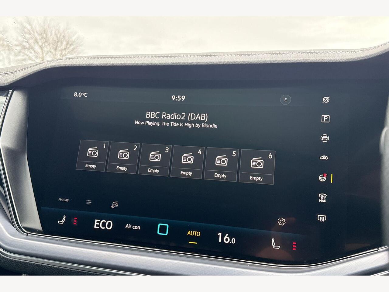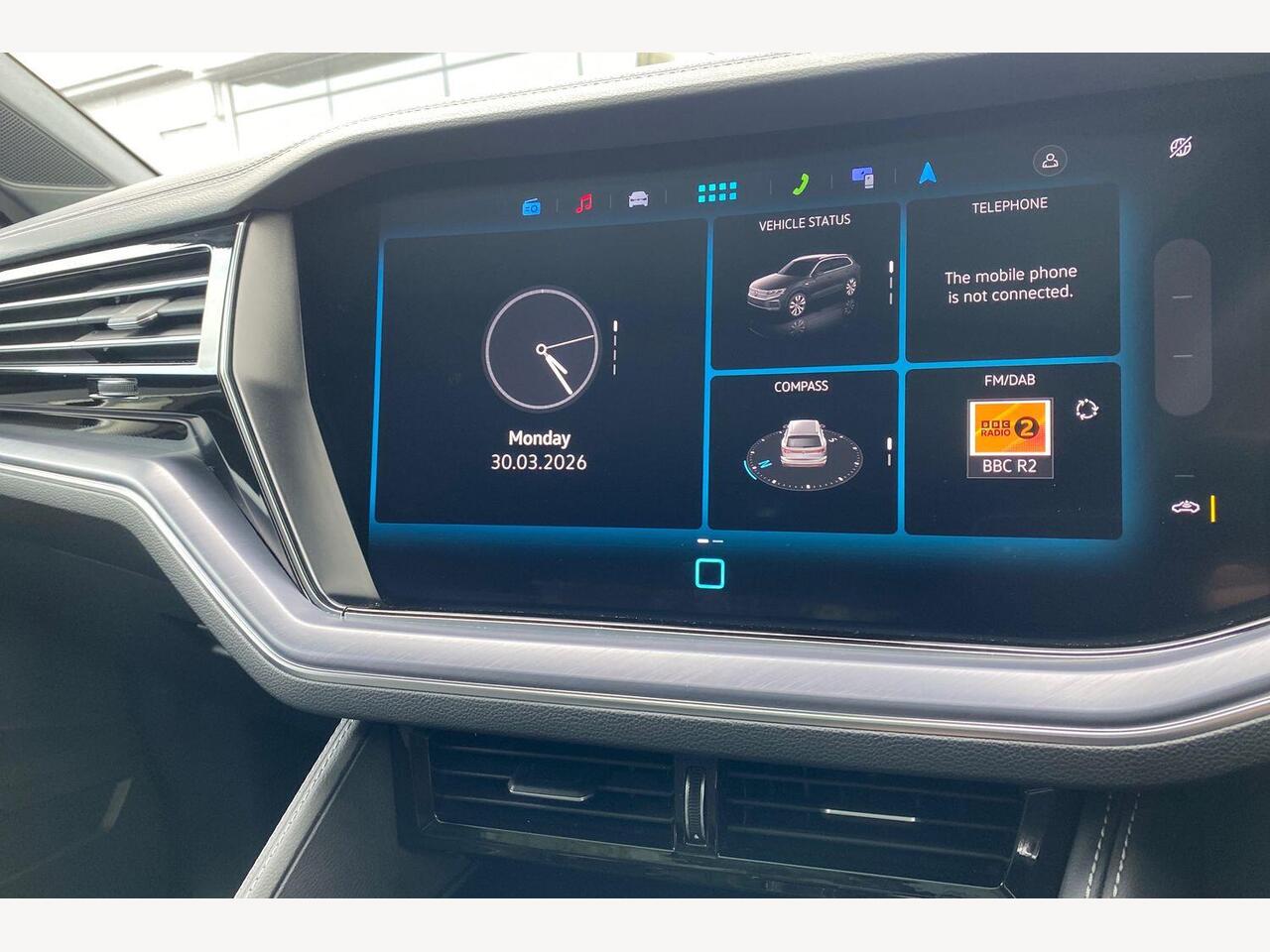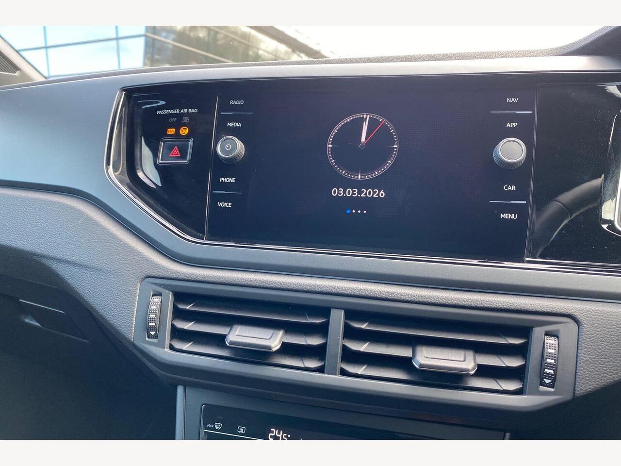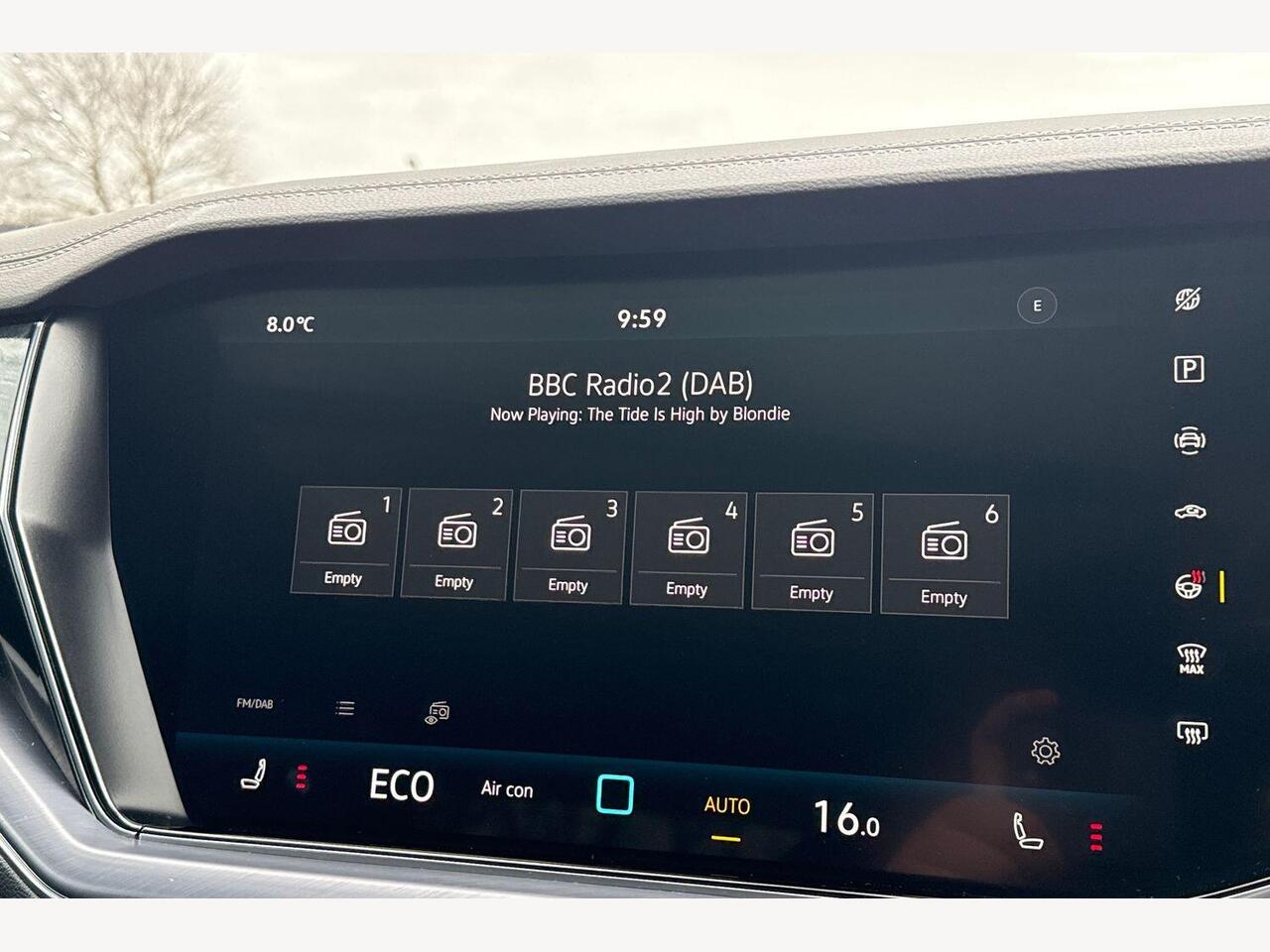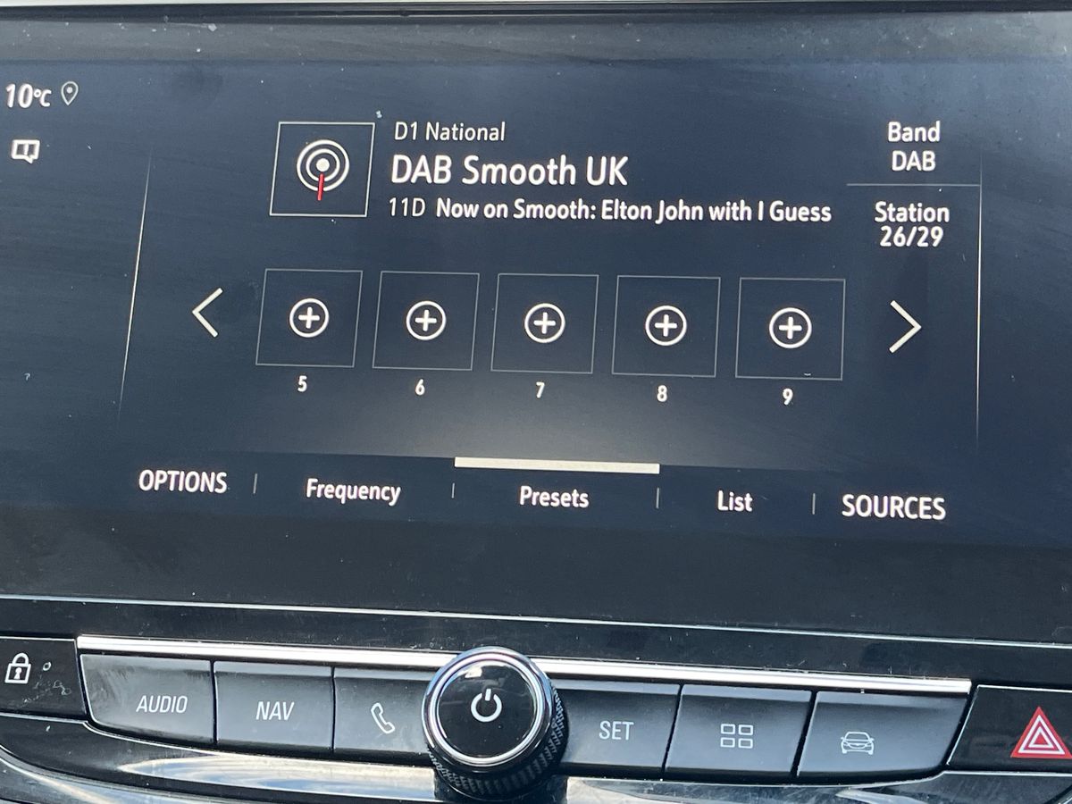 "Central facia display with digital clock, outside air temperature and audio information",