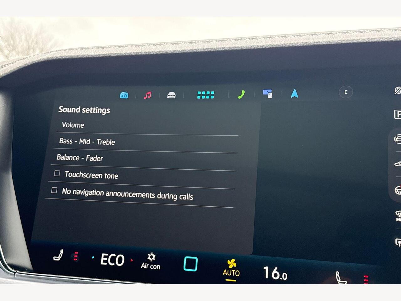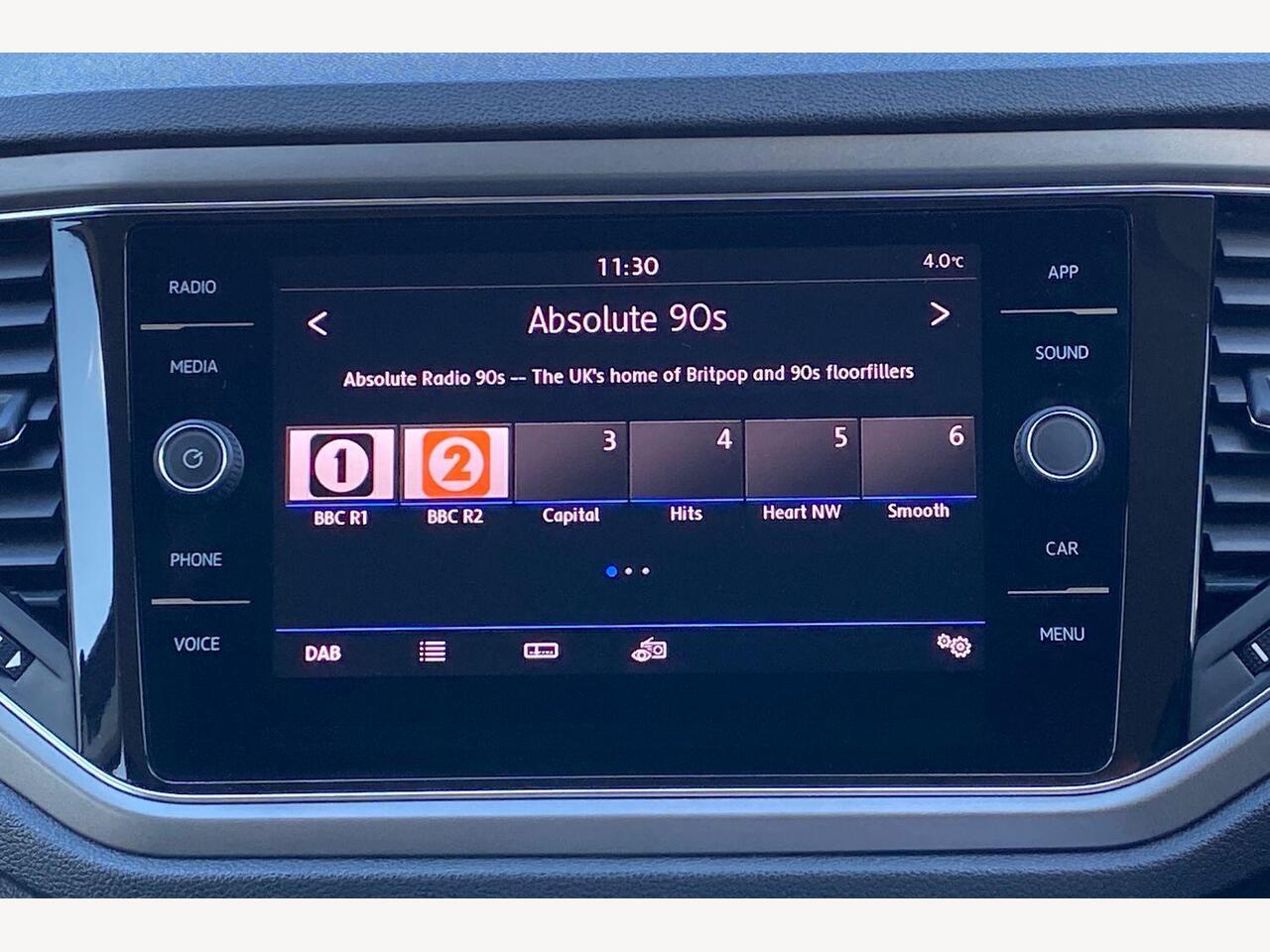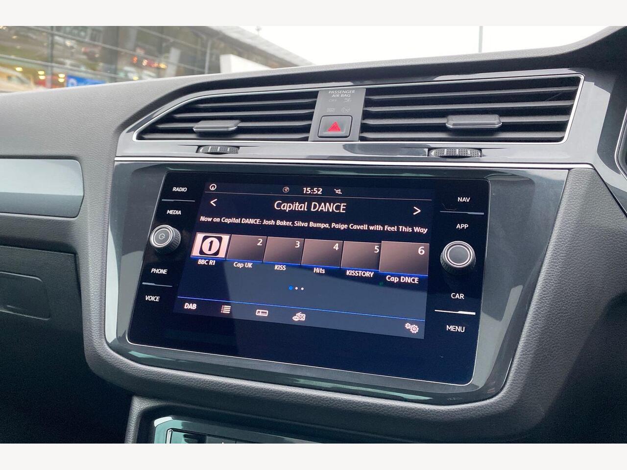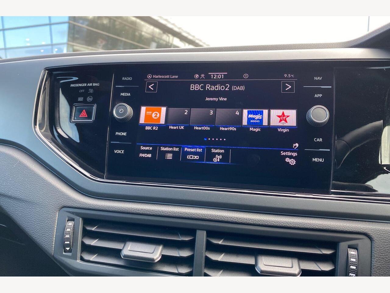 "Central facia display with digital clock, outside air temperature and audio information",