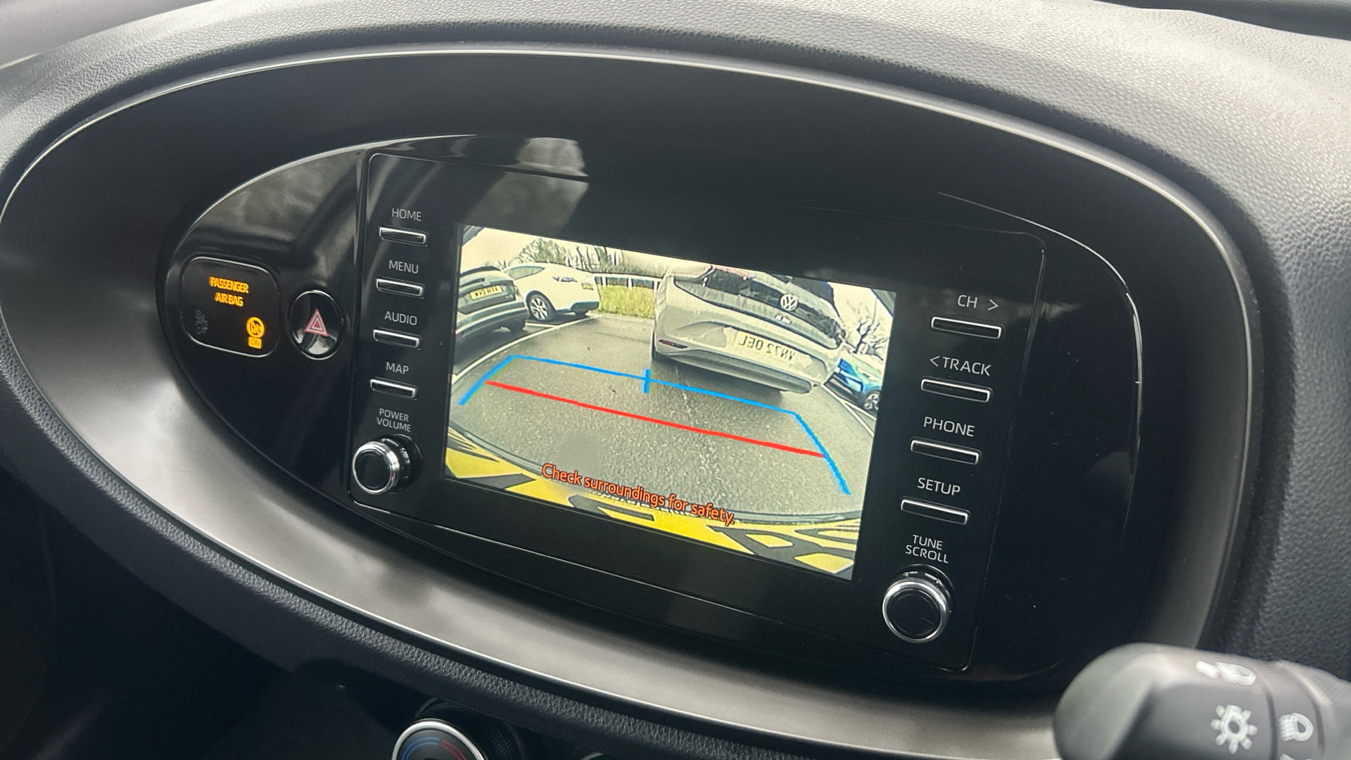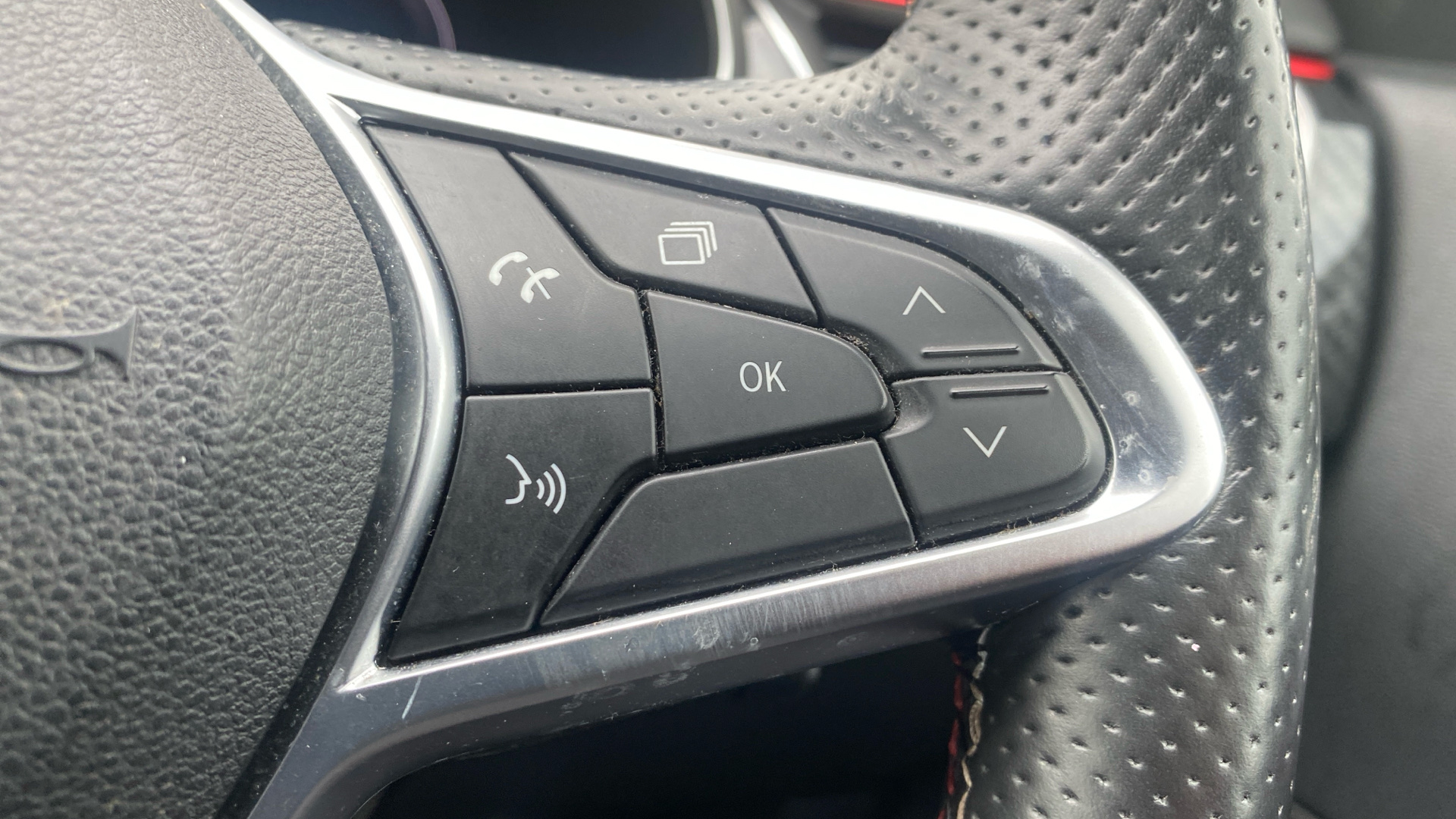 "Infotainment remote controls right side of steering wheel, telephone buttons on left side",