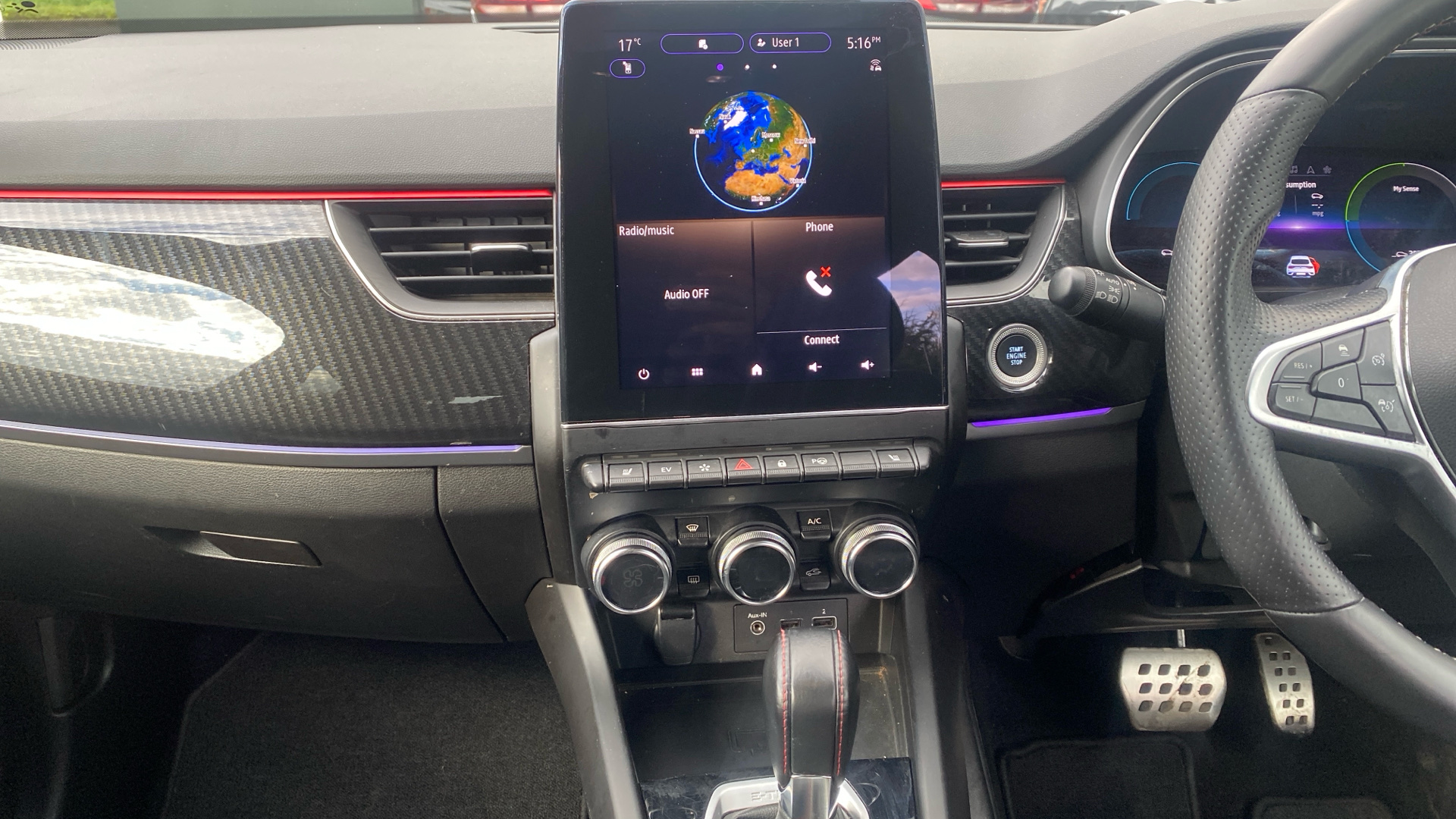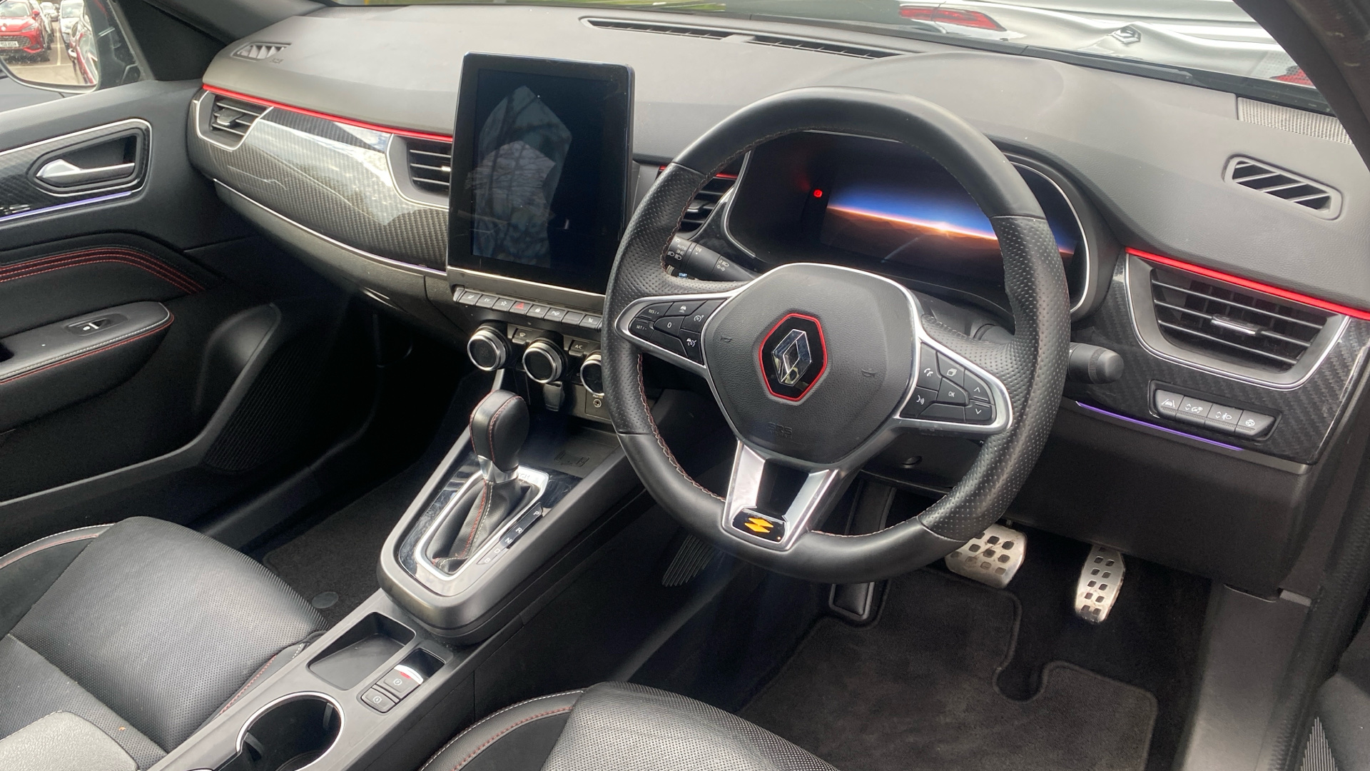 "features": "7\" TFT Driver information display, Blind spot warning, Bluetooth system, EASY LINK 9.3\" portrait touchscreen with navigation, Google search and traffic information, eCall emergency call system, Eco mode, EV button to activate pure mode, Front and rear parking sensors, Gear change indicator, Lane departure warning, Lane keep assist, Multi-sense - 3 driving modes and 8 ambient lighting, Rear cross traffic alert, Rear view camera, Renault automatic emergency assist, Smartphone integration compatible with Apple CarPlay and Android Auto, Traffic sign recognition with over speed prevention, Trip computer, Variable assistance electric power steering, Wireless phone charger, DAB radio, USB port, 3rd brake light, Auto dimming rear view mirror, Automatic headlights, Automatic high / low beam, Automatic windscreen wipers with rain sensor, Black side door protection with gun metal insert, Body coloured bumpers, C-shaped LED front signature lighting, Chrome decopart on wing (fender molding) with R.S. Line badge, Double chromed exhaust tailpipes elements, Extra tinted rear windows and tailgate, Frameless rear view mirror, Front and rear electric windows, Front bumper with F1 blade and honeycomb front grille, Front driver window with one touch facility and anti-pinch function, Front grille with chrome on upper part, Full LED headlights, Glossy black door mirror and lower window lining, Gun Metal front and rear skid plates, Heated rear window, R.S. Line badges on front wing and hatch door, Rain sensor, Rear windscreen wiper, Shiny black shark fin antenna, Side mirrors adjustable electrically, electrically foldable, with defrosting and temperature sensor, automatically foldable at vehicle closure, 3 seat bench in 2nd row, 60:40 split and fixed base rear seats, Aluminium pedals, Automatic climate control with combined filter, humidity sensor and AQS, Black interior roof lining, Carbon style dashboard, Central console with storage, Driver's seat height adjustment, Electrically adjustable front seats, Front and rear head restraints, Height and reach adjustable steering wheel, ISOFIX child seat fixing points on rear outermost seats, LED front and rear roof lights, Passenger seat height adjuster, R.S. line black suede-leather upholstery with red/grey stiching, R.S. Line perforated leather steering wheel with red/black harmony and R.S. Line badge, Rear air vents, Red inserts on air vents, Single front passenger seat, Parking Pack - Hands-free parking & flank protection - Arkana, Winter pack - Arkana, 3x3 point rear seat belts, ABS+EBA, Active emergency braking system, B Brake Mode - One pedal driving with increased regenerative braking, Distance warning alert, Driver airbag, Driver and passenger front and side airbag deactivation, Driver and passenger side airbags, Driver height adjustable seat belt, Electronic parking brake with auto hold, ESC (Electronic Stability Control), Front and rear no seatbelt warning sound, Front curtain airbags, Front head airbags, Hill start assist, Passenger airbag, Tyre pressure warning light, Anti drill door locks and locking fuel cap, Central door locking, Deadlocking system, Hands free keycard with Keyless access and start, RAID (Renault Anti-Intruder Device) automatic door locking, Rear side wing door and window child locking function (front driver door control panel), Superlocking, Thatcham alarm, 18\" Silverstone diamond alloy wheels with red inserts, ",