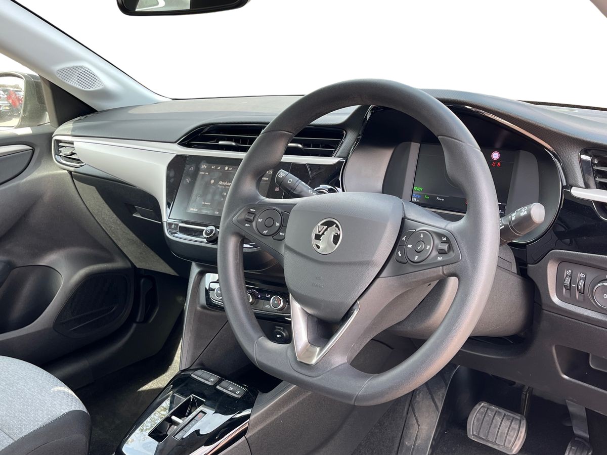 "features": "7 inch digital instrument cluster display, Auto tele unit 3S vehicle communication system, Breakdown call (b-call), Central facia display with digital clock, outside air temperature and audio information, Cruise control with intelligent speed limiter, Drive modes (sport, normal, eco), Driver drowsiness alert system, E-call, Front camera system, Instrumentation - Speedometer, rev counter, low fuel gauge warning light + water temperature gauge warning light, Lane departure warning, Lane keep assist, Lights on audible warning, Multi function trip computer, RDS with traffic programme, Rear parking distance sensors, Service indicator, Smartphone projection, Speed sensitive power steering, Speed sign recognition, Vauxhall connect box, Wireless Apple CarPlay/Android Auto, 11kW 3-Phase On Board Charger, Mode 3 charging cable 22kW, Under body shield for aero, AM/FM stereo radio, Bluetooth A2DP audio streaming, DAB Digital radio, Multimedia with 10-inch touchscreen, Six speakers, Steering wheel audio, phone and cruise controls, USB type C port, 3rd brake light, Automatic headlight control system, Black DLO, Black door mirror housings, Black lower side window mouldings, Body colour door handles, Body colour front and rear bumpers, Body colour roof and A pillar, Bonnet/headlight/wiper structure, Chrome-effect Griffin logo and Black vizor frame, Corsa lettering in tailgate, Electrically operated front and rear windows with safety auto reverse and one touch up/down facility, Electrochromic automatic anti-dazzle rear view mirror, Flexible roof mounted aerial, Glazed tailgate and heated rear window with wash/wipe facility, Hazard warning lights, Headlamps for left side traffic, High beam assist, LED daytime running lights, LED Headlights, Rain sensitive windscreen wipers, Rear fog lamp, Rear reversing lights, Rear side wing doors, Rear wiper, Solar heat absorbing windscreen and windows, Two speed windscreen wipers with variable intermittent wipe, Windscreen and side window demist vents, 12V power sockets, 3 bench rear seats in 2nd row, 3 spoke flat bottomed leather effect steering wheel with satin chrome effect bezel, 4 speed fan with illuminated controls, 4 way manual co-driver seat reach fore/aft, backrest upright/recline, 6 way manual adjustable driver seat height up/down, reach fore/aft, backrest upright/recline, 60/40 split folding rear seat, Cabin particulate filter - removes dust, airborne particles and pollen, Cloth upholstery, Comfort front seats, Driver/passenger sunvisors with vanity mirrors + covers, Electronic climate control (ECC), Four adjustable facia vents, Front cupholder, Front headrests, Height adjustable head restraints, Illuminated glovebox with lid, Interior courtesy light, Internal chrome door handles, LED boot light, Polyurethane gear knob/lever, Reach and rake adjustable steering column, Rear cupholder, Rear headrests, Right hand drive (RHD), Single dome lamp with dual front reading lamps, Single front passenger seat, Two litre open door pockets, 3 rear 3 point seatbelts, Anti-lock braking system (ABS), Automatic emergency braking with pedestrian detection, Cornering brake control, Deactivation switch for front passenger's airbag, Drag torque control, Driver and front passenger airbags, front seat side impact airbags, full size curtain airbags, EBD - Electronic brakeforce distribution, Electrical child lock system in rear door latch, Electronic parking brake, Electronic Stability Programme (ESP), Emergency brake assist, Forward collision alert, Front seatbelt unfastened audible warning and warning light, Hill hold and start system, ISOFIX child seat mountings incorporating top tether anchor points located on second row rear seats, Seatbelt pretensioners, Single tone horn, Straight line stability control, Traction control, Tyre deflation detection system, Tyre pressure monitoring system, 2 keys one folding with integral remote, Electronically protected audio equipment, Engine deadlock and immobiliser, Freewheeling door locks, Keyless Start, Locking wheel nuts, Remote control central locking, Steering column lock, Visible vehicle identification number, Akoya grey fascia with high gloss black insert, 16\" diamond-cut hi-gloss black alloy wheels, Tyre repair kit, ",