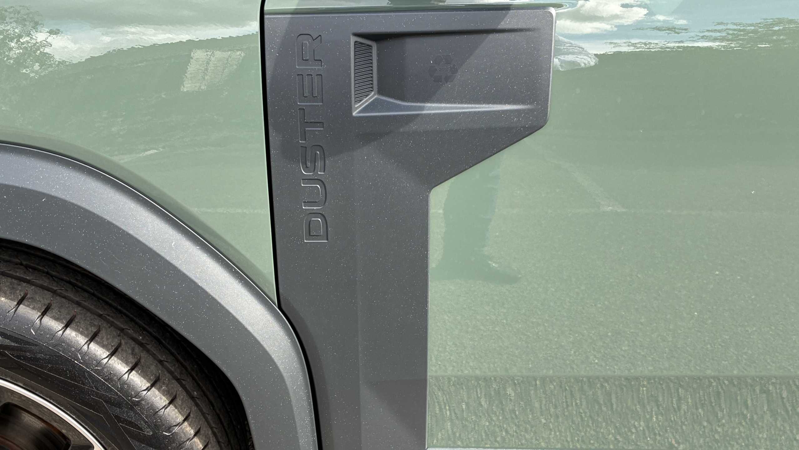 "Dark tinted rear windows and side windows with chrome detail",