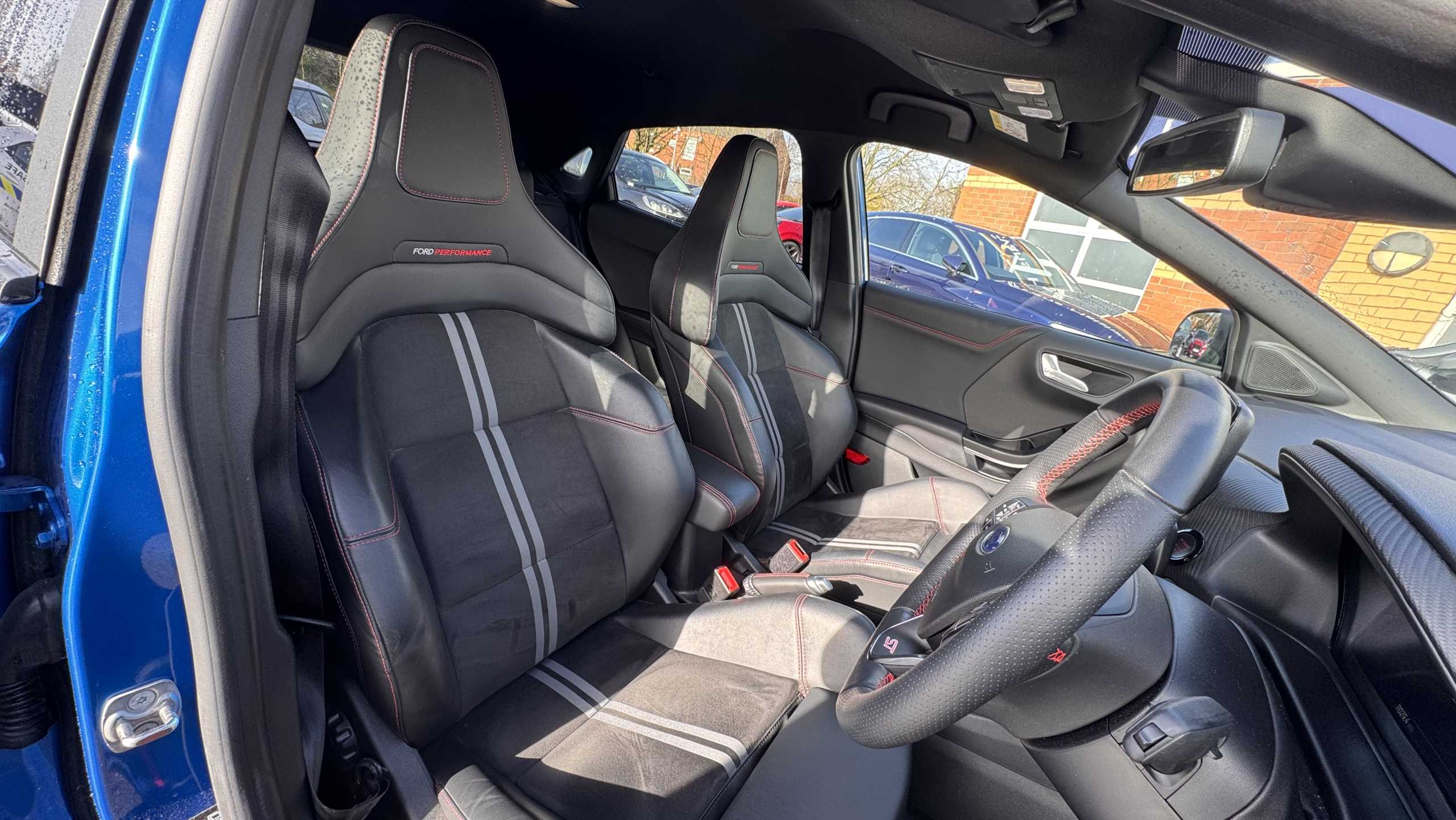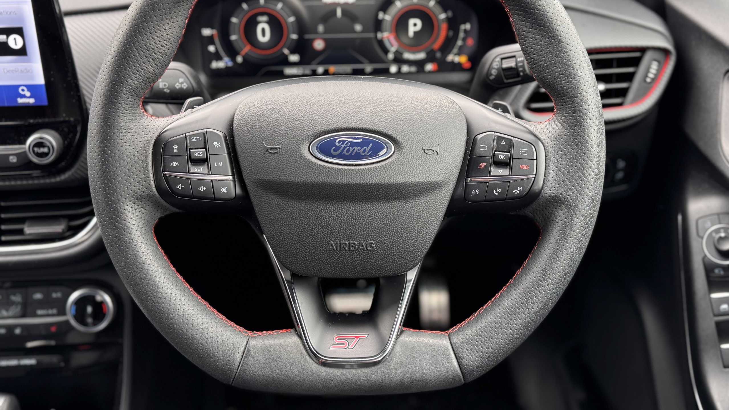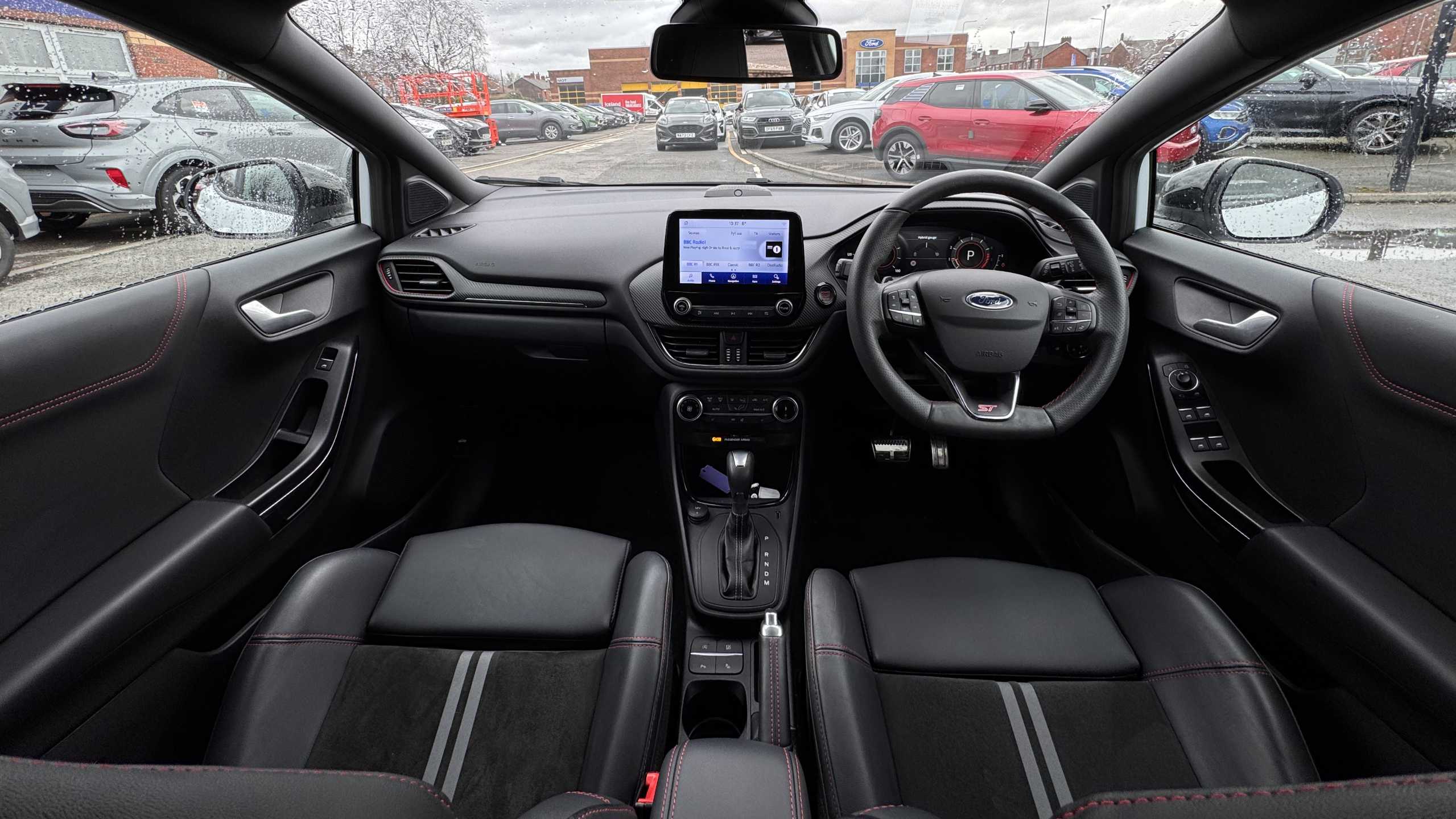 "features": "Cruise control with Intelligent speed assist, Driver impairment monitor, Emergency call service, Ford easy fuel, Front and rear parking sensors, Full digital 12.3\" instrument cluster, Lane keeping aid with lane departure warning, Power assist steering, Selectable drive modes (normal, sport, eco, track), Speed sign recognition, Engine sound enhancer, ST suspension, Automatic headlights with auto high beam, Automatic rain sensing wipers, Dual chrome exhaust, Fixed LED signature headlamps, Front fog lamps, LED daytime running lights, LED rear lamps, Power foldable heated door mirrors with puddle lamps and puma logo protection, Privacy glass to side rear windows and tailgate glass, Quickclear heated windscreen, Rear side wing doors, Rear wiper, ST scuff plates, Third brake light, Unique ST body styling kit including contrast black roof, large rear spoiler and wing mirrors, plus Ford Performance embossed splitter, 3 seat bench in 2nd row, Alloy sports pedals, Centre console with armrest and stowage, Ford megabox extended bootspace, Ford Performance sensico partial premium leather upholstery with metal grey stitching, Front and rear floor mats, Front and rear head restraints, Manual 6 way driver seat adjust with lumbar adjustment, Manual 6 way passenger seat with lumbar seat adjustment, Single front passenger seat, ST flat bottomed steering wheel with metal grey stitching, ST logo projection, Unique ST gear shift knob, Wireless charging pad with electronic air temperature control (EATC), B&O Premium Audio system + Ford SYNC 3 navigation pack - Puma, Winter pack - Puma, 3 rear seatbelts, Child safety lock, Electronic stability control (ESC) and hill start assist, Pedestrian/cyclist detection & post-collision braking, Pre collision assist system, Red brake calipers, Tyre pressure monitoring system (TPMS), Keyless entry and power start button, Thatcham alarm, Carbon look interior deco spears, 19\" 5 Spoke magnetite dark finished alloy wheel, Tyre inflation kit, ",