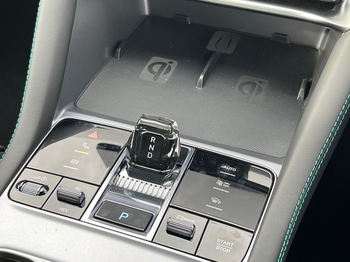 "Leather wrapped gear shift knob",
