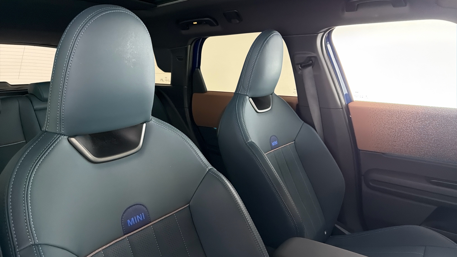 "Dark roof headlining, ceiling and pillars",