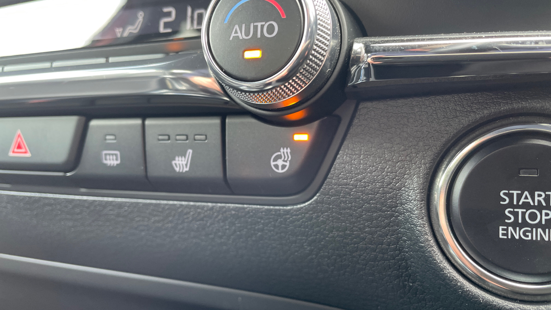 "Chrome interior trim accents with steering wheel centre bezel, surround of engine start / stop button and glove box handle",