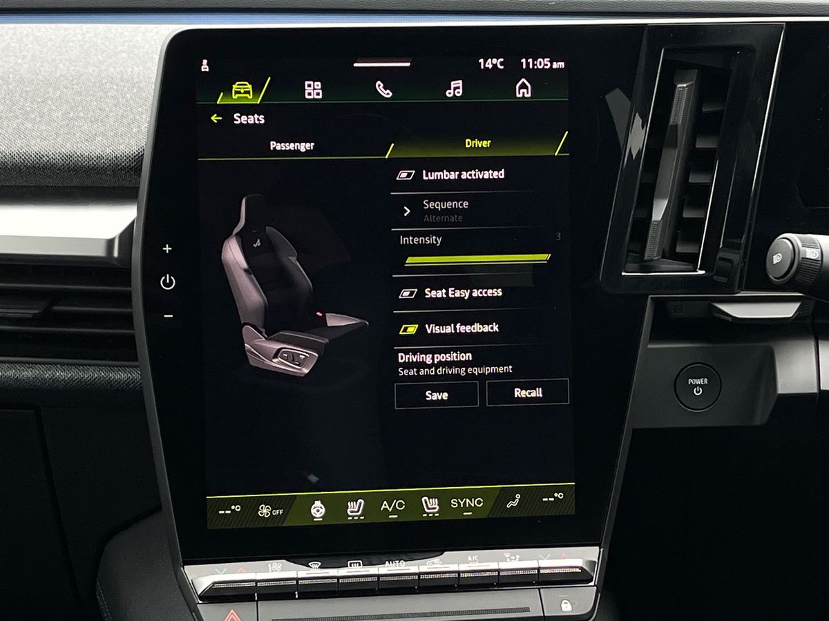 "Driver seat power slide, recline, height and lumbar adjustment with driver door mirror memory",