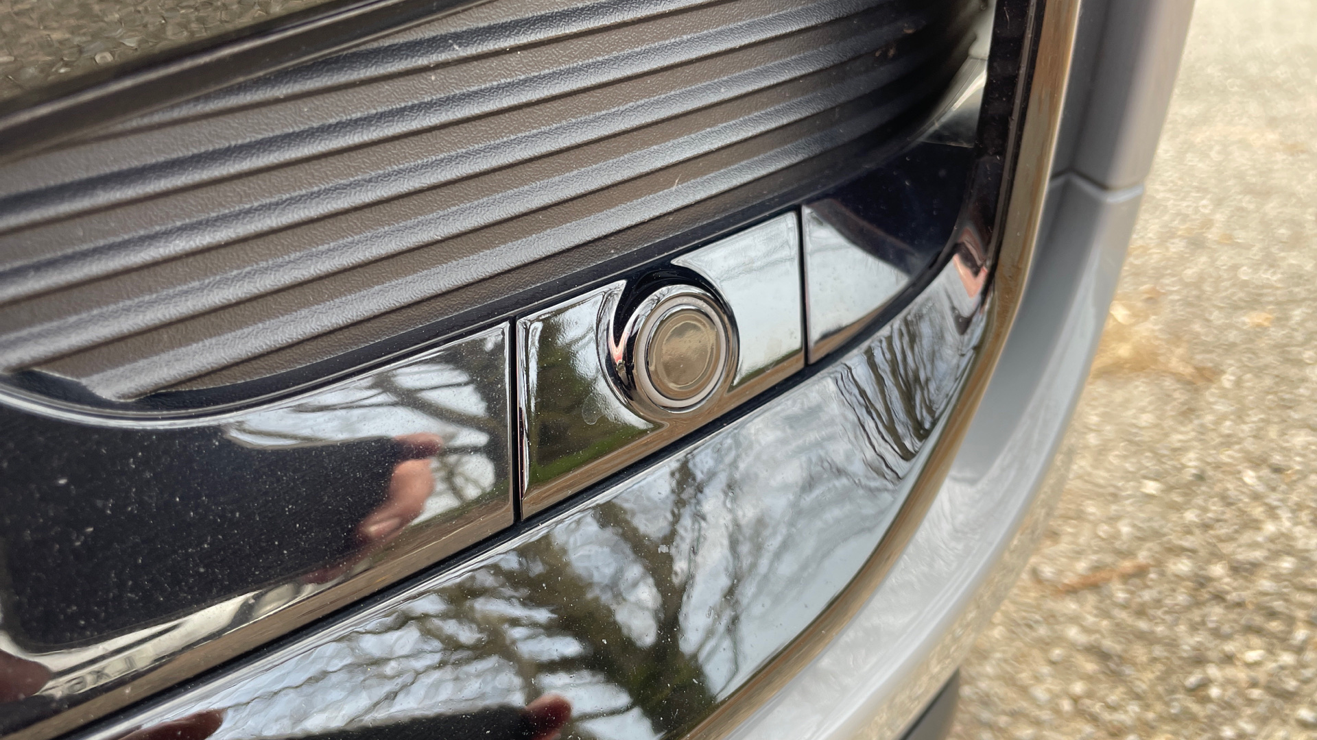 "Black panel radiator grille with twin blade design in chrome",