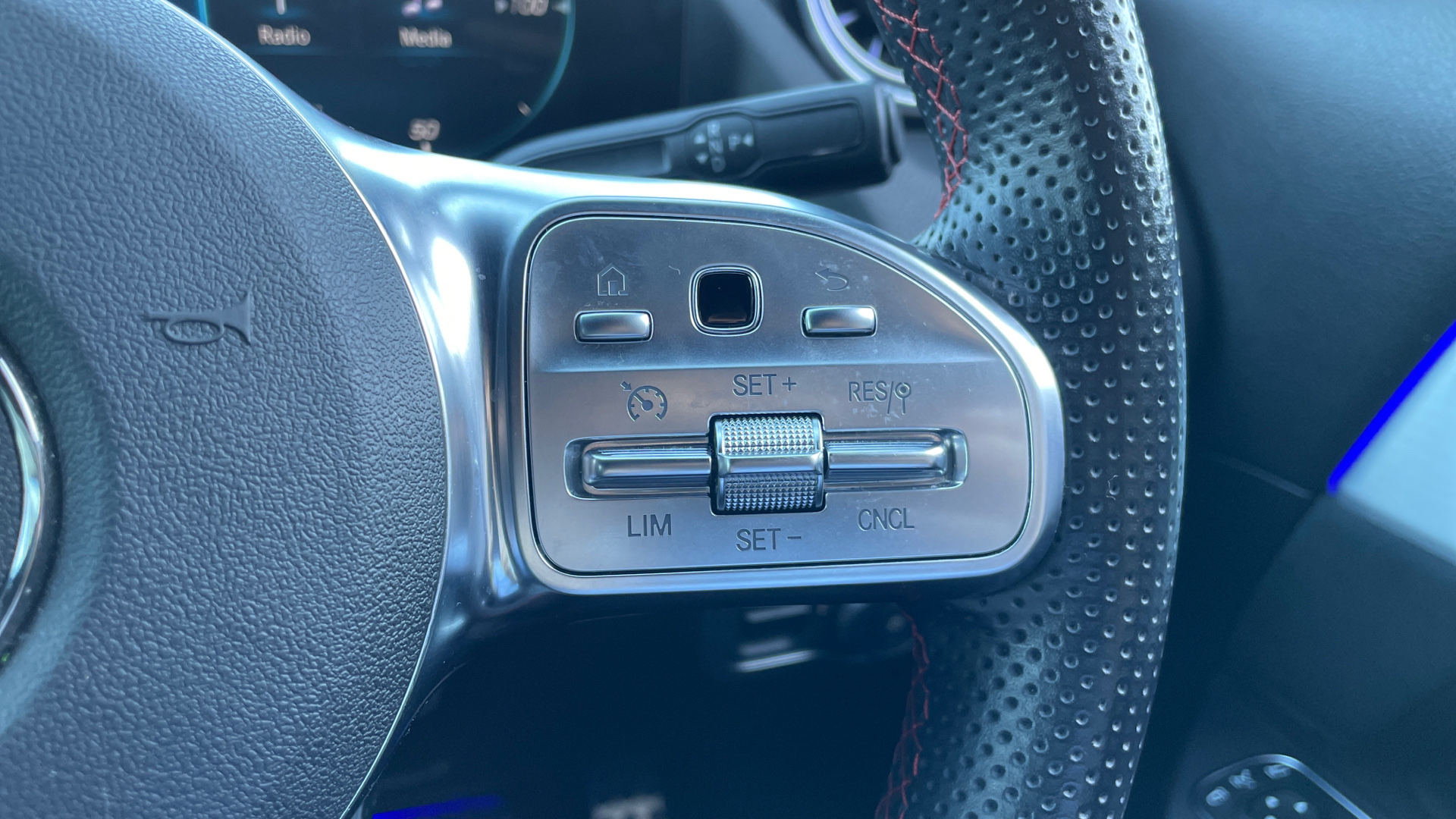 "3 spoke AMG multifunction sports flat bottom steering wheel in nappa leather with galvanised shift paddles",