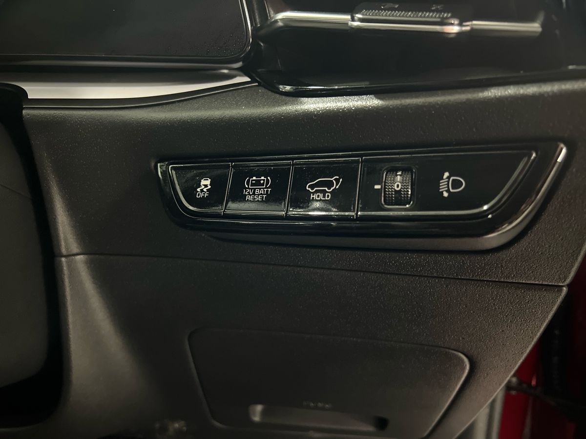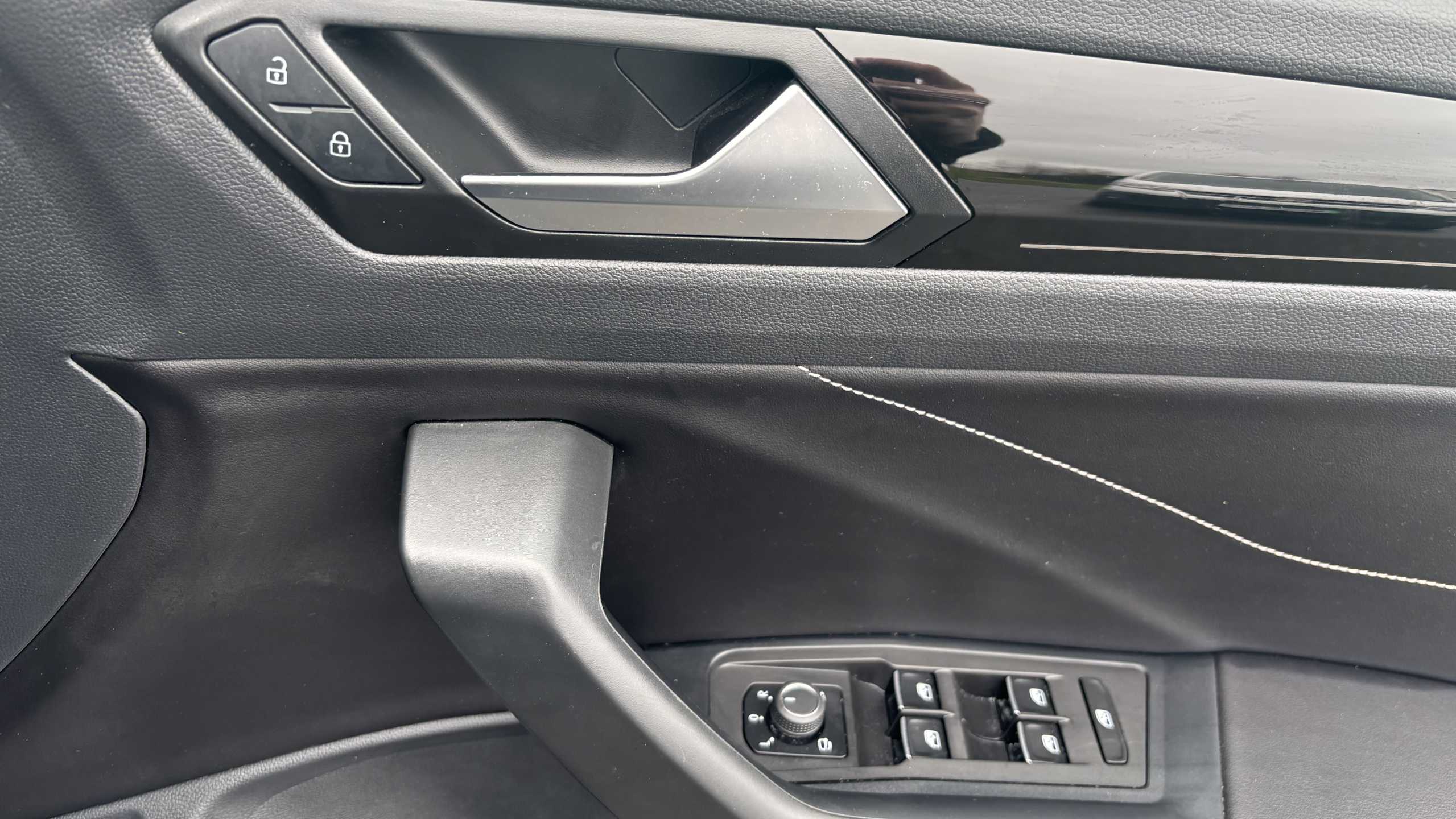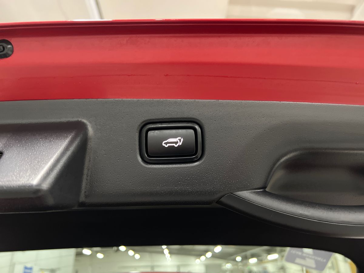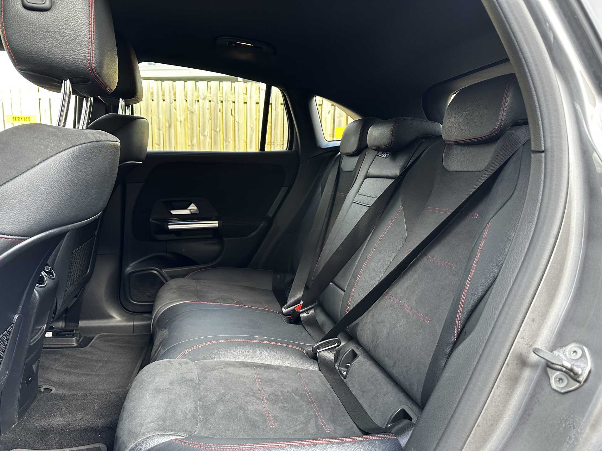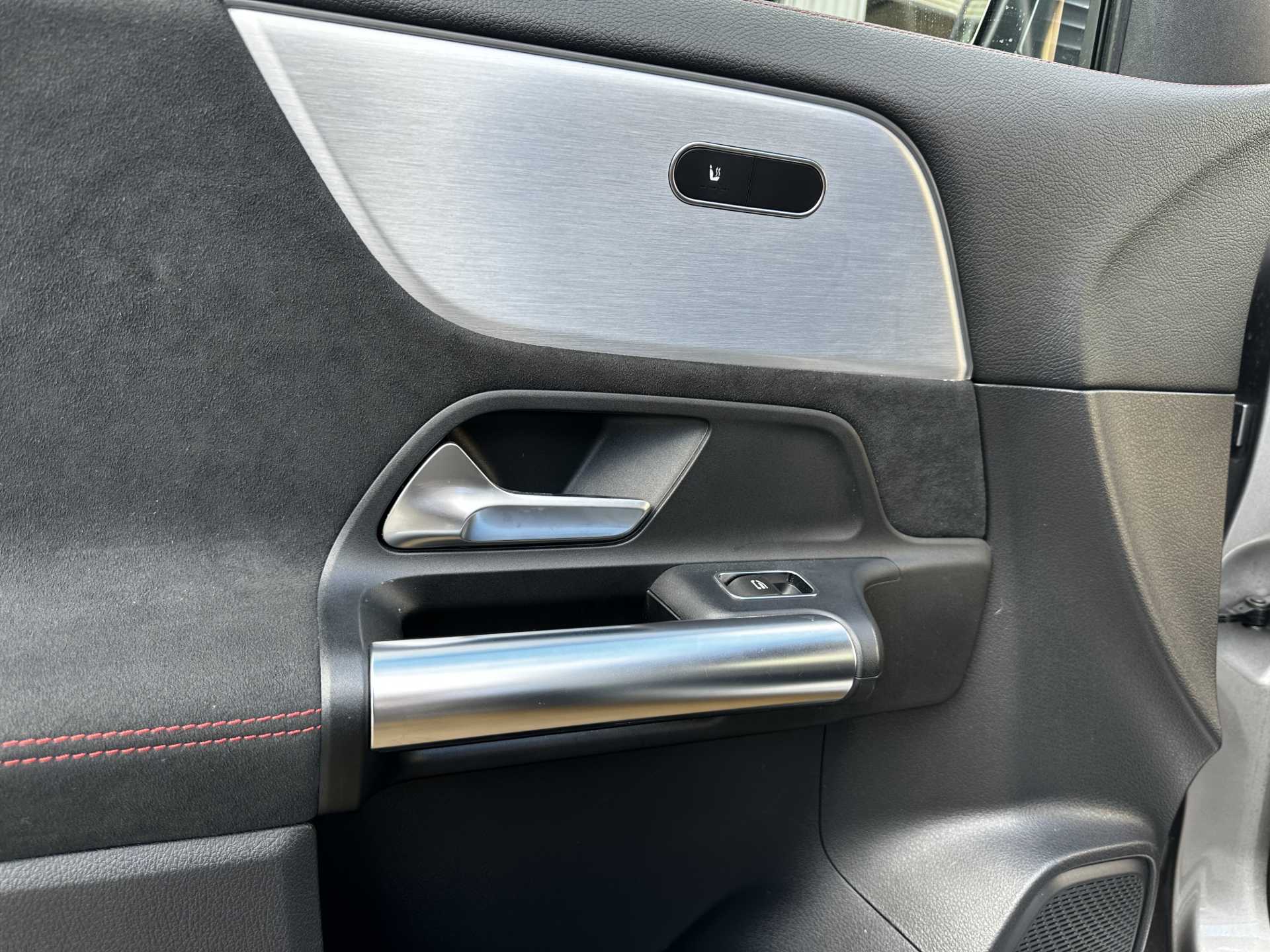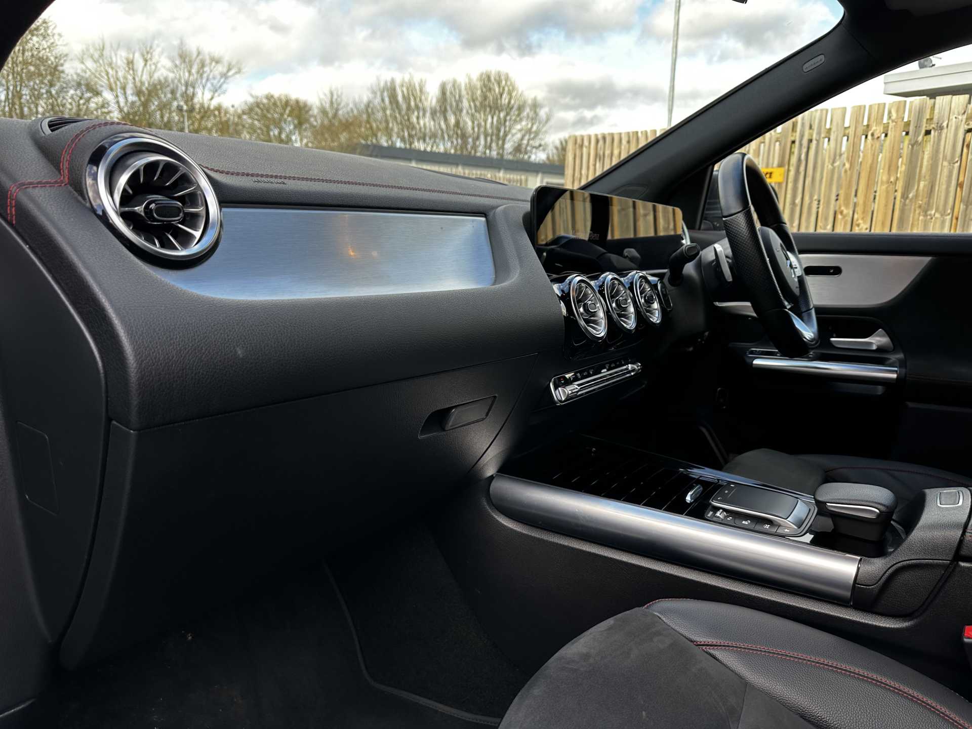 "Red stitching on steering wheel",
