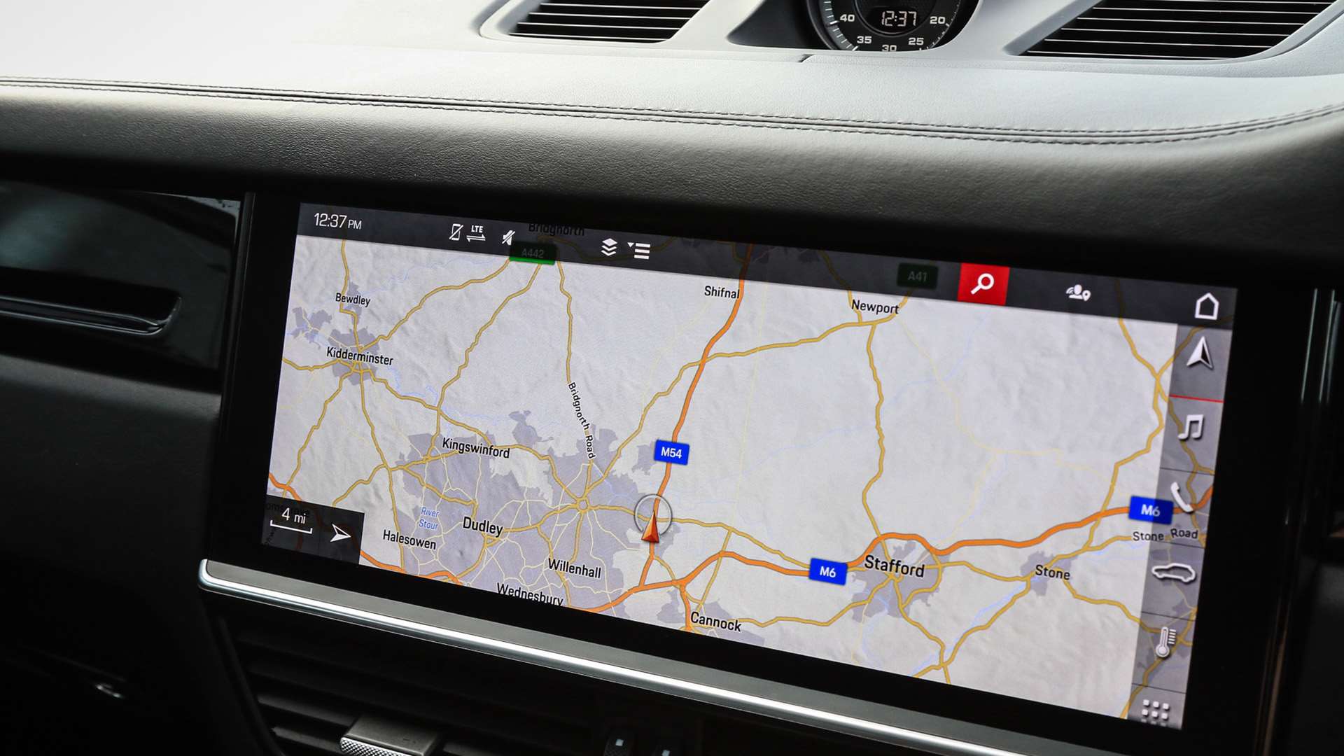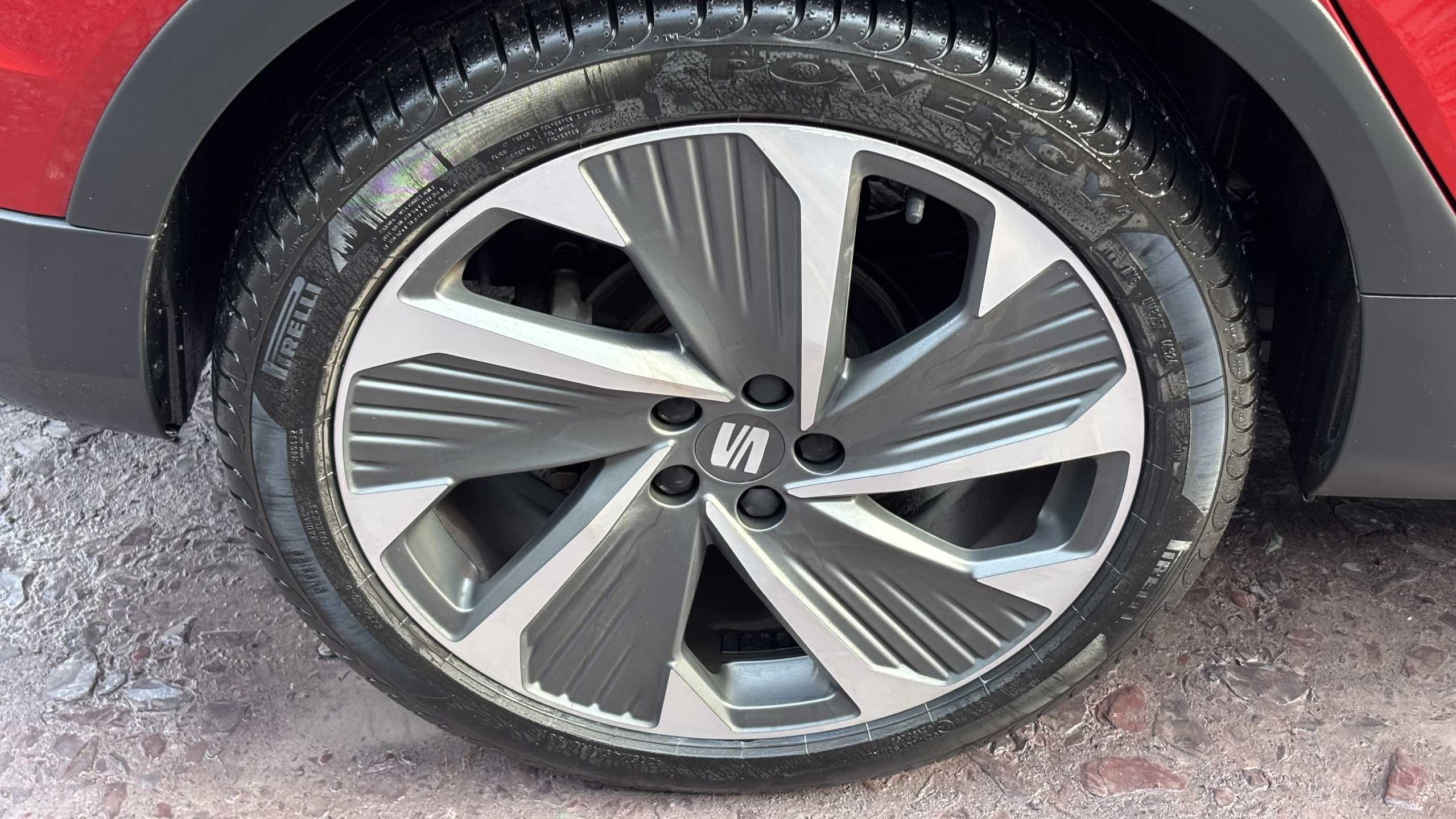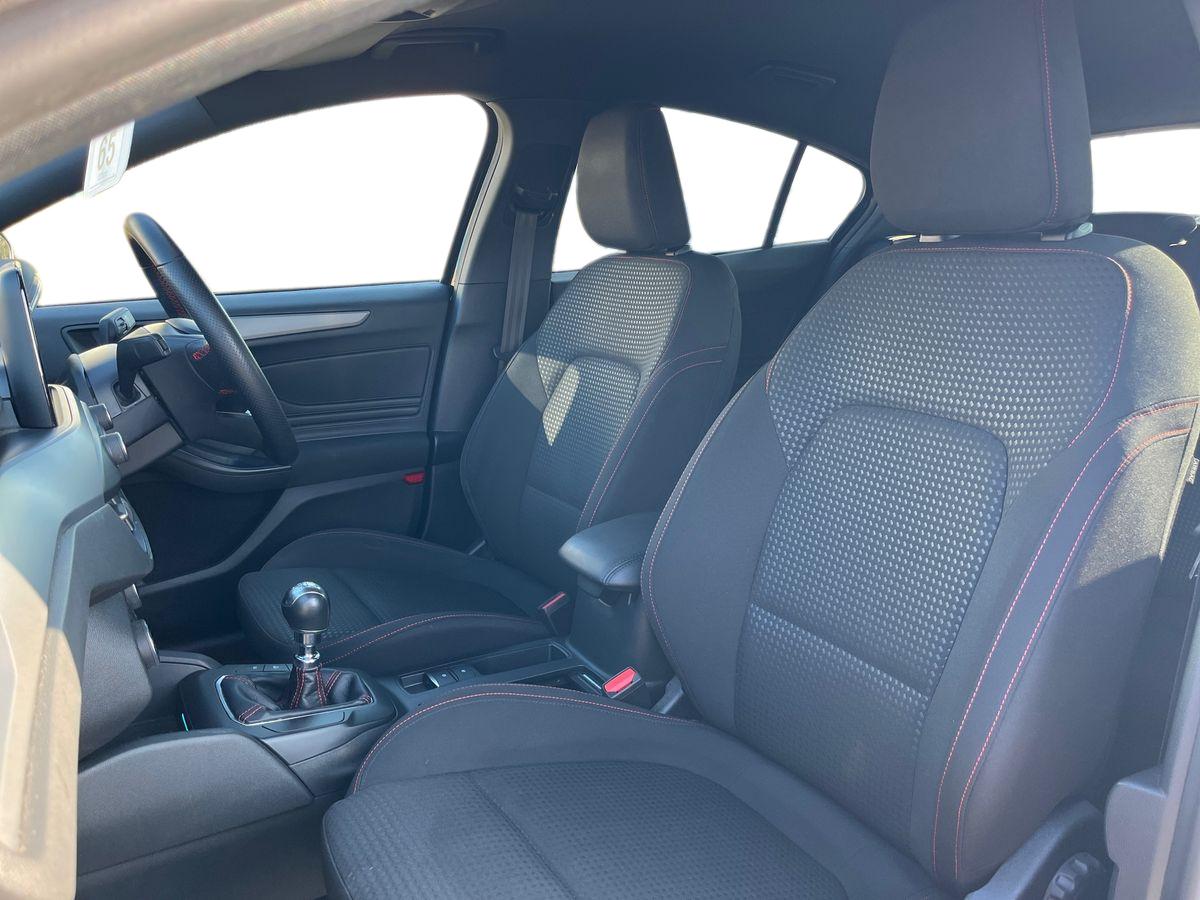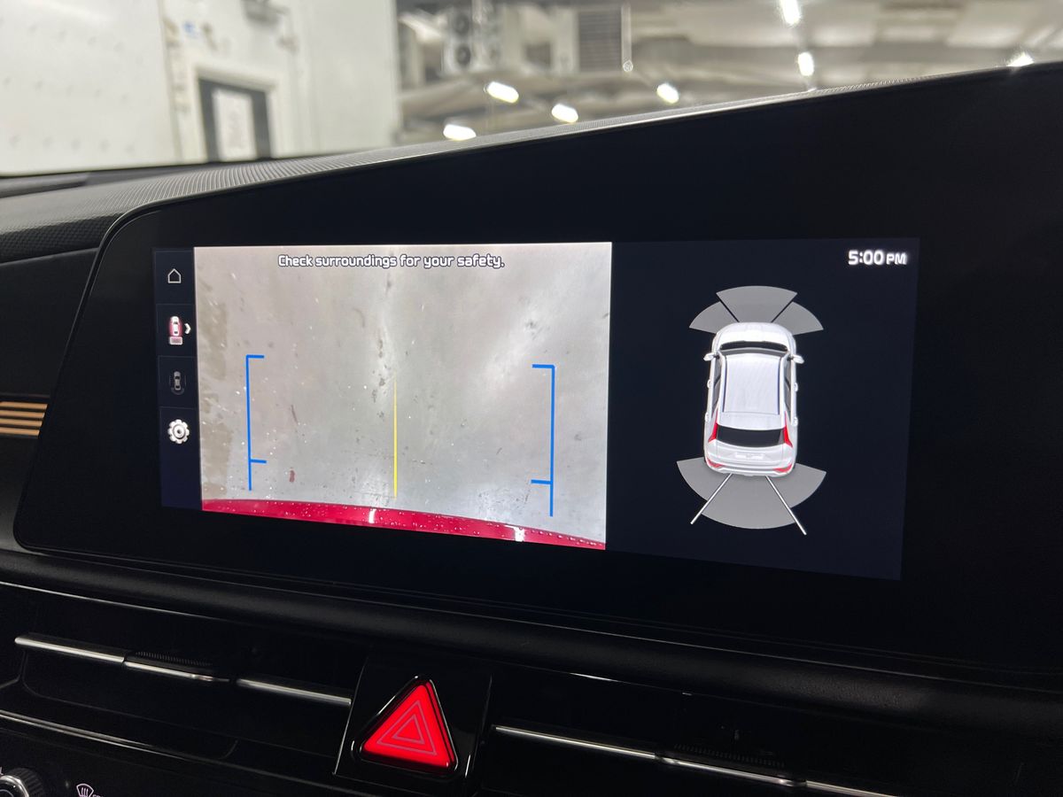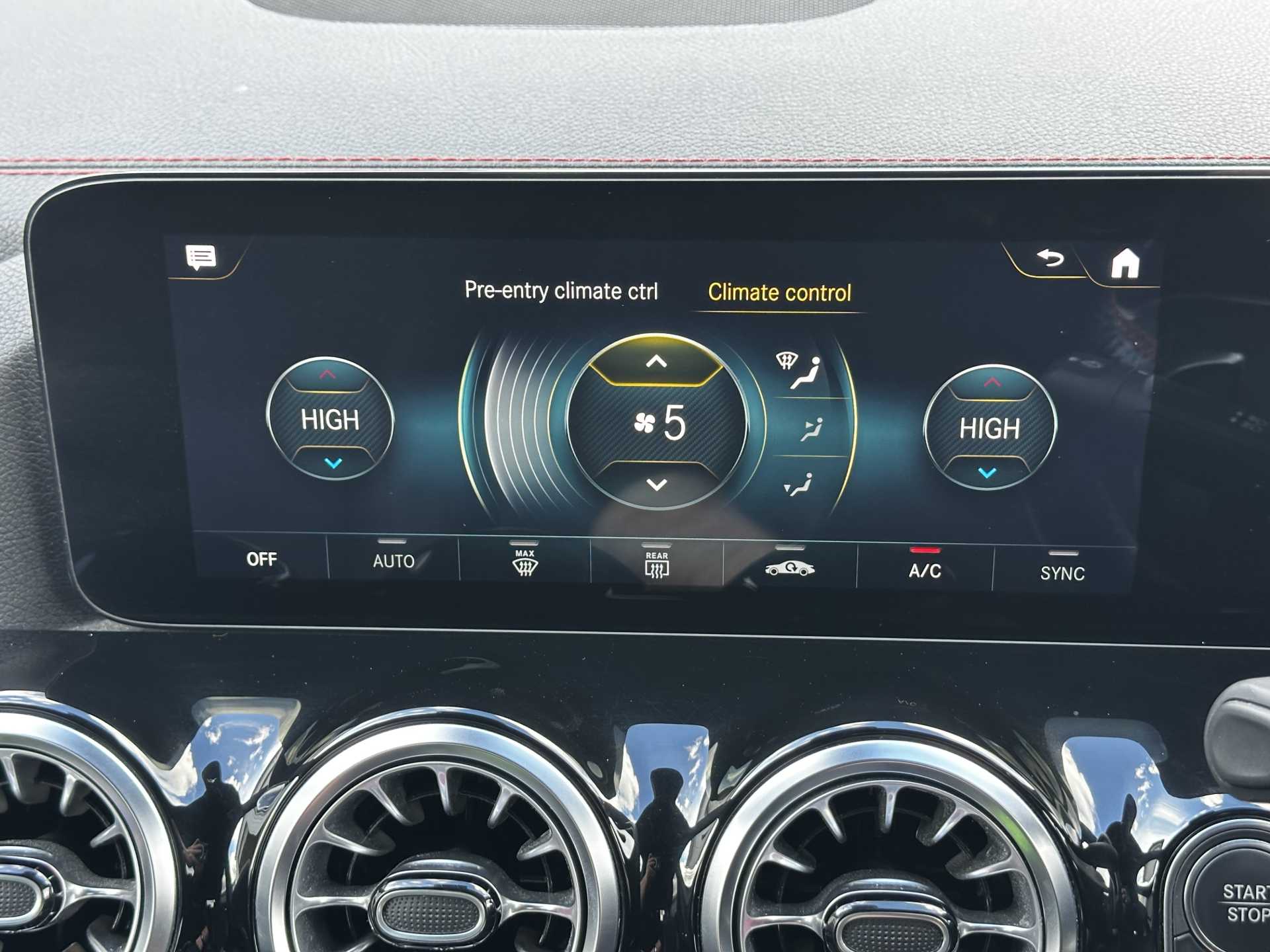 "Red stitching on steering wheel",
