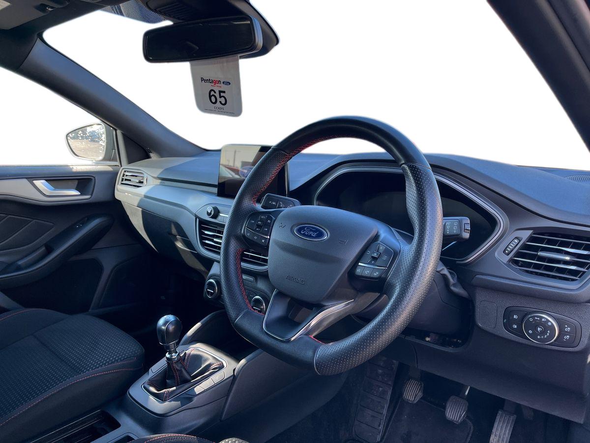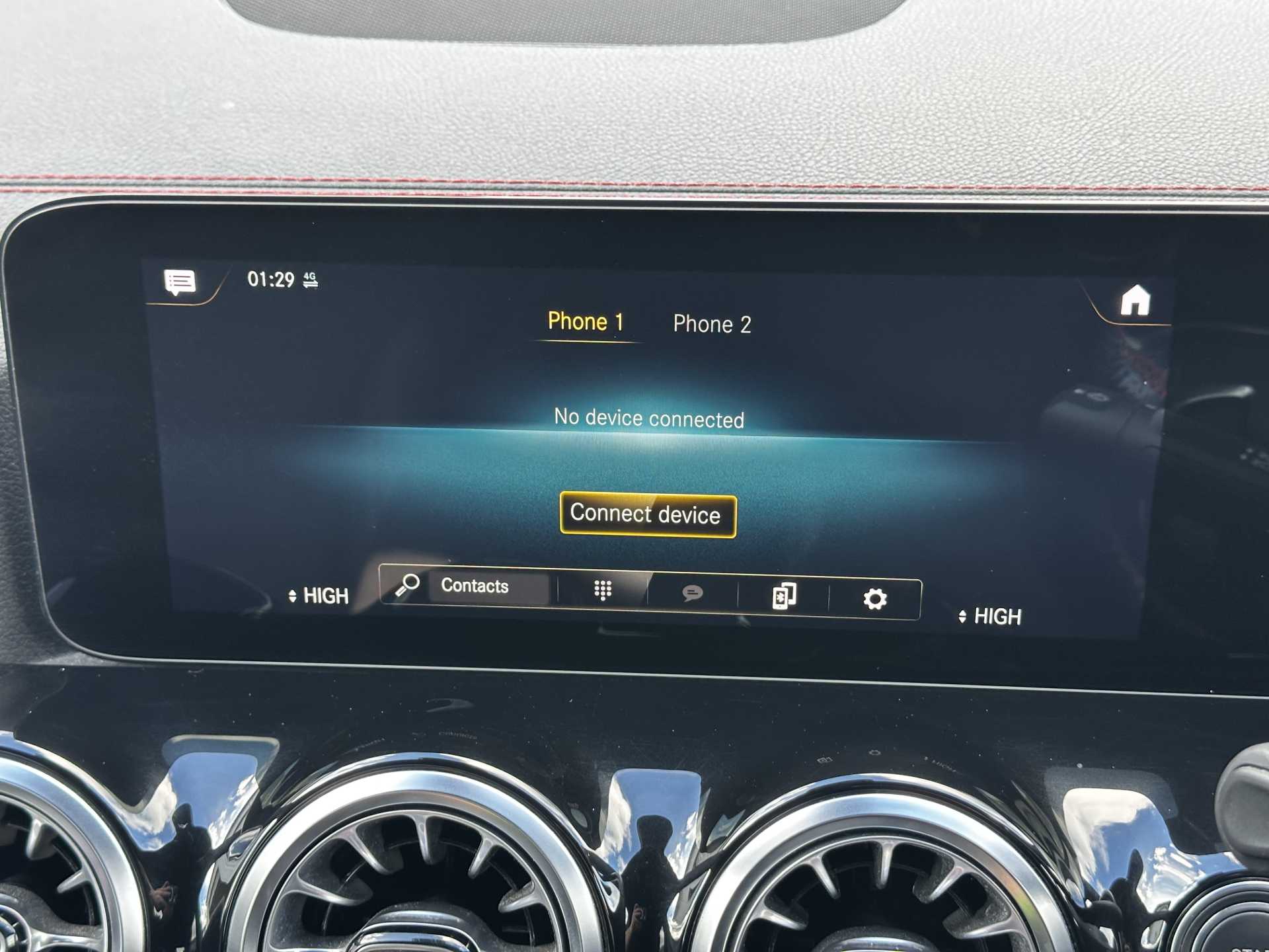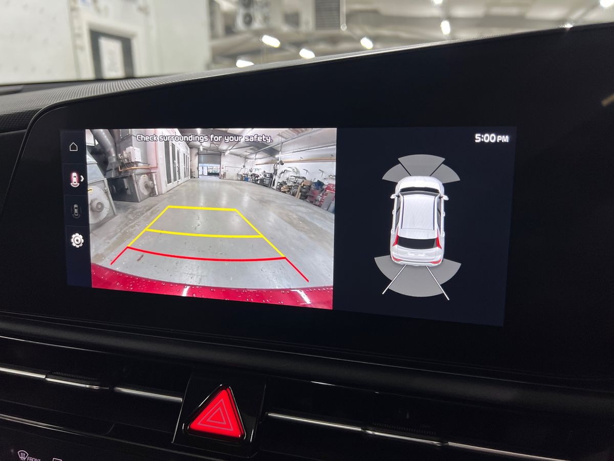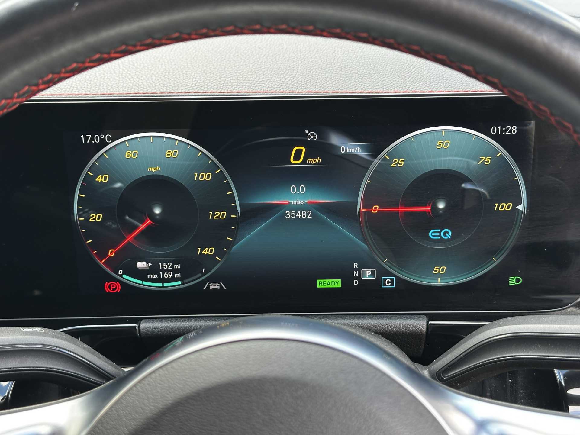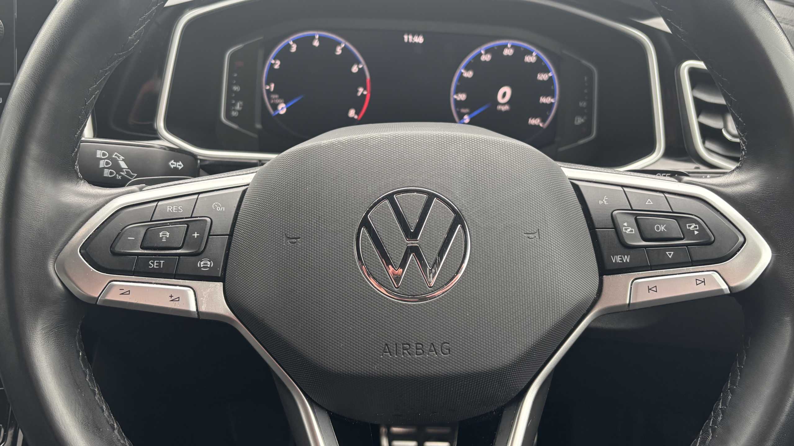 "Red stitching on steering wheel",