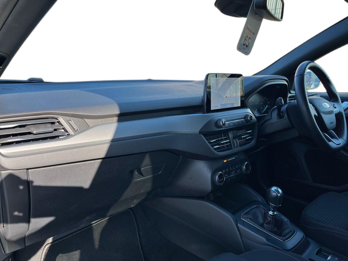 "3 spoke flat bottomed sports leather multi function steering wheel with red contrast stitching",