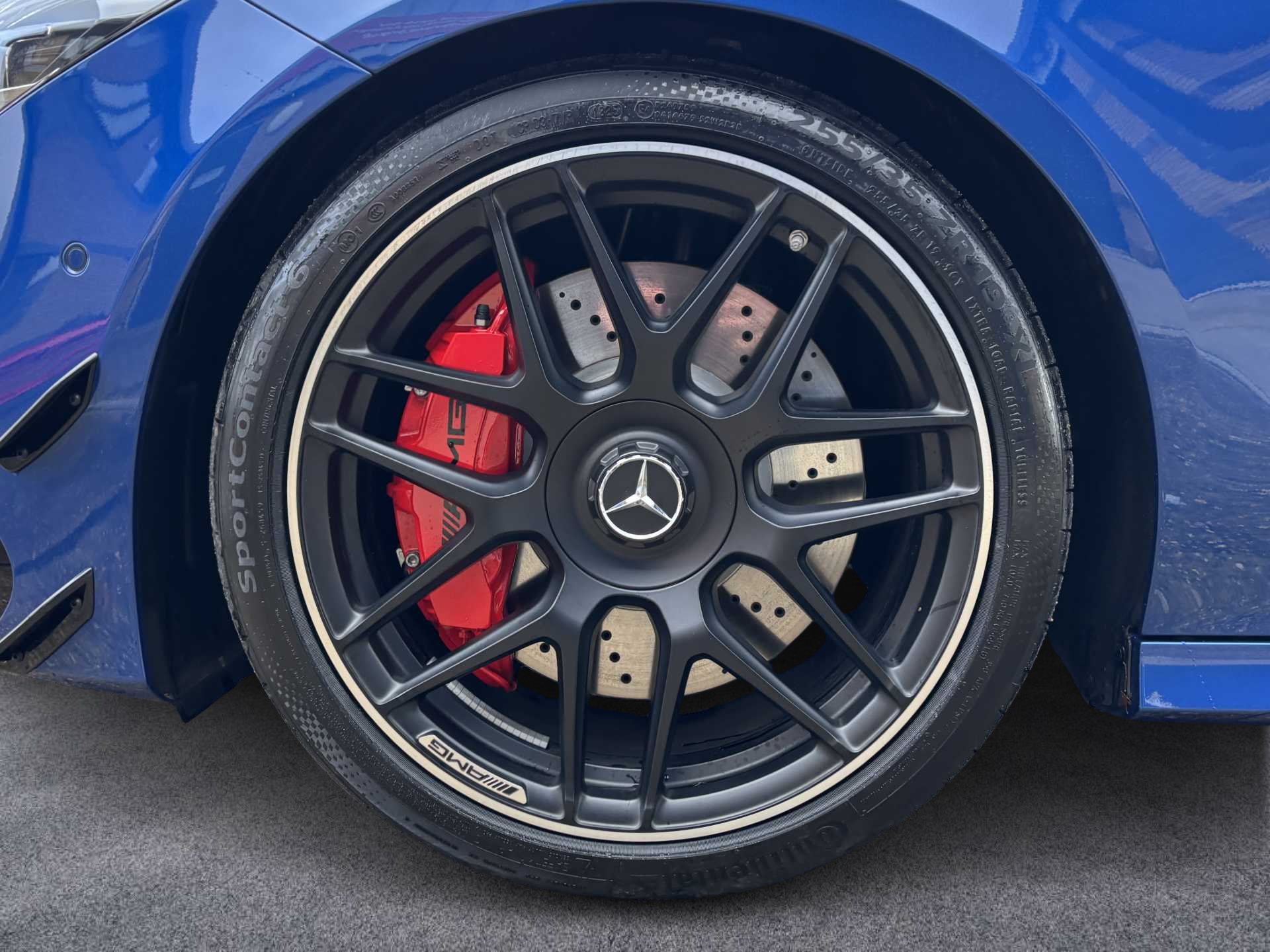 "Brake calipers with Mercedes-Benz lettering + perforated brake discs",