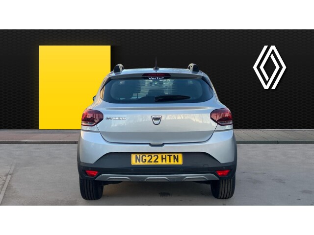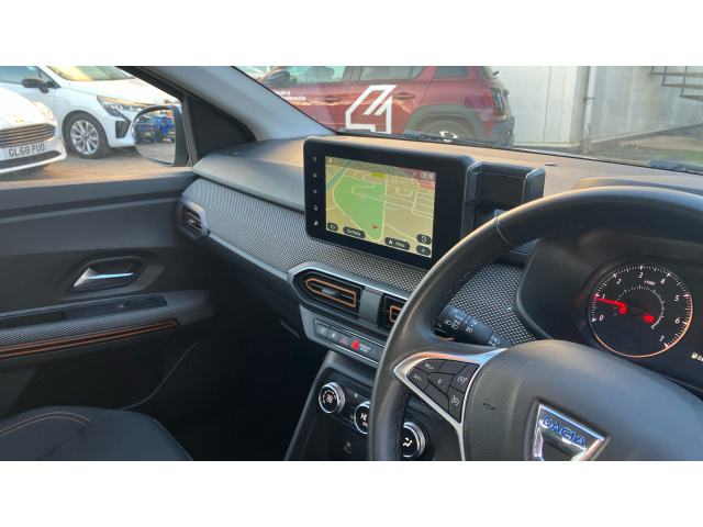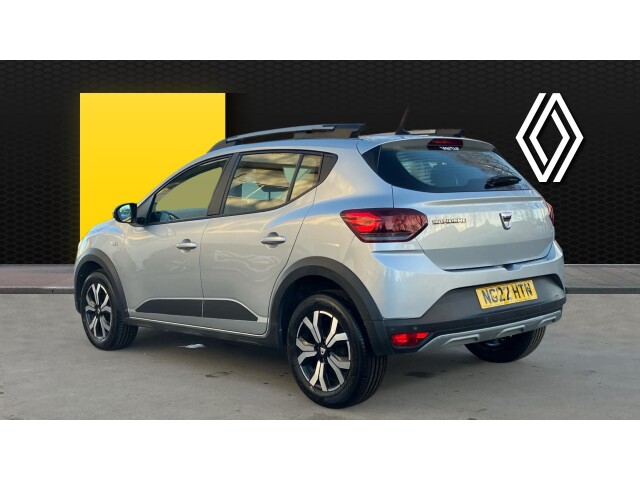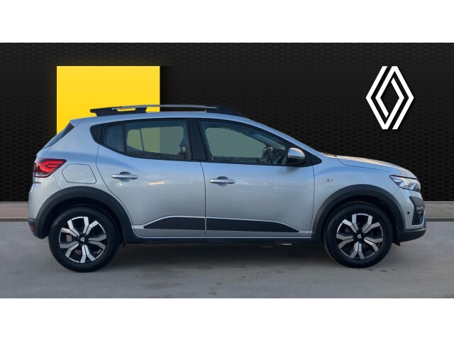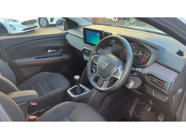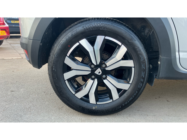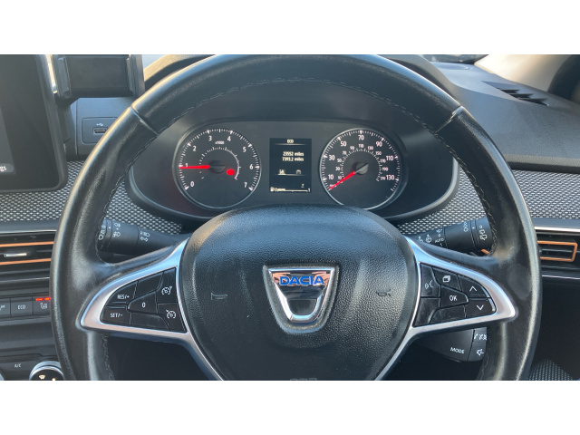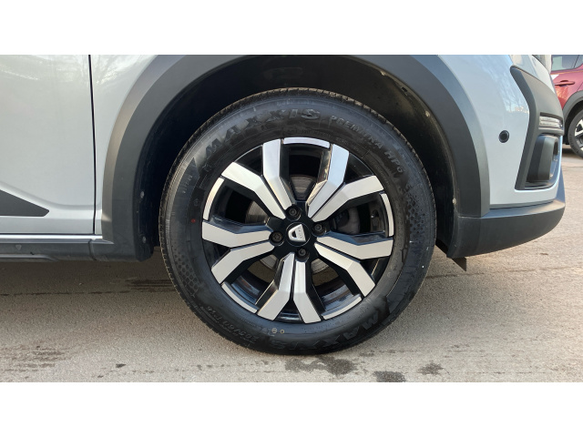 "features": "3.5\" TFT instrument panel with on-board computer, Blind spot warning, Cruise control with speed limiter, eCall emergency call system, Eco mode, Electric power assisted steering, Front parking sensors, Rear parking sensors, Rev counter, Reversing camera, Stop/start system, 8\" MediaNav - DAB Radio, Wifi smartphone replication, Bluetooth, 6 speakres, Apple CarPlay and Android Auto, USB connection for data transfer and charging, USB socket, 3 speed windscreen wipers, Auto lighting, Automatic wipers, Body colour door handles, Body colour door mirrors, Body coloured bumpers, Chrome longitudinal roof bars, Chrome modular roof bars, Chrome radiator grille, Chrome stepway inscription on radiator grille and roof bars, Drivers one touch electric windows, Electrically adjustable and heated door mirrors, Front electric windows, Front fog lights, Heated rear window, High level third brake light, LED automatic daytime running lights, LED Y-shape Dacia signature lighting, Rear electric windows, Rear side wing doors, Rear wash/wipe, Tinted windows, 1/3 to 2/3 split folding rear seats, 12 volt front socket, 12 volt rear socket, 3 height adjustable rear headrests, 3 seat rear bench, Automatic air conditioning, Driver and passenger vanity mirror with cover, Fabric upholstery, Fixed smartphone holder on dashboard, Height adjustable drivers seat with armrest, Height adjustable front headrests, Height/depth adjustable steering wheel, High central armrest with console storage, Isofix points for child seats in both outer rear seats, Satin chrome interior door handles, Satin Chrome/Copper orange air vents, Single front passenger seat, Soft feel steering wheel, Steering wheel controls, 3x3 point rear seatbelts, ABS and Emergency brake assist, Automatic emergency braking system, Child locks on rear doors, Door open visual and audible warning, Driver airbag, Electronic parking brake, ESC (Electronic Stability Control), ESP + Hill Start Assist, Front curtain airbags, Front seatbelt pretensioners, Front side airbags, Height adjustable front seatbelts, Passenger airbag, Seatbelt reminder for driver and front passenger, Tyre pressure monitor, Automatic central locking, Immobiliser, Keyless entry, Remote central locking, Decopart on instrument panel and door with textile, 16\" Diamond-effect alloy wheels, ",