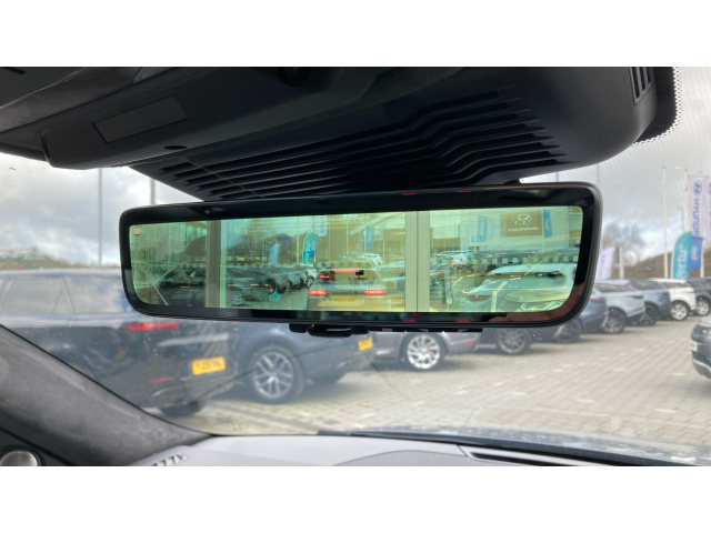 "Interior mirror with black reading lamps and frameless",