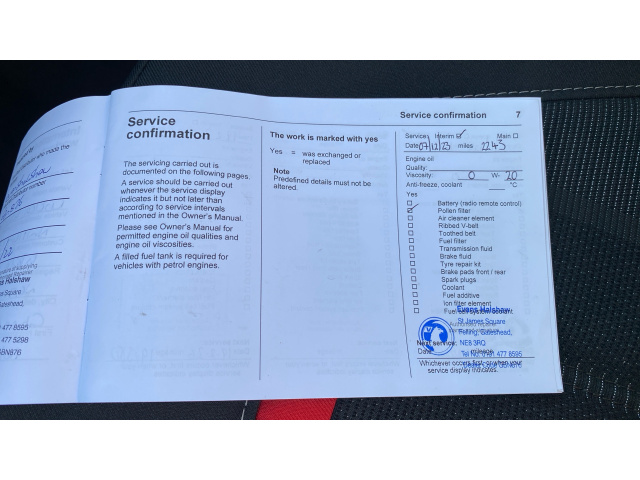"Owners manual and service booklet in English",