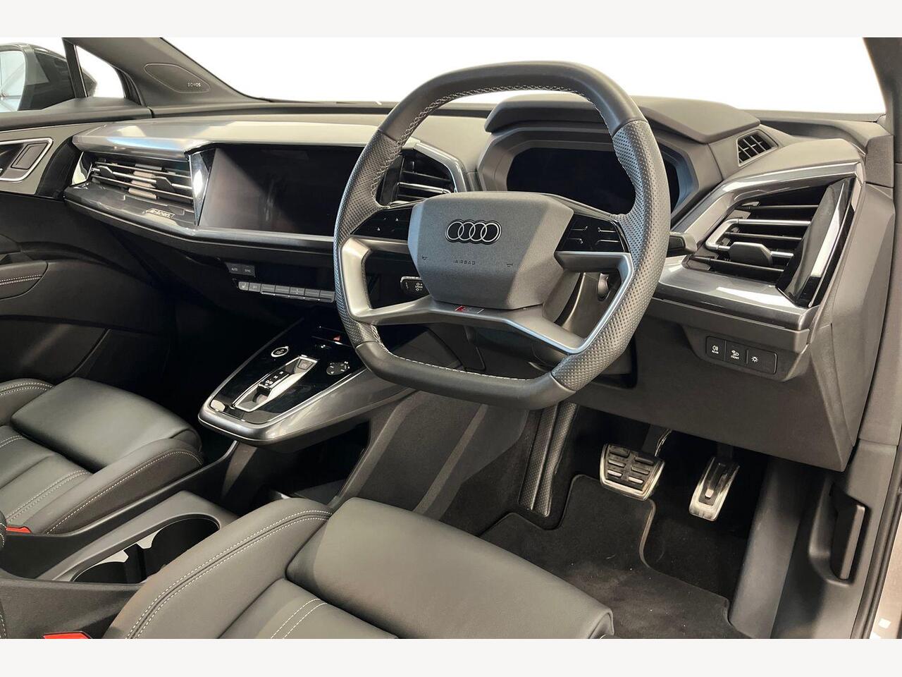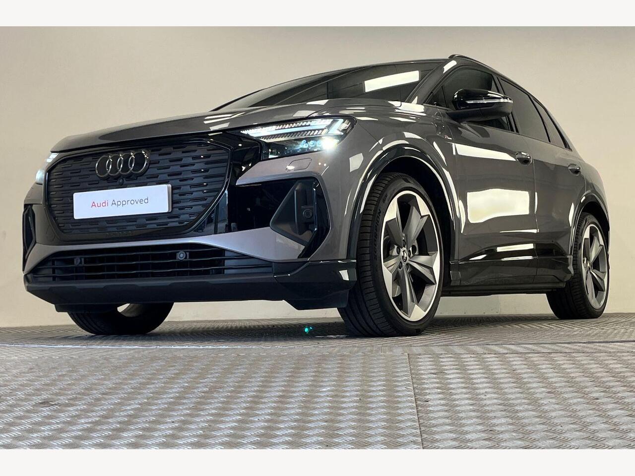 "remarks": "Delivery available across the UK. Up to �475 deposit contribution when financed through Audi Finance.\\t Discover the exceptional blend of style, performance, and advanced technology with this Audi Q4 e-tron 45 Black Edition SUV. Finished in striking Typhoon Grey, this elegant electric vehicle is designed to turn heads, combining Audi�s renowned craftsmanship with cutting-edge innovation. Powered by a robust 82kWh battery delivering 286 PS, the Q4 e-tron offers a smooth and responsive drive, supported by quattro all-wheel drive for confident handling in all conditions. The Black Edition trim adds exclusive touches, such as the 21-inch Audi Sport alloy wheels in Matt Grey with a gloss turned finish, enhancing the vehicle�s dynamic stance. Inside, twin leather upholstery greets you with refined comfort, while the spacious cabin benefits from three-zone automatic air conditioning, ensuring every journey is tailored to your preferences. The Audi Virtual Cockpit, featuring a 10.25-inch digital display, puts vital driving information directly at your fingertips, combining intuitive control with futuristic design. Technology is at the heart of this model, with the Technology Pack offering advanced assistance and connectivity features. Charging is effortless thanks to the 11 kW onboard charger paired with 175kW DC rapid charging capability, allowing you to recharge quickly and get back on the road with minimal downtime. This vehicle has had just one careful owner and has been maintained to the highest standard, making it an excellent choice for anyone looking to embrace electric mobility without compromising on luxury or performance. Experience the future of driving today with the Audi Q4 e-tron 45 Black Edition � intelligent, stylish, and electrifyingly efficient. Contact us now to arrange a viewing or test drive. ",